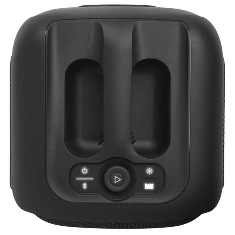 دارای کنترلهای آسان برای استفاده. دکمه پخش/مکث آن را دو بار فشار دهید تا از آهنگها رد شوید و سه بار آن را فشار دهید تا به عقب برگردید. همچنین یک دستگیره در اطراف دکمه پخش/مکث برای کنترل میزان صدا وجود دارد و حلقه نور RGB تنظیم میشود تا به شما اطلاع دهد که میزان صدا را انتخاب کردهاید. وقتی صدا را حداکثر میکنید، حلقه RGB چشمک میزند و صدا برای یک ثانیه سریع قطع میشود. هنگامی که در حالت جفت شدن بلوتوث است، بلندگو زنگ میزند و یک چراغ نشانگر آبی نشان میدهد. یک چراغ نشانگر عمر باتری در زیر دکمه پاور وجود دارد و زمانی که بلندگو خاموش است و در حال شارژ شدن است، خود دکمه پاور به رنگ نارنجی در میآید. مانند سایر اسپیکرهای PartyBox، دارای ورودی میکروفون است که برای دوستداران کارائوکه عالی است. همچنین با برنامه JBL PartyBox سازگار است که به شما امکان دسترسی به ویژگیهای مهمانی اضافی بلندگو را میدهد. همچنین یک پورت USB-A نیز وجود دارد. میتوانید از طریق بلندگو برای شارژ دستگاههایتان مانند تلفنتان استفاده کنید، در حالی که این پورت USB-A را نمیتوان برای پخش مستقیم صدا از دستگاههایتان مانند تلفن یا لپتاپتان استفاده کرد، همچنان میتوانید از آن برای پخش صدا استفاده کنید. صدای خود را از یک USB پخش کنید. جدا از درگاه شارژ، این اسپیکر دارای ورودی AUX است تا دستگاههای شما را به بلندگو متصل کند.