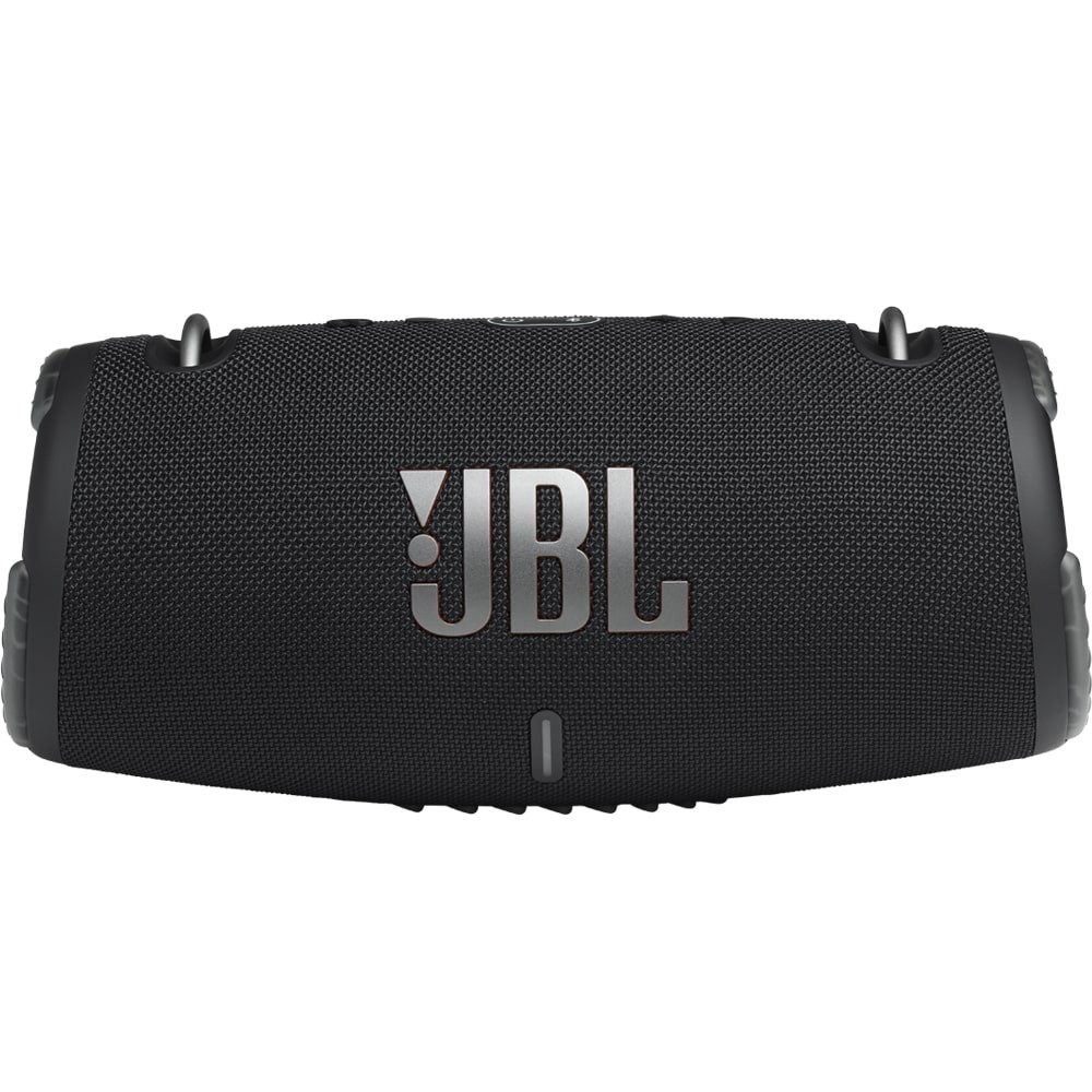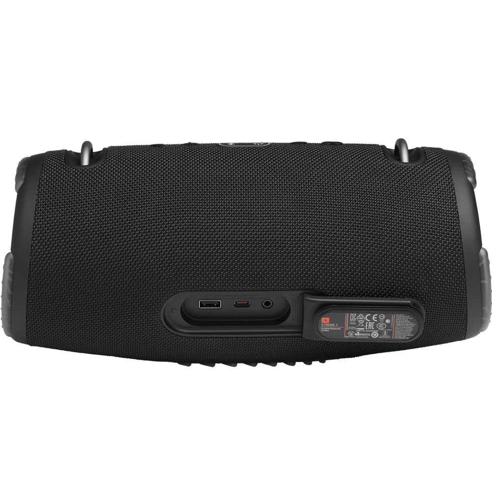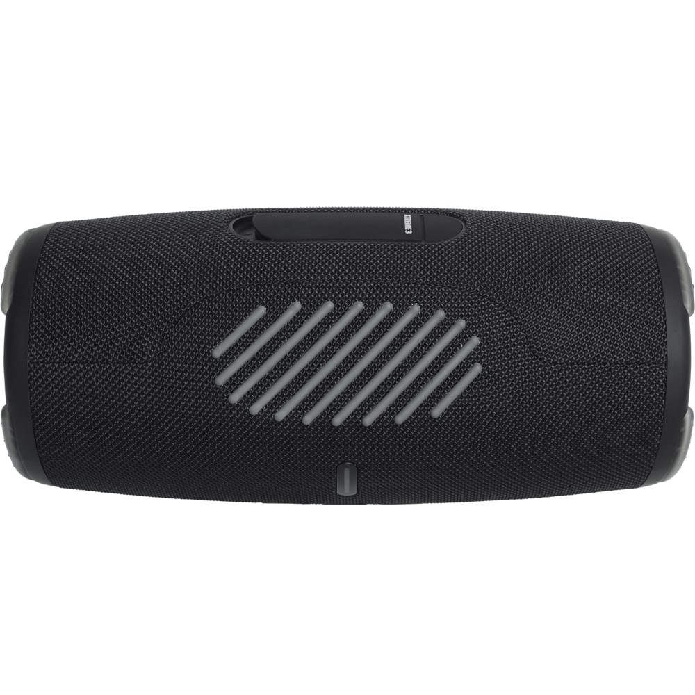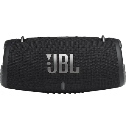 JBL Xtreme 3 یک بلندگوی بلوتوثی قابل حمل قدرتمند است که طراحی مستحکم مشهور JBL را با طرح رنگی مشکی ترکیب میکند و آن را به گزینهای جذاب برای استفاده در محیطهای داخلی و خارجی تبدیل میکند. این دستگاه صوتی با چهار درایور و دو رادیاتور باس JBL که با هم نوید باس غنی و عمیق را میدهند، کیفیت صدای قابل توجهی ارائه میدهد، در حالی که میانهها و بلندیهای واضح پروفایل صدای متعادلی را ارائه میدهند. اسپیکر اکستریم 3، 298 میلیمتر طول، 136 میلیمتر ارتفاع و 134 میلیمتر عرض دارد. وزن تقریبا 2 کیلوگرم در نظر گرفته شده است. اسپیکر با نوعی پارچه پوشیده شده است که کیفیت بسیار بالایی دارد. پایههای لاستیکی در دو طرف و در پایین اسپیکر وجود دارد. درایورهای غیرفعال در کنارهها از پلاستیک ساخته شدهاند تا در صورت قرار دادن افقی یا عمودی اسپیکر از لغزش جلوگیری کند و روی آنها علامت تعجب وجود دارد که برای JBL معمول است. لوگوی JBL به صورت بزرگ در جلو نشان داده شده است که ظاهری سه بعدی ارائه میدهد و کاملاً شیک به نظر میرسد. در زیر لوگوی JBL نوار LED وجود دارد که میزان شارژ فعلی را نشان میدهد. یک بند حمل با درب بازکن داخلی تعبیه شده است که بر قابلیت حمل و راحتی آن تاکید دارد.
