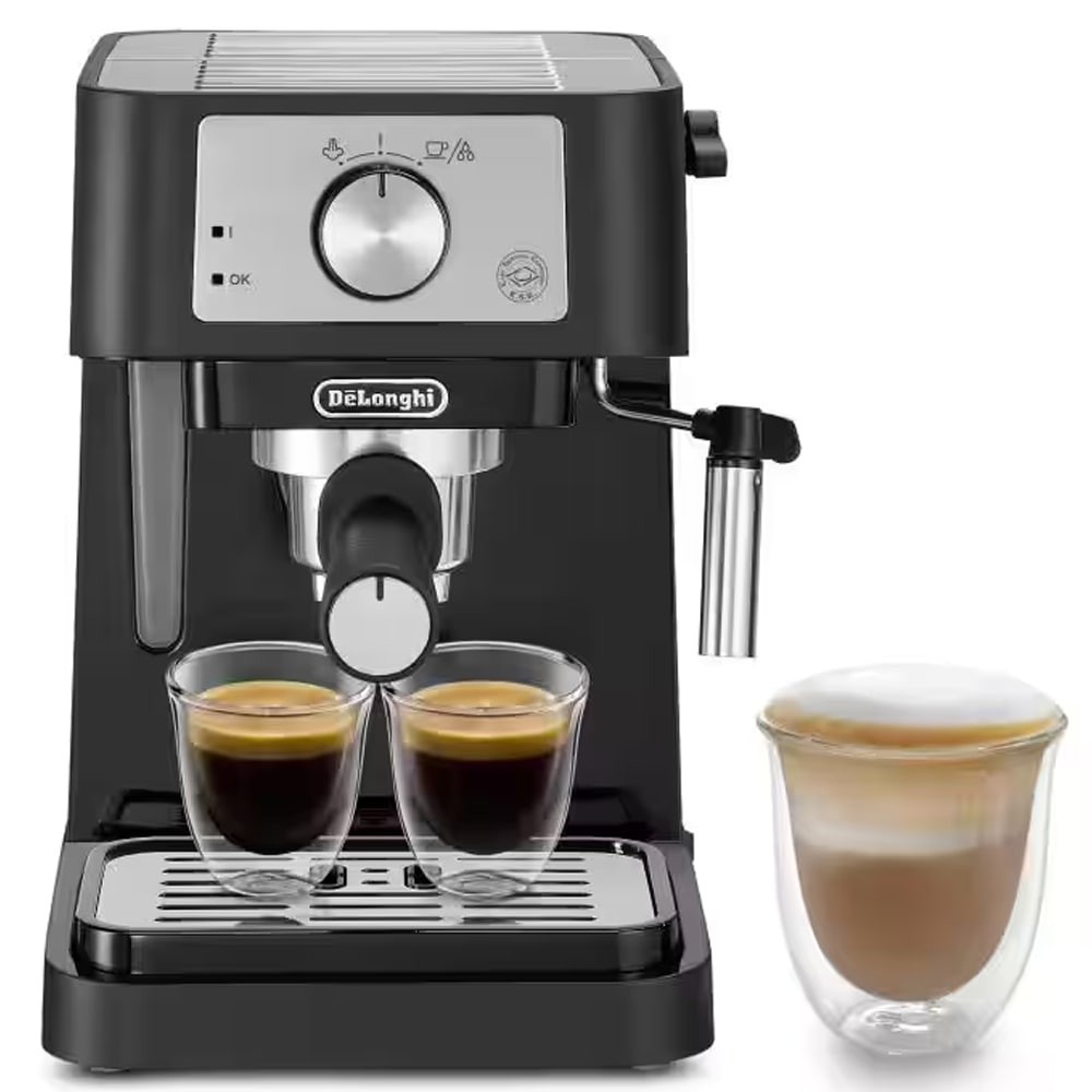 اسپرسوساز دلونگی EC260 یکی دیگر از دستگاه های اسپرسوساز و قهوه ساز برند دلونگی است که با مدل کامل EC260.BK به بازار عرضه شده است. این یک دستگاه اسپرسوساز پمپی 15 بار است که ترکیبی از کیفیت بالا و مقرون به صرفه بودن را ارائه می دهد و برای استفاده های خانگی و نیمه صنعتی (مغازه ها، کافی شاپ های کوچک، ادارات و دفاتر کار) گزینه ی بسیار مناسبی محسوب می شود. این اسپرسوساز نیمه اتوماتیک دارای طراحی براق مشکی و استیل ضد زنگ است که آن را به یک افزودنی جذاب برای هر آشپزخانه ای تبدیل می کند. شما می توانید با این دستگاه اسپرسوساز و قهوه ساز دلونگی تجربه ی تهیه ی قهوه در خانه ی خود را ارتقا دهید و لذت ایجاد نوشیدنی های قهوه مورد علاقه خود را در خانه تجربه کنید. چه یک قهوه ساز حرفه ای و با تجربه باشید و چه از علاقه مندان به نوشیدنی هایی بر پایه ی قهوه هستید این دستگاه ترکیبی عالی از سبک و عملکرد را ارائه می دهد. در واقع با داشتن این محصول در هنر قهوه سازی با همراهی قابل اعتماد و زیبایی شناختی غرق شوید و فضای کافی شاپ مورد علاقه ی خود را به آشپزخانه ی خودتان بیاورید. این دستگاه اسپرسو و کاپوچینو با کنترلهای کاربرپسند، سیستم فشار حرفهای و ویژگیهای قابل تنظیم، به شما این امکان را میدهد تا باریستای آشپزخانه خود شوید و هر فنجان قهوه و یا اسپرسویی را که دقیقا مطابق با میل شما ساخته شده است مزه کنید.