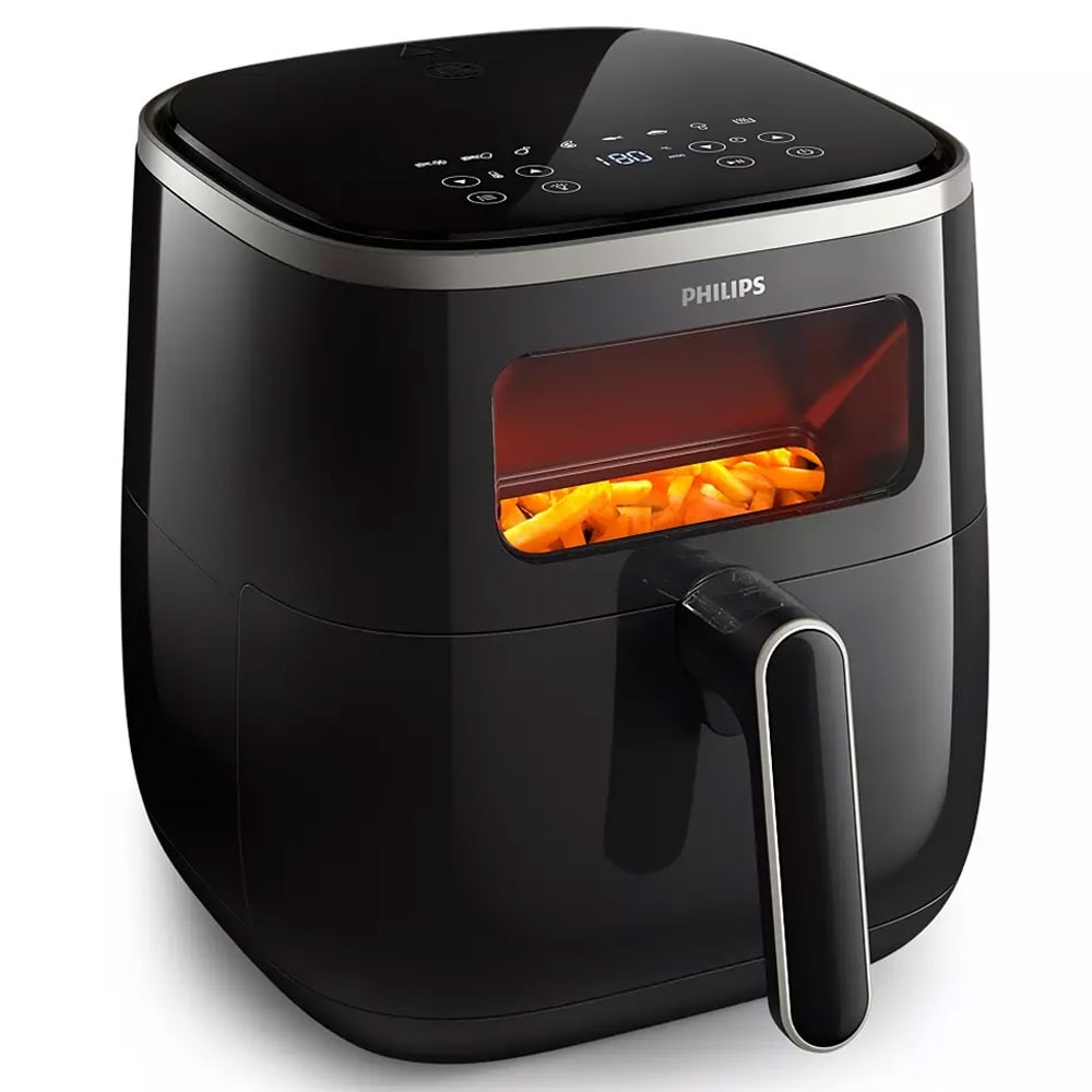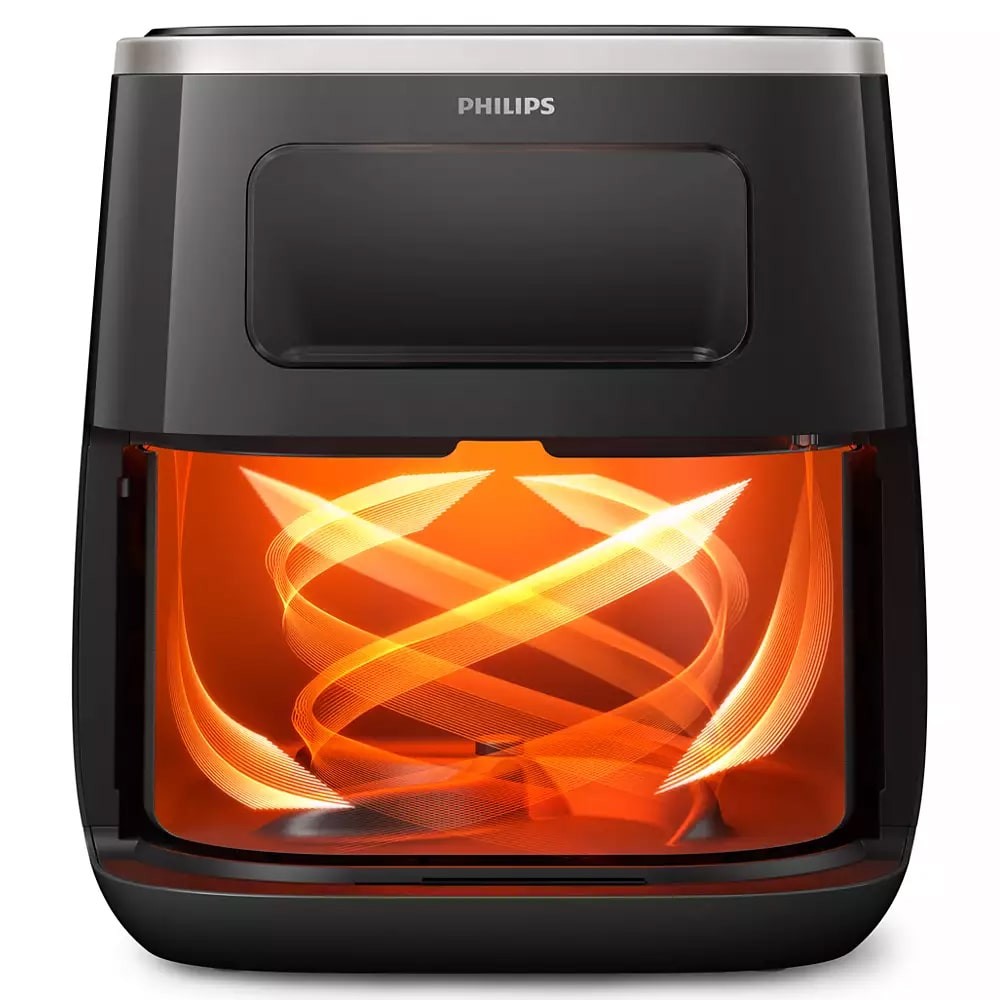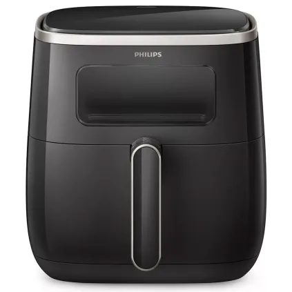 یکی از ویژگی های برجسته ای که این محصول را از سایر سرخ کن های دیگر کمپانی فیلیپس جدا کرده است طراحی window design یا همان پنجره ی شفاف است. این شکاف شیشه ای درست در بالای دسته ی کشویی سرخ کن تعبیه شده است که جلوه ی زیبایی به دستگاه داده است تا بتوانید به راحتی غذای در حال پخت و سرخ شدن را مشاهده کنید. این قضیه نه تنها برای کاربران رضایت بخش است بلکه نیاز به باز کردن مکرر کشو و دیدن میزان پخت غذا را نیز کم می کند و شما می توانید پیشرفت پخت و پز را هر زمان بررسی کنید. با فناوری منحصر به فرد Rapid Air در سرخ کن بدون روغن فیلیپس HD9257 از غذاهای سالمی لذت ببرید که از بیرون ترد و از داخل لطیف هستند و تا 90 درصد چربی کمتری دارند. در واقع این قابلیت تضمین می کند که با سرعت گردش هوا و حرارت 7 برابر در اطراف غذا زمان پخت و پز کاهش پیدا می کند و غذاها را بیشتر برشته می کند در نتیجه شما می توانید به کمک این قابلیت از غذاهای لذیذ و سالم تر با بافت ترد و دلخواه لذت ببرید و در عین حال طعم اصلی مواد را میل کنید.