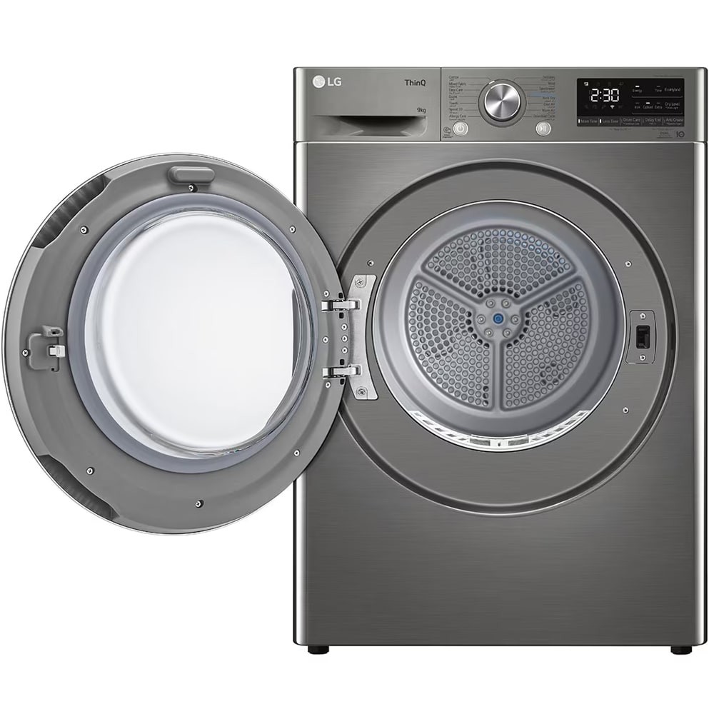 پیمایش چرخههای خشک کردن با کنترل دیجیتال LED بصری آسان است. به راحتی از بین چرخههای خشک کردن مختلف، از جمله معمولی، سنگین و ظریف، انتخاب کنید تا فرآیند خشک کردن را مطابق با نیازهای خاص خشک کن خود تنظیم کنید. برنامه Downloaded که جزئی از برنامههای خشک کن روی پنل است و به وسیله اپلیکیشن LG ThinQ روی گوشی هوشمند خود این امکان فراهم است که برنامههای خشک کن بیشتری دانلود نمایید. البته لازم به ذکر است که دکمه برنامه Downloaded علاوه بر دانلود برنامه خشک کن جدید، به صورت پیش فرض دارای برنامه Deodorization میباشد. ال جی این خشک کن را به قابلیتهای مختلفی مجهز نموده است تا بتوانید از امکانات متنوعتری که منجر به سهولت در انجام فرآیند خشک کردن لباسها میشود، بهرهمند شوید. برنامه Rack Dry برای خشک کردن ژاکت و پارچههای ظریف که باید به صورت صاف، بدون غلت خوردن خشک شود مورد استفاده قرار میگیرد. از برنامه Mixed Fabric هم میتوانید برای خشک کردن انواع لباسها به جز لباسهای حساس مانند ابریشمی و پشمی استفاده نمایید. برنامه Warm Air این امکان را فراهم میکند که فرآیند خشک کردن اقلام کوچک و لباسهای مرطوب، روپوش حمام و پارچه ظرفشویی و اقلام روزمره با استفاده از هوای گرم انجام شود. جهت خشک کردن انواع ملحفه، پتو، کاور مبل، بالش برنامه Duvet گزینه مناسبی میباشد. قابلیت More Time / Less Time برای افزایش یا کاهش دادن زمان خشک کردن البسه بر روی خشک کن 9 کیلویی ال جی پیاده سازی شده است.