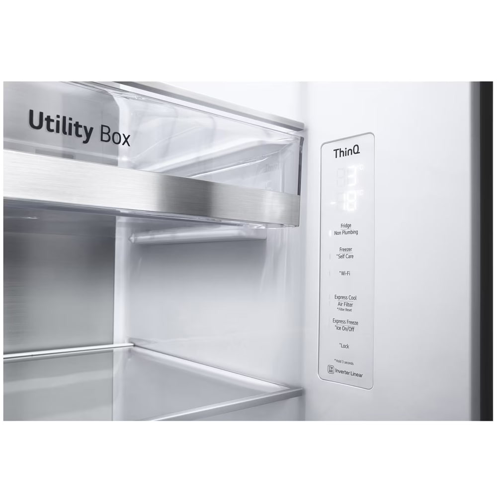 - بوگیر یا Deodorizer جهت جلوگیری از پخش بوی مواد غذایی در یخچال تکنولوژی +Door Cooling برای سرمایش سریع تر مواد غذایی موجود در درب یخچال قابلیت Door Alarm برای اطلاع دادن در صورت باز ماندن درب یخچال کشوی Fresh Balancer مخصوص نگهداری میوه و سبزیجات استفاده از حداکثر فضا برای ذخیره مواد غذایی بیشتر (Large Capacity) دستگیره مخفی (Pocket Handle) پشتیبانی از برنامه LG ThinQ برای کنترل و مدیریت یخچال فریزر از طریق موبایل (مخصوص موبایل های اندرویدی و iOS) سیستم یخ ساز اتوماتیک با طراحی باریک برای اشغال فضای کمتر (SpacePlus Ice System) قابلیت درب در درب (Door-in-Door) برای دسترسی به برخی مواد غذایی بدون باز کردن درب اصلی یخچال و جلوگیری از هدر رفت سرما کشوی Utility Box مناسب نگهداری از لبنیات و مواد غذایی کشوی Fresh Zone مخصوص نگهداری میوه و سبزیجات تکنولوژی UVnano برای از بین بردن باکتریهای دهانه آبریز تا 99.99% با استفاده از نور فرابنفش قابلیت Child Lock (Lock) برای قفل کردن پنل کنترلی یخچال سیستم یخ ساز اتوماتیک با قابلیت تولید یخ کروی (Craft Ice Maker) طبقات یخچال و فریزر از جنس شیشه حرارت دیده سیستم تهویه هوای Multi Air Flow برای توزیع هوای سرد یکنواخت در کل یخچال و فریزر از طریق دریچه های هوای متعدد تضمین عملکرد و کارایی موتور Inverter Linear Compressor تا 10 سال توسط ال جی محل قرار گیری پنل کنترلی در داخل یخچال سیستم بدون برفک (No Frost) دارای صفحه فلزی مخصوص (Metal Fresh) در قسمت داخلی یخچال برای ثابت نگهداشتن و حفظ سرما تکنولوژی Bio Shield (Gasket) و لاستیک ضد باکتری دور درب جهت افزایش عمر یخچال قابلیت اینستاویو (InstaView) برای مشاهده داخل یخچال بدون باز کردن درب یخچال قابلیت Fresh Balancer برای تنظیم رطوبت در کشوی مخصوص سبزی و میوه جهت افزایش ماندگاری آنها تکنولوژی LINEAR Cooling (LinearCooling) جهت حفظ و کنترل دقیق دما در داخل یخچال و فریزر با نوسان 0.5 درجه سانتیگراد سیستم یخ ریز با قابلیت تولید یخ حبه ای (مکعبی) و یخ خرد قابلیت Express Freeze برای انجماد سریع در فریزر و یخ ساز کشوی Freezing Zone برای نگهداری از مواد غذایی گوشتی و ماندگاری طولانی مدت آنها بدون یخ زدن قابلیت Self Care برای فعال کردن دستی نور UV و پاکسازی دهانه آبریز طراحی صاف و شیک (UltraSleek Door) جهت هماهنگی بیشتر با کابینت و دکوراسیون آشپزخانه تکنولوژی +Hygiene FRESH با فیلتر 5 لایه برای از بین بردن باکتری ها تا 99.999% و بوی بد مواد غذایی و تصفیه هوای داخلی یخچال مناسب برای مناطق جغرافیایی با آب و هوای گرمسیری (Tropical) یا T سیستم عیب یاب هوشمند (Smart Diagnosis) برای عیب یابی راحت تر
