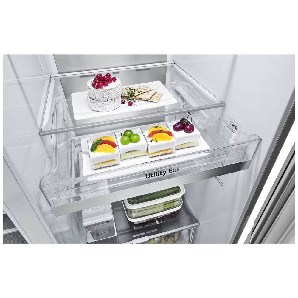 یکی از ویژگیهای برجسته یخچال ساید بای ساید ال جی X257 فناوری InstaView Door-in-Door است. تنها با دو ضربه به صفحه شیشهای شیک، میتوانید بدون باز کردن درب داخل یخچال را ببینید و به حفظ هوای سرد کمک کرده و غذای خود را برای مدت طولانیتری تازه نگه دارید. این نه تنها ظرافت مدرن را اضافه میکند، بلکه با محدود کردن بازشوهای غیرضروری درب، به کاهش مصرف انرژی نیز کمک خواهد کرد. محفظه Door-in-Door راحتی بیشتری را با امکان دسترسی آسان به اقلام پرکاربرد مانند نوشیدنیها و تنقلات ارائه میدهد. به جای گشتن در کل یخچال، میتوانید وسایل ضروری خود را سریع و بدون دردسر بردارید. این ویژگی همچنین تلفات هوای سرد را محدود میکند و آن را به یک راهحل صرفهجویی در زمان و انرژی کارآمد برای خانههای پرمشغله تبدیل میکند. این محصول از دو بخش یخچال و فریزر تشکیل شده است که یخچال در سمت راست و فریزر در سمت چپ قرار دارد. ظرفیت اختصاص داده شده به بخش یخچال معادل 416 لیتر یا 15 فوت میباشد. در بخش یخچال میتوانید شاهد حضور 4 طبقه شفاف شیشهای حرارت دیده باشید که وزن اقلام غذایی را به خوبی تحمل میکنند. بر روی درب یخچال هم تعداد 4 قفسه کار گذاشته شده است که جهت نگهداری بطریهای بلند میتوانید از آنها استفاده کنید. در قسمت پایین طبقات کشوی Fresh Balancer حضور دارد که میتوانید میزان رطوبت داخل آن را تنظیم کنید. این کشو جهت نگهداری میوه و سبزیجات کاملا مناسب و ایدهآل میباشد. همچنین این یخچال فریزر 674 لیتر ال جی از وجود کشوی Fresh Zone هم بهره میبرد که به حفظ و ماندگاری بیشتر میوه و سبزیجات کمک میکند. در قسمت میانی یخچال هم کشوی Utility Box وجود دارد که برای نگهداری اقلام غذایی کوچک کاربردی میباشد. بخش فریزر هم دارای ظرفیت 219 لیتر یا 8 فوت است که فضای کافی برای نگهداری اقلام غذایی را در اختیار شما قرار میدهد. بر روی درب فریزر هم تعداد 2 درب شیشهای وجود دارد. ضمن اینکه در این بخش میتوانید محفظه یخساز خودکار که از نوع SpacePlus Ice System را مشاهده نمایید. این محفظه فضای کمی را برای قرارگیری اشغال خواهد کرد. شما میتوانید از طریق بخش یخریز با توجه نیاز خود یخهای حبهای و خرد را دریافت کنید. دو کشوی Freezing Zone هم در بخش فریزر حضور دارد که برای قرار دادن گوشتها میتوانید از آن استفاده کنید. در بالای این کشوها 3 طبقه وجود دارد که به خوبی میتوانند وزن اقلام غذایی را تحمل کنند. بدنه داخلی فریزر دارای سیستم metal cooling است که در مواقع قطعی برق میتواند سرمایش داخل فریزر حفظ و تامین کند. در هر دو بخش یخچال و فریزر لامپهای LED قرار داده شده است که روشنایی آن نسبت به لامپهای معمولی کارآمدتر است و عمر طولانیتری دارد. بنابراین در شب هنگام به راحتی میتوانید فضای داخلی را مشاهده نمایید و سریعتر به مواد غذایی دسترسی داشته باشید.