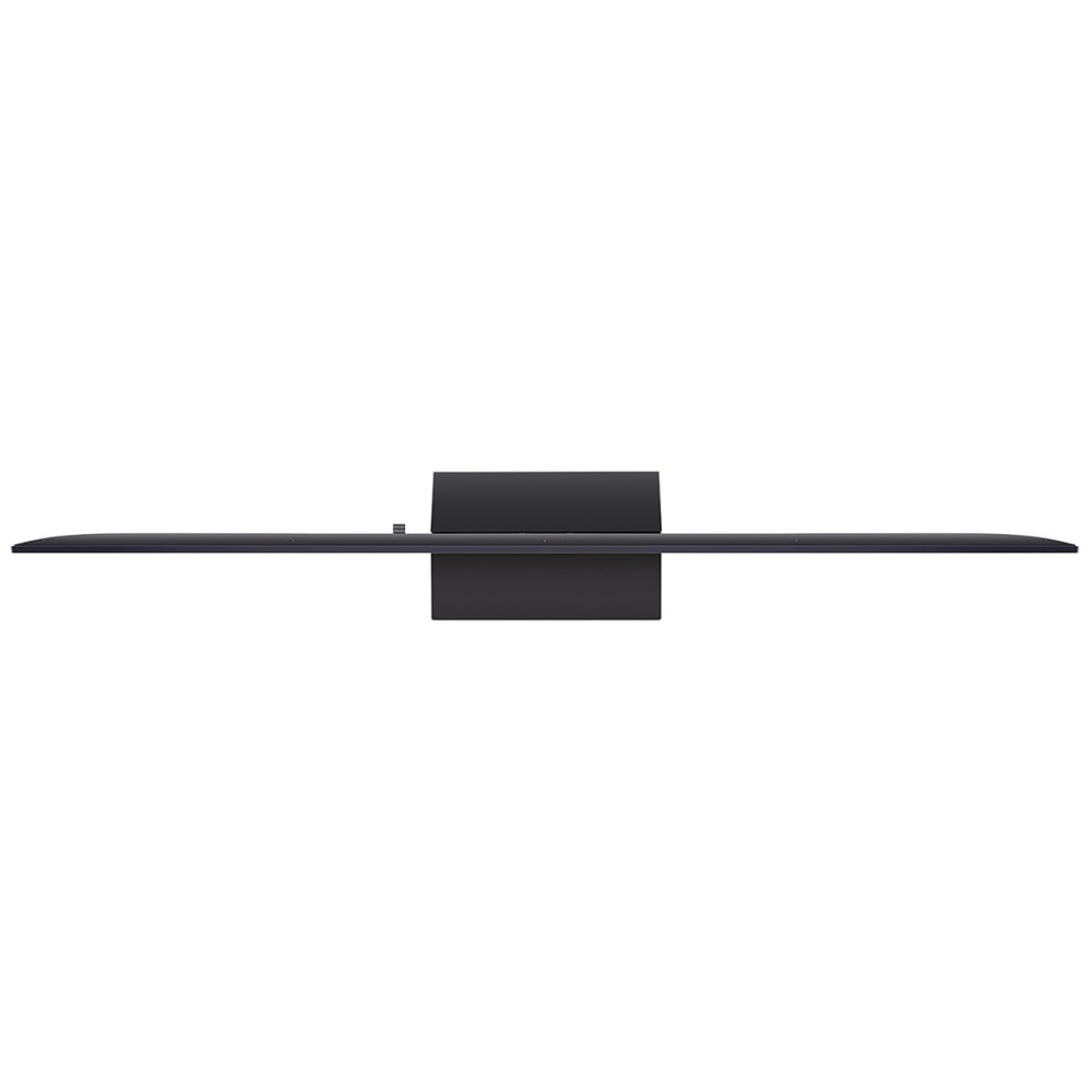 تلویزیون 65 اینچ ال جی UT9100 طراحی ساده ای دارد و مانند مدل سال گذشته خود از زبان طراحی 3 Sided Cinema Screen برخوردار است. زبان طراحی مذکور در واقع به باریک بودن قاب 3 طرف صفحه نمایش این تلویزیون نسبت به قاب پایینی صفحه نمایش آن اشاره دارد. باریک بودن قاب اطراف صفحه نمایش باعث می شود تا شما هنگام تماشای تلویزیون روی محتوای در حال پخش تمرکز کرده و از تماشای آن لذت بیشتری ببرید. به لطف نور پس زمینه Edge LED به کار رفته در این محصول، ضخامت کلی آن تنها 2.97 سانتی متر است که برای یک تلویزیون پایین رده 65 اینچ عالی است. این تلویزیون قابلیت نصب روی دیوار دارد و شما با خرید یک پایه یا براکت دیواری مناسب، می توانید آن را به راحتی روی دیوار نصب کنید. پایه این تلویزیون به شکل خطی است و در قسمت میانی تلویزیون نصب می شود و طراحی خاص خود را دارد. این پایه از دو قسمت تشکیل شده است که ابتدا توسط پیچ روی هم سوار شده و سپس می توانید آن را به پشت تلویزیون پیچ کنید. این پایه ابعاد کوچکی دارد و فضای کمی را اشغال می کند به همین دلیل برای نصب آن روی میز، به میز بزرگی احتیاج نخواهید داشت. پایه این تلویزیون برخلاف برخی سایزهای کوچک تر آن در 2 حالت مختلف قابل تنظیم است و شما می توانید با توجه به نیاز خود آن را نصب نمایید؛ در حالت اول یعنی حالت استاندارد و عادی، ارتفاع تلویزیون نسبت به میز 2.9 سانتی متر است اما اگر بخواهید ساندبار خود را جلوی تلویزیون نصب کنید، می توانید پایه را در حالت دوم یعنی حالت ساندبار تنظیم کنید؛ در این حالت ارتفاع تلویزیون تا سطح میز 6.9 سانتی متر می باشد که برای نصب اکثر ساندبارهای موجود در بازار کاملا مناسب است. پشت پایه تلویزیون محلی برای عبور کابل های متصل به تلویزیون وجود دارد که می توانید به کمک آن کابل ها را مرتب و منظم نمایید. علاوه بر آن ال جی یک کاور پلاستیکی داخل جعبه این تلویزیون قرار داده است که مخصوص پشت پایه است و کابل های عبور داده شده از پشت پایه را مخفی می کند. همینطور داخل جعبه این تلویزیون دو عدد گیره مدیریت کابل و یک عدد گیره مخصوص کابل برق نیز قرار دارد که می توانید به کمک آنها کابل ها را پشت تلویزیون مرتب و منظم نمایید.