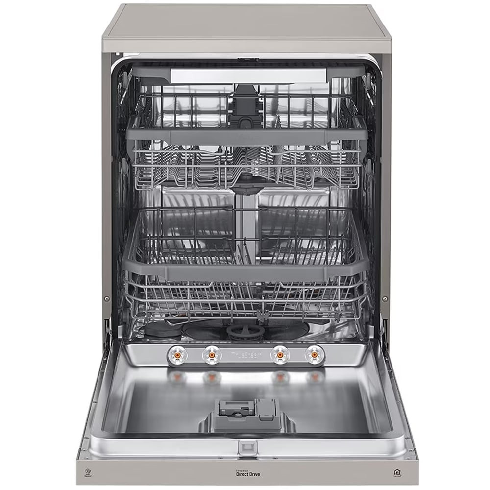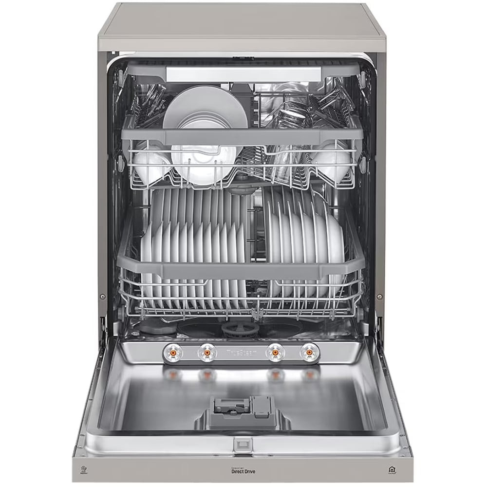 - سیستم EasyRack Plus برای تنظیم طبقات یا سبد های ماشین ظرفشویی قابلیت Dual Zone برای شستشوی ظروف ظریف و ظروف بزرگ به طور هم زمان شستشوی سریع (Express Cycle) در 38 دقیقه پشتیبانی از اینترنت اشیا (IoT) برای مدیریت و کنترل ماشین ظرفشویی از راه دور سیستم تنظیم شدت جریان آب بین سبدها و طبقات مختلف (Vario Washing System) دارای Wi-Fi برای اتصال به شبکه و اینترنت سیستم Aqua-Stop برای جلوگیری از نشت آب قابلیت Control Lock برای قفل کردن پنل کنترلی ماشین ظرفشویی دارای چرخه Intensive برای شستشوی ظروف بسیار کثیف تضمین عملکرد و کارایی موتور Inverter Direct Drive تا 10 سال توسط ال جی قابلیت Extra Dry برای خشک کردن بهتر ظروف برنامه Delicate برای شستشوی ظروف ظریف و شیشهای دارای 3 بازوی آبپاش (Top, Upper, Lower Spray Arms) قابلیت Machine Clean Reminder جهت یادآوری تمیز کردن دستگاه از طریق برنامه LG ThinQ قابلیت شروع شستشو با تاخیر از 1 تا 12 ساعت دارای نگهدارنده مخصوص لیوان های پایه دار (Stemware Holder) سیستم Water Softener برای تنظیم میزان سختی آب سیستم SenseClean میزان کثیفی ظروف را تشخیص می دهد و شستشو را به صورت خودکار تنظیم میکند تکنولوژی TrueSteam برای شستشو و خشک کردن کامل ظروف سیستم Smart Diagnosis برای عیب یابی هوشمند قابلیت High temp برای شستشو با آب داغ برنامه شستشوی Machine Clean برای شستشو و تمیز کردن خودکار داخل ماشین ظرفشویی دارای 2 نوار نویزگیر (Noise Strip) با قابلیت نصب برای کاهش انتقال لرزش و صدای ماشین ظرفشویی دارای موتور Inverter Direct Drive با طول عمر بالا و صرفه جویی در مصرف انرژی و زمان هنگام شستشو قابلیت Energy Saver برای صرفه جویی در مصرف انرژی شستشوی توربو (Turbo Cycle) در 59 دقیقه دارای سنسور تشخیص میزان کثیفی آب و ظروف (Soil Sensor (Turbidity Sensor)) دارای قابلیت تاشو (Foldable Tines) دندانه های سبد برای جایگیری ظروف بزرگ تر تکنولوژی QuadWash برای شستشوی بهتر ظروف با استفاده از بازوی آبپاش 4 پره استفاده از مواد ضد باکتری در ساخت برخی از اجزا ماشین ظرفشویی (Anti-Bacterial Treatment) قابلیت Auto Open Dry برای باز شدن خودکار درب بعد از اتمام شستشو و خشک کردن بهتر ظروف دارای طبقه یا سبد بالا (Extra Space 3rd Basket) مخصوص قرارگیری قاشق، چنگال و ظروف کوچک دارای نشانگر پر کردن مجدد نمک (Salt Refill Icon) پشتیبانی از برنامه LG ThinQ برای کنترل و مدیریت ماشین ظرفشویی از طریق موبایل (مخصوص موبایل های اندرویدی و iOS) قابلیت Half Load برای شستشوی ظروف با نصف ظرفیت مجهز به قابلیت Delay Start برای شروع شستشو با تاخیر دارای قیف (Funnel) برای پر کردن مخزن نمک ماشین ظرفشویی