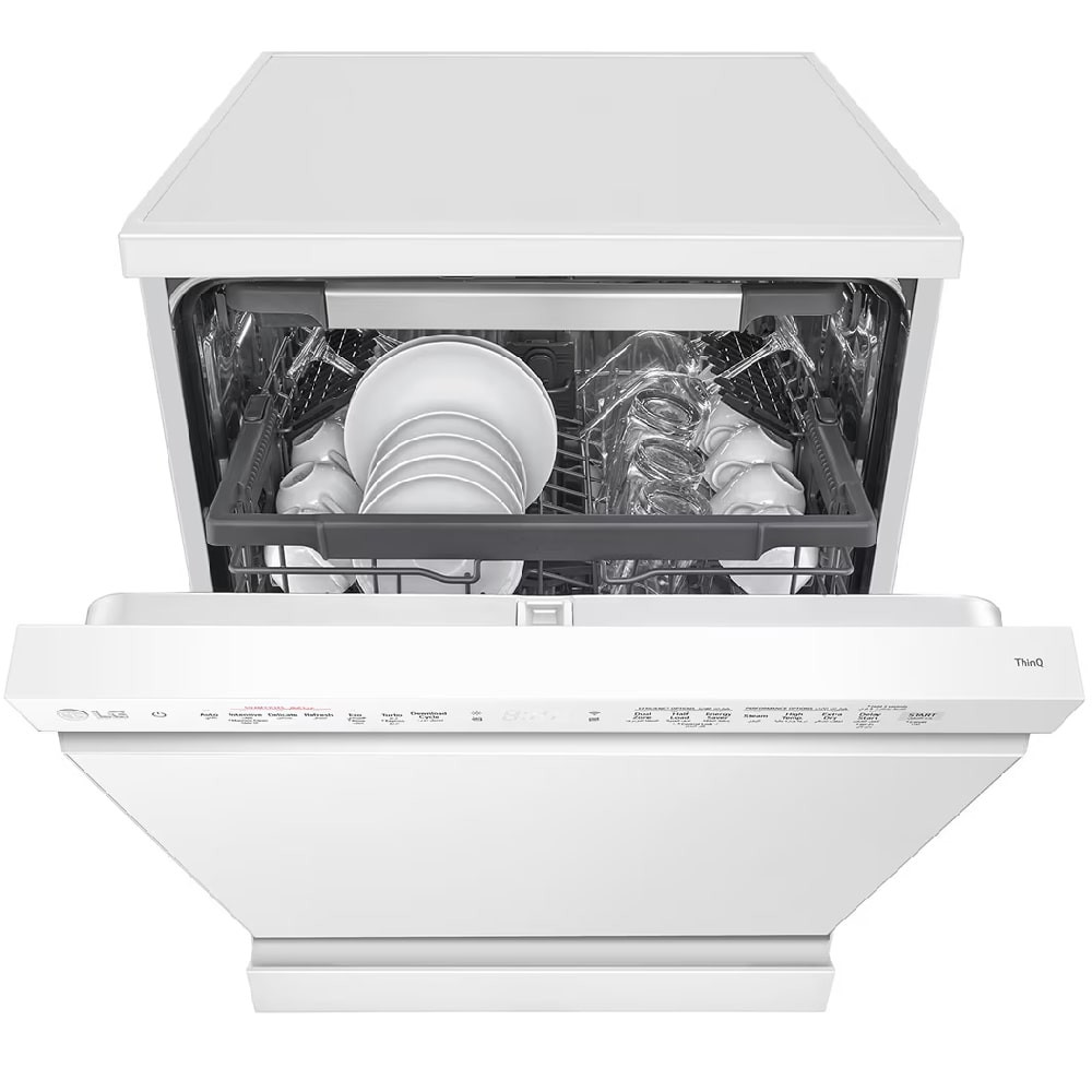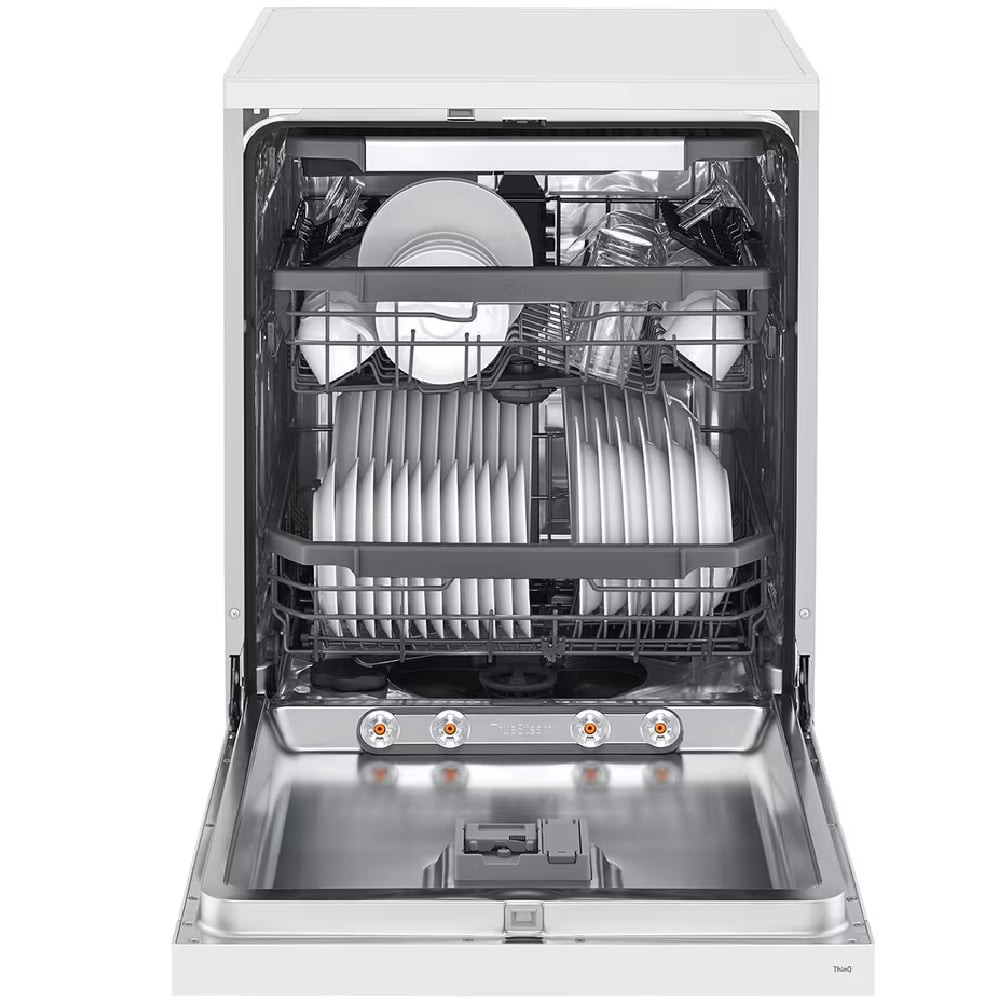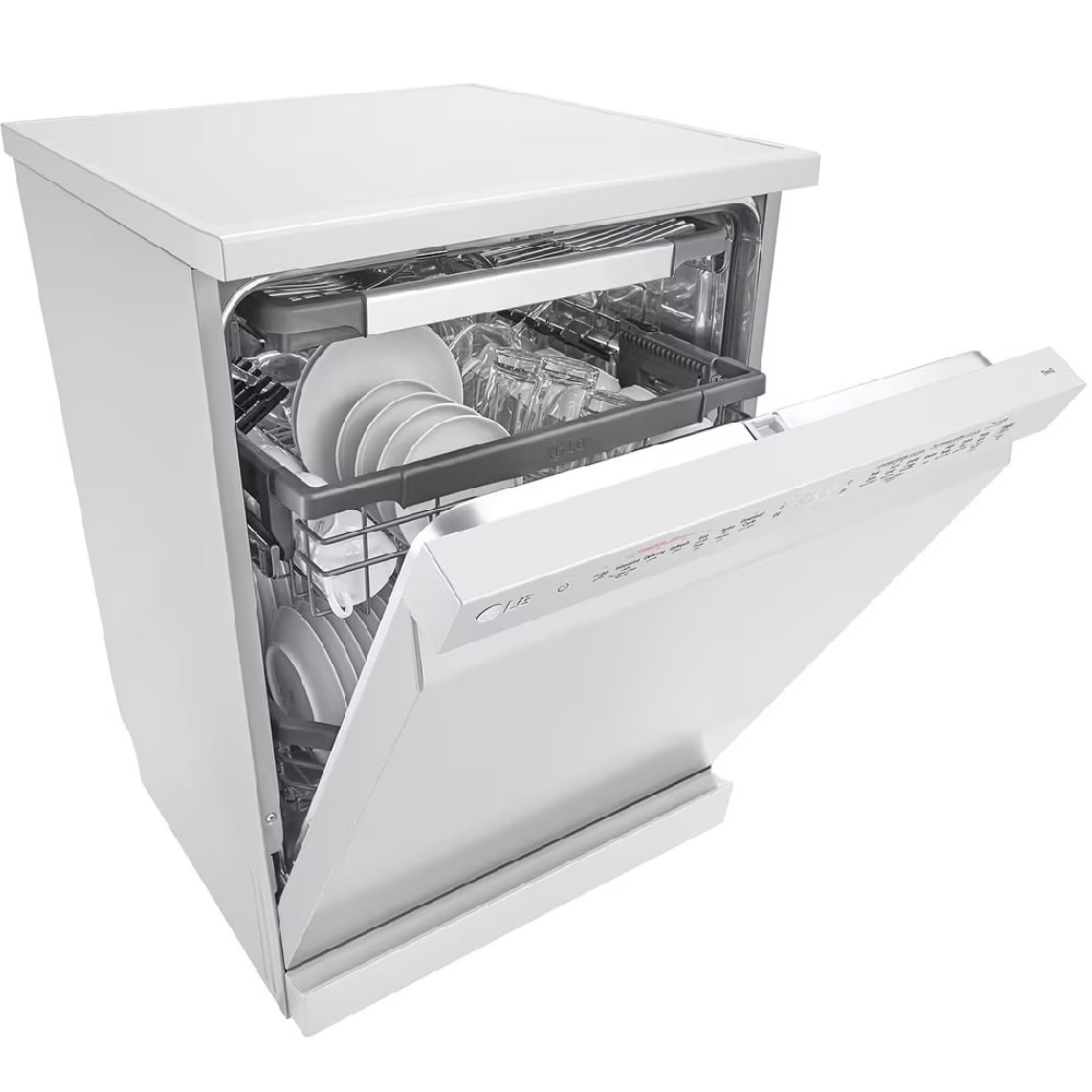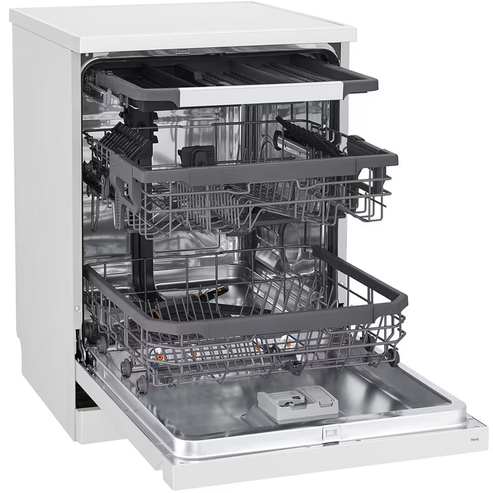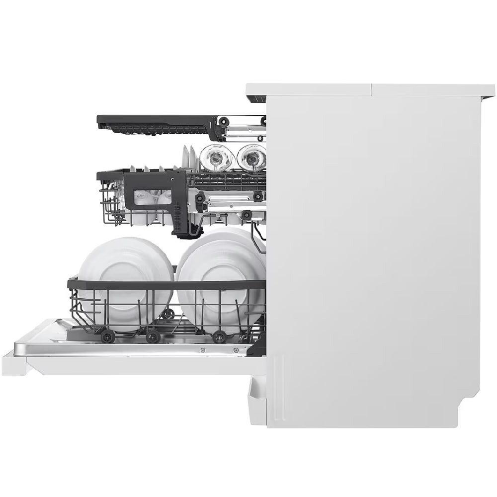 - سیستم EasyRack Plus برای تنظیم طبقات یا سبد های ماشین ظرفشویی قابلیت Dual Zone برای شستشوی ظروف ظریف و ظروف بزرگ به طور هم زمان شستشوی سریع (Express Cycle) در 38 دقیقه پشتیبانی از اینترنت اشیا (IoT) برای مدیریت و کنترل ماشین ظرفشویی از راه دور سیستم تنظیم شدت جریان آب بین سبدها و طبقات مختلف (Vario Washing System) قابلیت Control Lock برای قفل کردن پنل کنترلی ماشین ظرفشویی دارای چرخه Intensive برای شستشوی ظروف بسیار کثیف دارای Wi-Fi برای اتصال به شبکه و اینترنت سیستم Aqua-Stop برای جلوگیری از نشت آب تضمین عملکرد و کارایی موتور Inverter Direct Drive تا 10 سال توسط ال جی قابلیت Extra Dry برای خشک کردن بهتر ظروف برنامه Delicate برای شستشوی ظروف ظریف و شیشهای دارای 3 بازوی آبپاش (Top, Upper, Lower Spray Arms) قابلیت Machine Clean Reminder جهت یادآوری تمیز کردن دستگاه از طریق برنامه LG ThinQ سیستم Water Softener برای تنظیم میزان سختی آب سیستم SenseClean میزان کثیفی ظروف را تشخیص می دهد و شستشو را به صورت خودکار تنظیم میکند تکنولوژی TrueSteam برای شستشو و خشک کردن کامل ظروف قابلیت شروع شستشو با تاخیر از 1 تا 12 ساعت دارای نگهدارنده مخصوص لیوان های پایه دار (Stemware Holder) سیستم Smart Diagnosis برای عیب یابی هوشمند قابلیت High temp برای شستشو با آب داغ برنامه شستشوی Machine Clean برای شستشو و تمیز کردن خودکار داخل ماشین ظرفشویی دارای 2 نوار نویزگیر (Noise Strip) با قابلیت نصب برای کاهش انتقال لرزش و صدای ماشین ظرفشویی دارای سنسور تشخیص میزان کثیفی آب و ظروف (Soil Sensor (Turbidity Sensor)) دارای قابلیت تاشو (Foldable Tines) دندانه های سبد برای جایگیری ظروف بزرگ تر دارای موتور Inverter Direct Drive با طول عمر بالا و صرفه جویی در مصرف انرژی و زمان هنگام شستشو قابلیت Energy Saver برای صرفه جویی در مصرف انرژی شستشوی توربو (Turbo Cycle) در 59 دقیقه تکنولوژی QuadWash برای شستشوی بهتر ظروف با استفاده از بازوی آبپاش 4 پره استفاده از مواد ضد باکتری در ساخت برخی از اجزا ماشین ظرفشویی (Anti-Bacterial Treatment) قابلیت Auto Open Dry برای باز شدن خودکار درب بعد از اتمام شستشو و خشک کردن بهتر ظروف دارای طبقه یا سبد بالا (Extra Space 3rd Basket) مخصوص قرارگیری قاشق، چنگال و ظروف کوچک دارای نشانگر پر کردن مجدد نمک (Salt Refill Icon) مجهز به قابلیت Delay Start برای شروع شستشو با تاخیر دارای قیف (Funnel) برای پر کردن مخزن نمک ماشین ظرفشویی پشتیبانی از برنامه LG ThinQ برای کنترل و مدیریت ماشین ظرفشویی از طریق موبایل (مخصوص موبایل های اندرویدی و iOS) قابلیت Half Load برای شستشوی ظروف با نصف ظرفیت