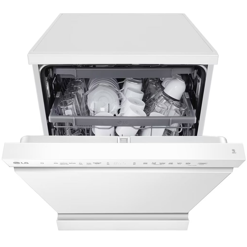 - سیستم Smart Diagnosis برای عیب یابی هوشمند سیستم Aqua-Stop برای جلوگیری از نشت آب قابلیت Control Lock برای قفل کردن پنل کنترلی ماشین ظرفشویی دارای نشانگر پر کردن مجدد نمک (Salt Refill Icon) قابلیت Extra Dry برای خشک کردن بهتر ظروف برنامه Delicate برای شستشوی ظروف ظریف و شیشهای دارای قیف (Funnel) برای پر کردن مخزن نمک ماشین ظرفشویی قابلیت Machine Clean Reminder جهت یادآوری تمیز کردن دستگاه از طریق برنامه LG ThinQ دارای موتور Inverter Direct Drive با طول عمر بالا و صرفه جویی در مصرف انرژی و زمان هنگام شستشو قابلیت شروع شستشو با تاخیر از 1 تا 12 ساعت شستشوی سریع (Express Cycle) در 38 دقیقه سیستم Water Softener برای تنظیم میزان سختی آب سیستم تنظیم شدت جریان آب بین سبدها و طبقات مختلف (Vario Washing System) قابلیت High temp برای شستشو با آب داغ برنامه شستشوی Machine Clean برای شستشو و تمیز کردن خودکار داخل ماشین ظرفشویی دارای چرخه Intensive برای شستشوی ظروف بسیار کثیف پشتیبانی از برنامه LG ThinQ برای کنترل و مدیریت ماشین ظرفشویی از طریق موبایل (مخصوص موبایل های اندرویدی و iOS) تکنولوژی QuadWash برای شستشوی بهتر ظروف با استفاده از بازوی آبپاش 4 پره قابلیت Energy Saver برای صرفه جویی در مصرف انرژی طراحی کاملا مینیمال برای هماهنگی هر چه بهتر با آشپزخانه شما دارای 3 بازوی آبپاش (Top, Upper, Lower Spray Arms) دارای قابلیت تاشو (Foldable Tines) دندانه های سبد برای جایگیری ظروف بزرگ تر استفاده از مواد ضد باکتری در ساخت برخی از اجزا ماشین ظرفشویی (Anti-Bacterial Treatment) دارای نگهدارنده مخصوص لیوان های پایه دار (Stemware Holder) دارای طبقه یا سبد بالا (Extra Space 3rd Basket) مخصوص قرارگیری قاشق، چنگال و ظروف کوچک سیستم SenseClean میزان کثیفی ظروف را تشخیص می دهد و شستشو را به صورت خودکار تنظیم میکند تضمین عملکرد و کارایی موتور Inverter Direct Drive تا 10 سال توسط ال جی قابلیت Half Load برای شستشوی ظروف با نصف ظرفیت مجهز به قابلیت Delay Start برای شروع شستشو با تاخیر دارای 2 نوار نویزگیر (Noise Strip) با قابلیت نصب برای کاهش انتقال لرزش و صدای ماشین ظرفشویی قابلیت Dual Zone برای شستشوی ظروف ظریف و ظروف بزرگ به طور هم زمان شستشوی توربو (Turbo Cycle) در 59 دقیقه دارای سنسور تشخیص میزان کثیفی آب و ظروف (Soil Sensor (Turbidity Sensor)) دارای قابلیت NFC (Near Field Communication) برای وصل شدن گوشی به دستگاه
