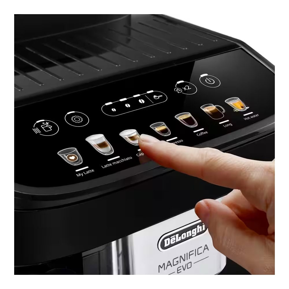 اسپرسوساز اتوماتیک دلونگی مدل Magnifica Evo ECAM292.81.B یک انتخاب عالی برای عاشقان قهوه است که به دنبال ترکیبی از کیفیت، کارایی و طراحی مدرن هستند. این دستگاه نهتنها اسپرسویی غلیظ و خوشعطر تهیه میکند، بلکه با قابلیتهای متنوع خود، تجربهای حرفهای و راحت را در خانه یا محل کار فراهم میکند. با فشار بخار 15 بار، این اسپرسوساز قادر است عصارهگیری قهوه را با قدرت و دقت بالا انجام دهد. این فشار ایدهآل باعث میشود آب با دمای مناسب میان دانههای آسیابشدهی قهوه عبور کند و تمام عطر، طعم و روغنهای طبیعی قهوه را استخراج کند. نتیجه این فرآیند، یک اسپرسوی غلیظ، معطر است که تجربهای همانند قهوههای حرفهای کافیشاپها را ارائه میدهد. توان 1450 وات این دستگاه به معنای عملکرد سریع و کارآمد آن است. این توان بالا کمک میکند دستگاه در زمان کوتاهی به دمای مناسب برای عصاره گیری برسد و همچنین بخار قدرتمندی برای تهیه فوم شیر غلیظ و یکدست تولید کند. درنتیجه، اگر طرفدار نوشیدنیهایی مانند کاپوچینو و لاته هستید، فوم شیری که این دستگاه تولید میکند، کاملاً سبک، خامهای و پایدار خواهد بود. این ویژگی، دلونگی مدل 292.81 را به گزینهای عالی برای علاقهمندان قهوههای متنوع تبدیل میکند. این اسپرسوساز مجموعهای کامل از نوشیدنیهای مبتنی بر قهوه و شیر پشتیبانی میکند و با داشتن 7 گزینهی تک لمسی، تهیه انواع قهوه را برای شما سریع و آسان میسازد. تنها با لمس یک دکمه، میتوانید از میان نوشیدنیهای متنوعی مانند اسپرسو، کاپوچینو، لاته ماکیاتو، کافه لاته، قهوه لانگ و شیر داغ انتخاب کنید.