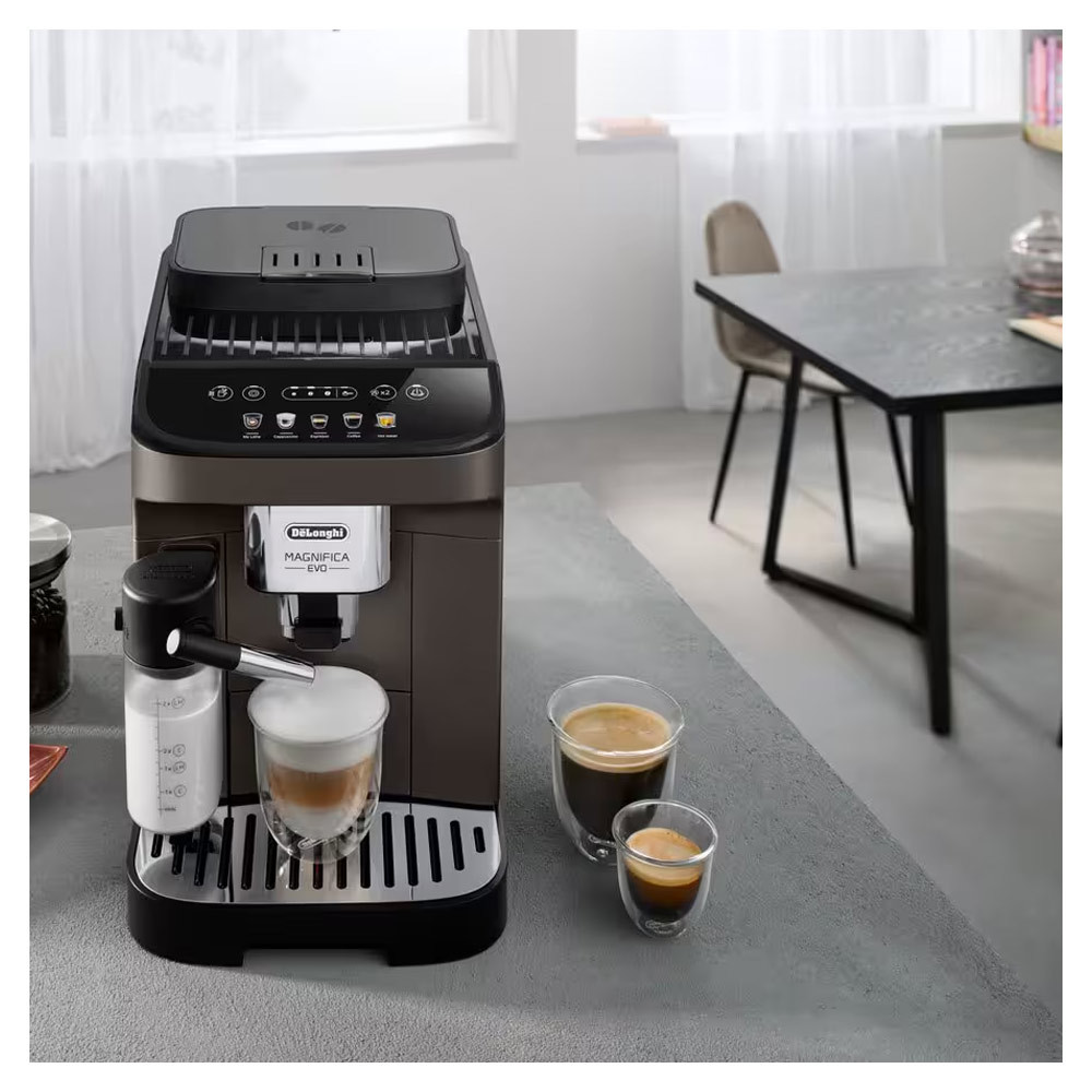 5 دکمه، 5 نوشیدنی، یک لمس تا قهوهای بینقص! تصور کنید صبح زود است، هنوز خوابآلودید و فقط یک فنجان قهوهی عالی میتواند حال شما را عوض کند. با اسپرسوساز 9.6 کیلوگرمی دلونگی دیگر نیازی به تنظیمات پیچیده ندارید! 5 گزینه لمسی در این دستگاه طراحی شدهاند تا فقط با یک لمس ساده، قهوهی موردعلاقهتان را در کمترین زمان آماده کنید. حس اسپرسوی اصیل؟ فقط یک لمس! یک کاپوچینوی خامهای؟ لمس کنید و منتظر معجزه باشید! تصور کنید بدون نیاز به مهارت باریستایی، تنها با فشردن یک دکمه، فنجانی از کاپوچینو یا لاته با فوم شیری مخملی و نرم در اختیار داشته باشید. قابلیت MyLatte در اسپرسوساز دلونگی مدل ECAM293.61 دقیقا همین کار را برای شما انجام میدهد! این ویژگی هوشمند، مقدار دقیق شیر را محاسبه کرده، آن را بخاردهی و فومگیری میکند و در نهایت ترکیبی یکدست و حرفهای به شما تحویل میدهد. با MyLatte، هر روز یک نوشیدنی بینقص درست کنید و از طعم حرفهای آن در خانه یا محل کار لذت ببرید! اسپرسوساز دلونگی 293 با بهرهگیری از سیستم پیشرفته کاپوچینو فرآیند تهیه این نوشیدنی محبوب را به سطحی کاملا حرفهای میرساند. این سیستم با ترکیب دقیق بخار، هوا و شیر، فومی غلیظ، کرمی و سبک تولید میکند که بافتی یکدست و ماندگار دارد. تصور کنید هر روز صبح، اسپرسویی غلیظ، معطر و کرمی را بدون نیاز به مهارت خاصی در خانه آماده کنید! اسپرسوساز DeLonghi مدل 293.61 با فشار بخار 15 بار، دانههای تازه قهوه را آسیاب میکند، عصارهگیری را با دقت انجام میدهد و در نهایت، اسپرسویی با طعمی عمیق و کرمی به شما تحویل میدهد. یک فنجان قهوه، دقیقا همانطور که دوستدارید! برای بعضیها، قهوه فقط یک نوشیدنی نیست؛ بلکه یک شروع فوقالعاده برای روز، یک استراحت آرامشبخش در بعدازظهر یا همراهی دلپذیر در لحظات کاری و مطالعه است. اگر شما هم از آن دسته افراد هستید که روز خود را بدون یک فنجان قهوه تازه شروع نمیکنید. اسپرسوساز 1450 وات دلونگی دقیقا همان چیزی است که نیاز دارید! این دستگاه نهتنها اسپرسوی حرفهای را آماده میکند. بلکه با قابلیت تهیه قهوه لانگ، یک تجربه لذتبخش از قهوهای ملایم، حجیم و خوشعطر را نیز برای شما فراهم میکند. با داشتن سیستم مخصوص تهیه کاپوچینو، این دستگاه شیر را به بافتی لطیف و کرمی تبدیل میکند که وقتی با قهوه ترکیب میشود، یک فنجان کاپوچینوی حرفهای و دلچسب تهیه میکند.