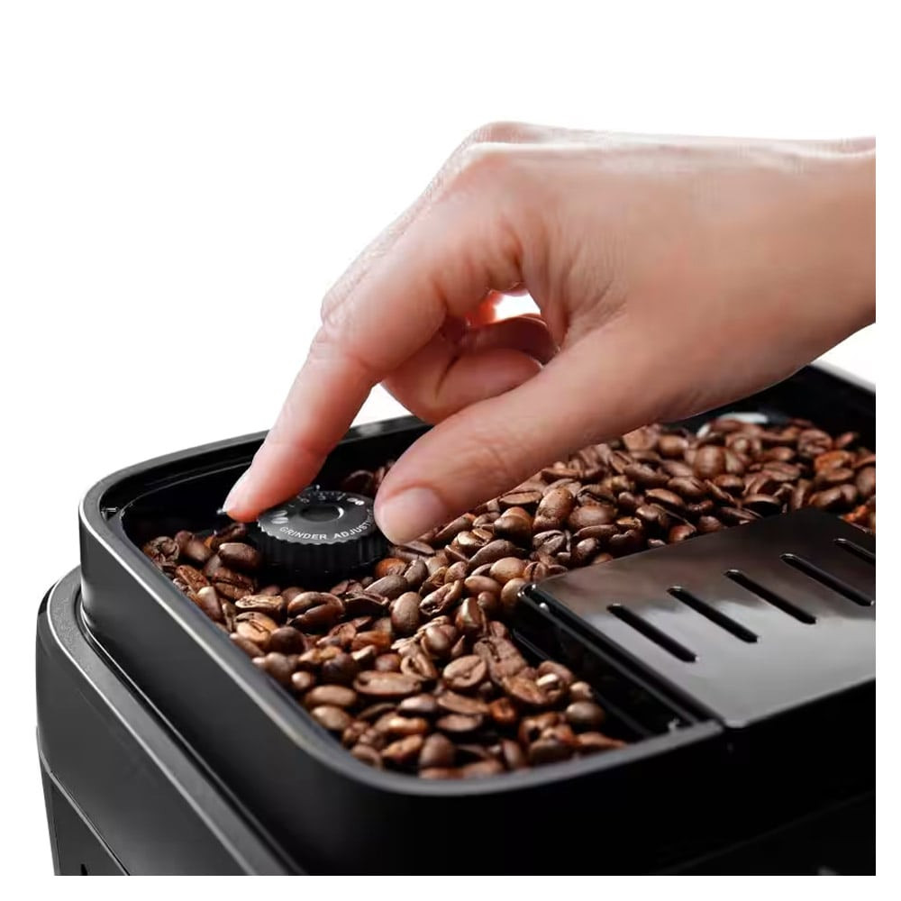 اسپرسوساز دلونگی مدل ECAM293.61.BW یکی از دستگاههای حرفهای و تمام اتوماتیک این برند ایتالیایی است که برای افرادی که به کیفیت قهوه اهمیت میدهند، گزینهای عالی محسوب میشود. دلونگی یکی از معروفترین تولیدکنندگان دستگاههای قهوهساز در جهان است و این مدل را با طراحی مدرن و امکانات پیشرفته ارائه کرده است تا تجربهای بینظیر از تهیه قهوه را در خانه یا محیط کار فراهم کند. این دستگاه بهصورت کاملا اتوماتیک طراحی شدهاست و به شما این امکان را میدهد که با کمترین زحمت، قهوهای تازه و باکیفیت تهیه کنید. از آسیاب دانههای قهوه گرفته تا تهیه اسپرسو، کاپوچینو و سایر نوشیدنیهای بر پایه قهوه، همه مراحل بهراحتی و تنها با لمس چند دکمه انجام میشود. قهوهساز دلونگی با وزن 9.6 کیلوگرم و با ابعاد تقریبی، عمق 440 میلیمتر و ارتفاع 360 میلیمتر و عرض 240 میلیمتر یک دستگاه شیک، قدرتمند و جمعوجور است که ترکیب هوشمندانهای از طراحی مدرن و عملکرد حرفهای را ارائه میدهد و بهراحتی در هر آشپزخانهای جا میگیرد و با ظاهر شیک و متریال باکیفیت، جلوهای لوکس به محیط شما میبخشد. ساختار مستحکم و طراحی ارگونومیک آن، استفاده را آسان و لذتبخش کرده و تجربهای درست مانند یک کافه حرفهای را برای شما فراهم میکند. اما چیزی که واقعاً این دستگاه را متمایز میکند، ترکیب رنگ قهوهای مشکی آن است. این ترکیب جسورانه، در کنار بدنهی خوشساخت و خطوط طراحی ظریف، حسی از لوکس بودن و اصالت را به فضای شما اضافه میکند. هر کدام از جزئیات این دستگاه، با دقت و وسواس طراحی شدهاست؛ از دکمههای لمسی که با یک اشاره شما را به دنیای عطر و طعم میبرند، تا مخزن آب و آسیاب داخلی که بهراحتی قابل دسترسی هستند. همچنین، قابلیت تنظیم میزان غلظت و دمای قهوه، امکان شخصیسازی نوشیدنی را مطابق با سلیقه هر فرد فراهم میکند. توان مصرفی 1450 وات در اسپرسوساز دلونگی مدل 293 نشاندهنده عملکرد قدرتمند و بهینه آن در تهیه قهوه است. این میزان توان باعث میشود که دستگاه در مدتزمان کوتاهی به دمای ایدهآل برای دم آوردن قهوه برسد و همچنین فشار بخار مناسب برای تهیه فوم شیر و اسپرسوی باکیفیت را تأمین کند. همانطور که در بالا اشاره کردیم این نوع اسپرسوساز دارای آسیاب داخلی حرفهای است که یکی از مهمترین مزیتهای آن محسوب میشود. این ویژگی به شما امکان میدهد که مستقیما از دانههای قهوه برای تهیه اسپرسو، کاپوچینو یا سایر نوشیدنیهای بر پایه قهوه استفاده کنید. برخلاف قهوه آسیابشده آماده، دانههای معطر و تجربهی تازه و بی نقص خواهید داشت. و دیگر نگران تمام شدن سریع دانههای قهوه نباشید! این دستگاه با مخزنی با ظرفیت 250 گرم قهوه طراحی شده که میتواند معادل 14 فنجان قهوه تازه و بینظیر را برای شما فراهم کند. اما این تنها یک مخزن ساده نیست! وجود درپوش محافظ عطر باعث میشود دانههای قهوه همیشه تازه، معطر و آمادهی آسیاب شدن باشند. این یعنی هر بار که دستگاه را روشن میکنید، همان عطر دلپذیر و طعم بینقص اولین فنجان قهوه را تجربه خواهید کرد. ظرفیت 1.8 لیتری این دستگاه به این معناست که شما میتوانید چندین فنجان اسپرسو یا سایر نوشیدنیهای بر پایه قهوه را بدون نگرانی از تمام شدن آب مخزن تهیه کنید. این ویژگی بهخصوص برای افرادی که در طول روز چندین بار قهوه مینوشند یا قصد دارند از دستگاه در محیط کار استفاده کنند، بسیار کاربردی است. همچنین این مخزن بهراحتی از دستگاه جدا میشود، بنابراین میتوانید بدون جابهجایی کل دستگاه، آن را بهسادگی پر کرده و دوباره در جای خود قرار دهید. این طراحی باعث افزایش راحتی در استفاده و همچنین تمیزکاری آسانتر میشود. یکی از عوامل کلیدی که کیفیت اسپرسو را تعیین میکند، میزان فشار بخار دستگاه است. DeLonghi با فشار 15 بار، استانداردی حرفهای برای استخراج قهوه فراهم میکند. این میزان فشار باعث میشود که آب با شدت و یکنواختی مناسب از میان قهوهی آسیابشده عبور کند و تمام عطر و طعم و روغنهای طبیعی آن را استخراج کند.