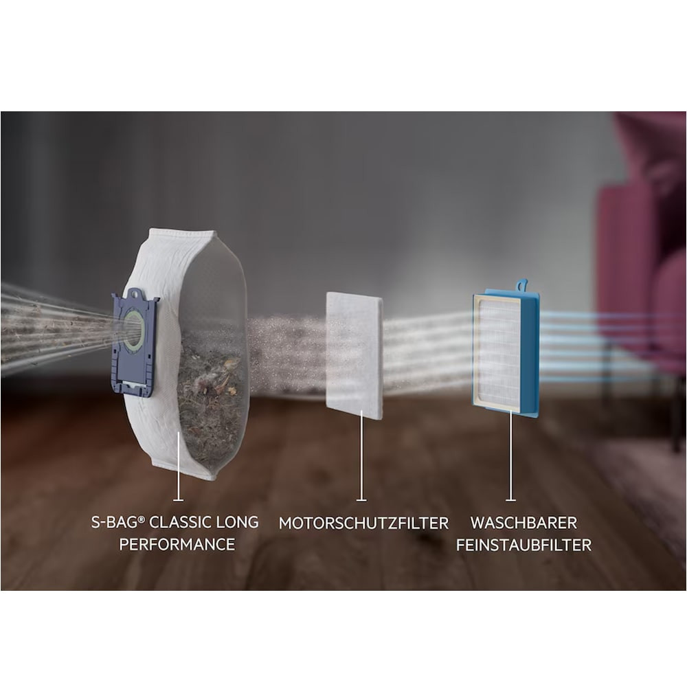 - قابلیت Automatic Cable Rewind برای جمع کردن خودکار سیم (سیم جمع کن خودکار) دارای نازل PrecisionFlow مناسب برای انواع کف (تنظیمات برس را با پدال تغییر دهید) لوله تلسکوپی از نوع استیل (Steel) دارای سیم برق 9 متری با شعاع عملکرد 12 متری دستگیره با طراحی ارگونومیک برای کنترل بهتر و راحتی بیشتر مجهز به موتور قدرتمند و کم صدا دارای نازل اتصال اثاثه یا لوازم داخلی برای تمیز کردن پرده ها، پارچه های سبک و غیره (Upholstery nozzle) فیلتر Exhaust برای تمیز کردن هوای خروجی از جاروبرقی دارای کیسه ی گرد و غبار با دوام از نوع s-bag با ظرفیت 3.5 لیتر و ماندگاری طولانی مدت و قدرت مکش بهینه چرخ های نرم (SoftRolls) برای حرکت راحت تر و جلوگیری از آسیب رساندن به سطح زمین فیلتر HEPA برای جذب ذرات ریز گرد و غبار از هوای خروجی جاروبرقی مخصوص افراد آلرژیک با قابلیت شستشو دارای چرخ های XL با روکش لاستیکی نازل سه کاره (3 در 1) برای تمیز کردن بهتر درز ها و شکاف ها، مبلمان و گرد گیری (3-in-1 Accessory)