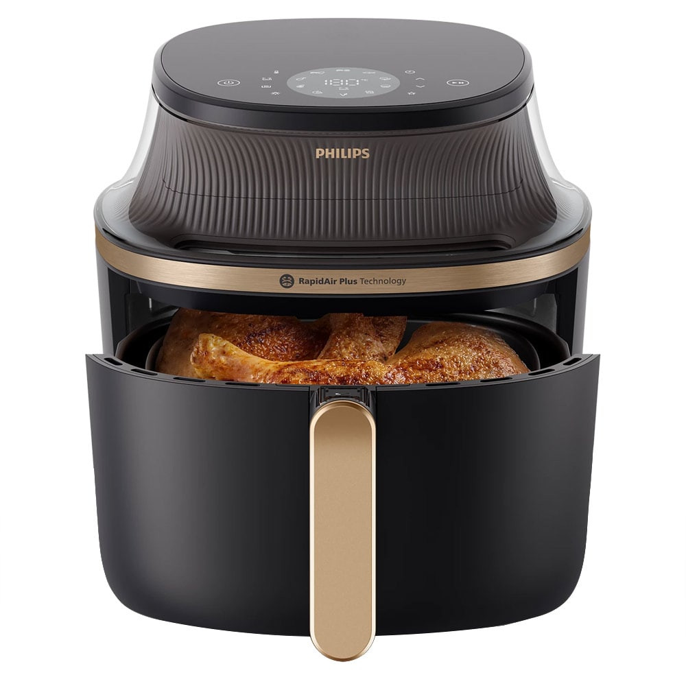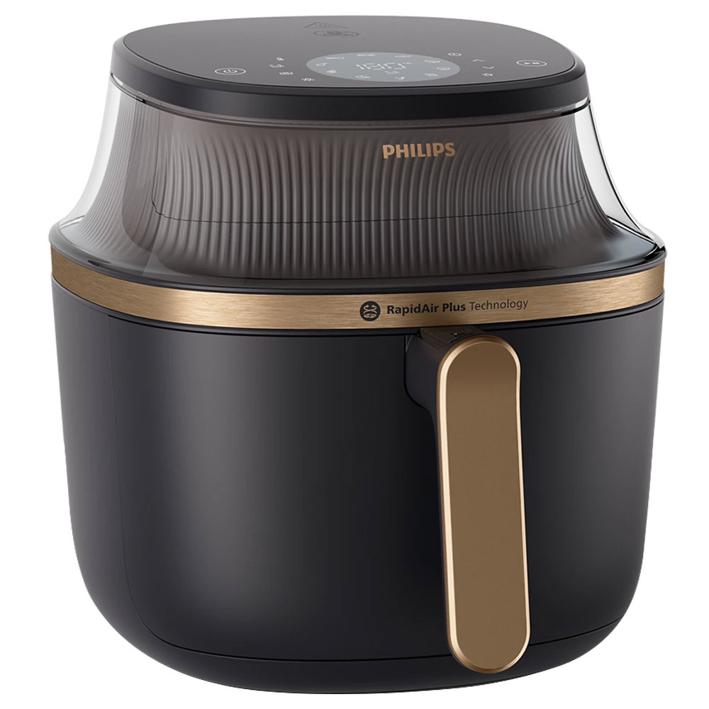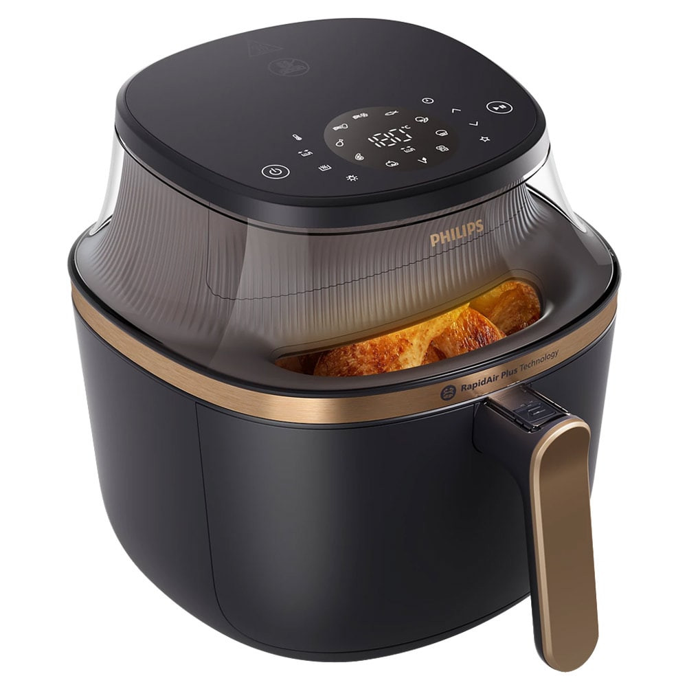 فناوری RapidAir Plus یکی از نوآوریهای اختصاصی شرکت فیلیپس است که پایه و اساس عملکرد سرخ کن های بدون روغن این برند را تشکیل میدهد. این فناوری با گردش سریع هوای داغ در تمام جهات، امکان پخت غذاها با کمترین میزان روغن فراهم میکند، درحالی که طعمی خوشمزه و بافتی ترد و طلایی در سطح غذا ایجاد میشود. در فناوری RapidAir هوای داغ با سرعت بالا بهصورت چرخشی در محفظه دستگاه جریان پیدا میکند. طراحی منحصربهفرد کف سبد و محفظه پخت باعث میشود که گرما بهطور یکنواخت به تمام قسمتهای غذا برسد. این فرآیند نهتنها باعث پخت سریعتر و یکنواختتر غذا میشود، بلکه نیاز به روغن زیاد را به حداقل میرساند یا حتی کاملا حذف میکند.