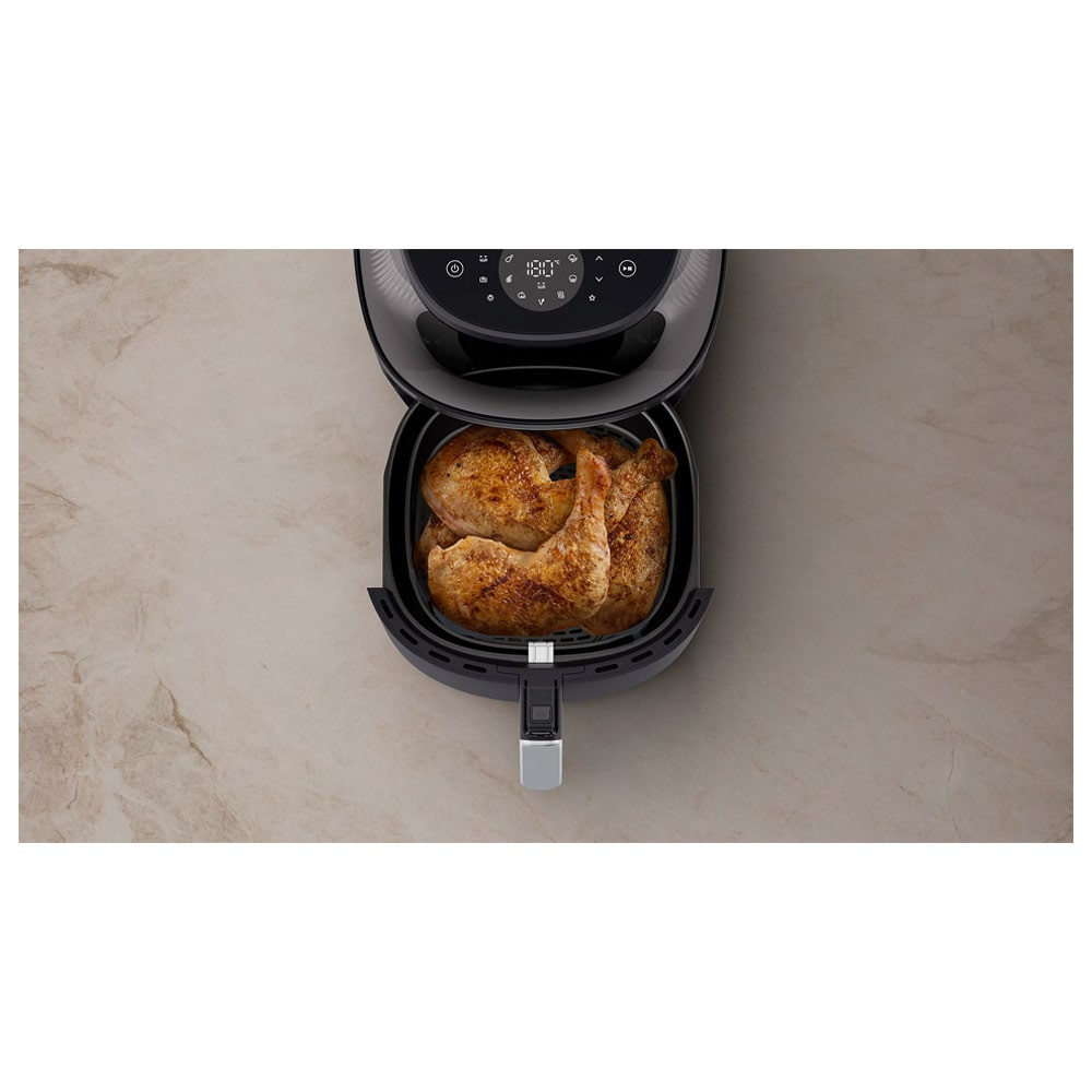 - تکنولوژی Rapid Air برای گردش سریع هوا و کاهش بو در هنگام سرخ کردن دستور پخت از پیش تعیین شده دارای چراغ نشانگر زمان پخت دارای ظرفیت 6.2 لیتر دارای سبد QuickClean Airfryer با روکش نچسب جهت تمیز کردن آسان دارای کاسه با روکش نچسب سرخ کردن مواد غذایی بدون نیاز به پیش گرم کردن دستگاه تمامی قطعات قابل جابجایی قابل شستشو در ماشین ظرفشویی دارای صفحه نمایش لمسی پایه لاستیکی برای ثبات بیشتر دستگاه دارای تکنولوژی حذف چربی دارای نشانگر روشن بودن دستگاه امکان سرخ کردن مواد غذایی با 90% چربی کم تر دارای محدوده تنظیم درجه حرارت بین 40 تا 200 درجه