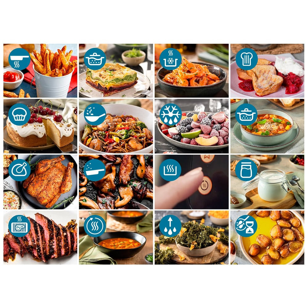 - حالت Fry برای سرخ کردن انواع مواد غذایی حالت Cook from frozen برای پخت غذاهای یخ زده برنامه Keep Warm برای گرم نگه داشتن مواد غذایی حالت Dehydrate برای آبگیری مواد غذایی برنامه Bake جهت پختن انواع مواد غذایی حالت Defrosting برای یخ زدایی انواع مواد غذایی حالت Toast برای درست کردن تست حالت Ferment برای درست کردن غذاهای تخمیر شده با تخمیر در دمای پایین برنامه Reheat جهت گرم کردن مجدد مواد غذایی حالت Grill برای طلایی کردن سطح غذاها به کمک المنت گریل حالت Stir-Frying برای پختن غذا با حرارت بالا برنامه Saute برای تفت دادن انواع مواد غذایی و سبزیجات