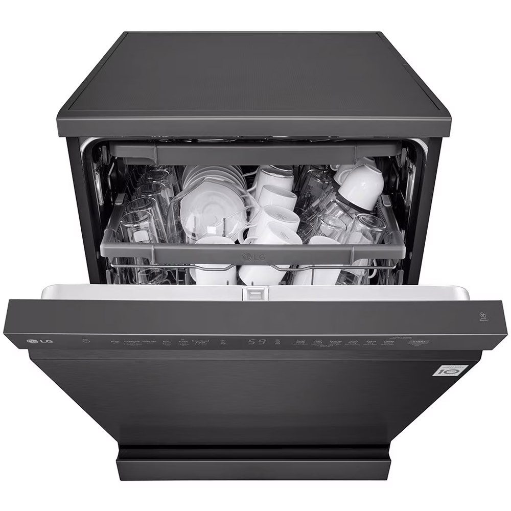 - سیستم Smart Diagnosis برای عیب یابی هوشمند سیستم Aqua-Stop برای جلوگیری از نشت آب قابلیت Control Lock برای قفل کردن پنل کنترلی ماشین ظرفشویی دارای نشانگر پر کردن مجدد نمک (Salt Refill Icon) دارای قیف (Funnel) برای پر کردن مخزن نمک ماشین ظرفشویی قابلیت Machine Clean Reminder جهت یادآوری تمیز کردن دستگاه از طریق برنامه LG ThinQ دارای موتور Inverter Direct Drive با طول عمر بالا و صرفه جویی در مصرف انرژی و زمان هنگام شستشو قابلیت Extra Dry برای خشک کردن بهتر ظروف برنامه Delicate برای شستشوی ظروف ظریف و شیشهای قابلیت شروع شستشو با تاخیر از 1 تا 12 ساعت شستشوی سریع (Express Cycle) در 38 دقیقه سیستم Water Softener برای تنظیم میزان سختی آب سیستم تنظیم شدت جریان آب بین سبدها و طبقات مختلف (Vario Washing System) دارای چرخه Intensive برای شستشوی ظروف بسیار کثیف پشتیبانی از برنامه LG ThinQ برای کنترل و مدیریت ماشین ظرفشویی از طریق موبایل (مخصوص موبایل های اندرویدی و iOS) قابلیت High temp برای شستشو با آب داغ برنامه شستشوی Machine Clean برای شستشو و تمیز کردن خودکار داخل ماشین ظرفشویی تکنولوژی QuadWash برای شستشوی بهتر ظروف با استفاده از بازوی آبپاش 4 پره قابلیت Energy Saver برای صرفه جویی در مصرف انرژی طراحی کاملا مینیمال برای هماهنگی هر چه بهتر با آشپزخانه شما دارای 3 بازوی آبپاش (Top, Upper, Lower Spray Arms) دارای قابلیت تاشو (Foldable Tines) دندانه های سبد برای جایگیری ظروف بزرگ تر سیستم SenseClean میزان کثیفی ظروف را تشخیص می دهد و شستشو را به صورت خودکار تنظیم میکند استفاده از مواد ضد باکتری در ساخت برخی از اجزا ماشین ظرفشویی (Anti-Bacterial Treatment) دارای نگهدارنده مخصوص لیوان های پایه دار (Stemware Holder) دارای طبقه یا سبد بالا (Extra Space 3rd Basket) مخصوص قرارگیری قاشق، چنگال و ظروف کوچک تضمین عملکرد و کارایی موتور Inverter Direct Drive تا 10 سال توسط ال جی قابلیت Half Load برای شستشوی ظروف با نصف ظرفیت مجهز به قابلیت Delay Start برای شروع شستشو با تاخیر دارای 2 نوار نویزگیر (Noise Strip) با قابلیت نصب برای کاهش انتقال لرزش و صدای ماشین ظرفشویی دارای سنسور تشخیص میزان کثیفی آب و ظروف (Soil Sensor (Turbidity Sensor)) دارای قابلیت NFC (Near Field Communication) برای وصل شدن گوشی به دستگاه قابلیت Dual Zone برای شستشوی ظروف ظریف و ظروف بزرگ به طور هم زمان شستشوی توربو (Turbo Cycle) در 59 دقیقه