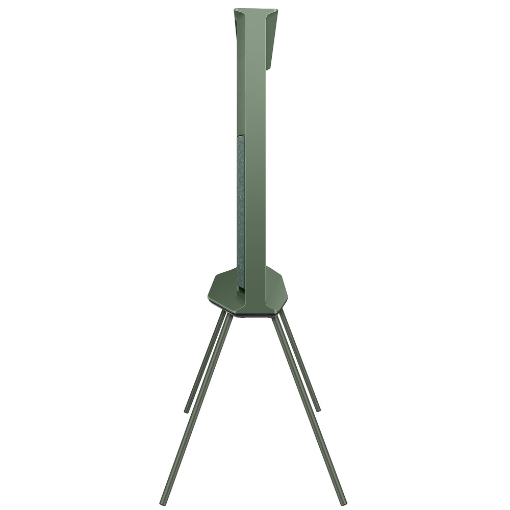تلویزیون 50 اینچ سامسونگ LS01D رنگ سبز، مانند مدل 2 سال گذشته خود دارای طراحی بسیار خلاقانه و مینیمالی است. طراحی این محصول به قدری جذاب است که هر فردی در نگاه اول چند دقیقه به آن خیره می شود تا مطمئن شود که این محصول یک تلویزیون است یا قاب عکس! محصول فوق در 2 رنگ متفاوت طراحی شده و شما می توانید از قسمت انتخاب رنگ، رنگ دلخواه خود را با توجه به دکوراسیون منزل خود انتخاب کنید. محصول فوق در سال 2020 در رقابت های iF DESIGN AWARD برنده بهترین تلویزیون از نظر طراحی شد. طراحی این تلویزیون در مقایسه با مدل 2 سال گذشته آن تفاوتی نکرده و این تلویزیون همچنان از طراحی سریف (Serif) برخوردار است. در مورد طراحی این تلویزیون لازم است توضیحاتی را خدمت شما عرض کنیم؛ در واقع زمانی که تلویزیونی طوری طراحی می شود که در شمایل کلی یا از زاویه ای خاص شبیه یکی از حروف و یا اعداد باشد، می توان گفت که آن محصول دارای طراحی سریف است؛ رونان و اروان بورولک با جزئی نگری و دید خاص هنری که دارند، این محصول را طوری طراحی کرده اند که از نمای بغل شبیه حرف بزرگ I است. همانطور که در گالری عکس های این تلویزیون نیز قابل مشاهده است، بالا و پایین تلویزیون فوق قطورتر از بدنه تلویزیون می باشد و شبیه طاقچه است. با وجود این طراحی خاص، شما امکان این را دارید که یک دکوری کوچک مانند مجسمه، گلدان، شمع و... روی تلویزیون فوق قرار دهید و حتی می توانید پشت بدنه این تلویزیون برچسب یا نوت بچسبانید و به نوعی آن را از هر زاویه ای مطابق با سلیقه و دکور منزل خود شخصی سازی نمایید. سامسونگ امسال نیز طراحی VNB (Very Narrow Bezel) را برای قاب این تلویزیون درج نموده که البته با ضخامت این محصول چندان تطابق ندارد و کمی عجیب است! به بیانی دیگر برخلاف نامی که سامسونگ برای طراحی قاب تلویزیون فوق در نظر گرفته است که به معنی باریک بودن آن است، قاب 4 طرف صفحه نمایش این تلویزیون از ضخامت چشمگیری برخوردار است. برادران بورولک با رویکردی جدید و ایده ای خلاقانه ظاهر این محصول، مخصوصا قاب 4 طرف صفحه نمایش و پایه های آن را به سبک تلویزیون های مبله و طرح چوب قدیمی طراحی کرده اند؛ به این ترتیب می توان سبک طراحی این تلویزیون را نوستالژیک نامید که کمی هم با مدرنیته تلفیق شده است. داخل جعبه این محصول 4 عدد پایه فلزی سبز رنگ بلند قرار گرفته که هر کدام درون حفره مخصوص به خود در زیر تلویزیون به صورت جداگانه نصب می شوند. شما برای نصب این پایه ها به پیچ نیاز ندارید و تنها با چرخش پایه ها در داخل حفره می توانید از محکم شدن آن مطمئن شوید. همچنین در داخل جعبه این محصول یک لوله استوانه ای کوچک وجود دارد که به کمک آن می توانید پایه ها را راحت تر نصب کنید. ارتفاع تلویزیون در صورتی که آن را روی پایه های مذکور نصب نمایید، 117.68 سانتی متر می باشد و شما می توانید تلویزیون را در هر جایی که مد نظر شماست، قرار دهید که عالی است. نکته قابل ذکر این است که نباید زمانی که تلویزیون روی پایه خود نصب است، آن را روی زمین هل دهید و در صورتی که می خواهید آن را جا به جا کنید، بهتر است آن را بلند کنید. طراحی خاص این محصول باعث شده تا بتوانید آن را بدون نیاز به پایه رومیزی، بر روی میز قرار دهید؛ زیر بدنه این تلویزیون از جنس فلز می باشد و بسیار مقاوم بوده و از ضخامت زیادی برخوردار است. متاسفانه این تلویزیون برخلاف اکثر تلویزیون های این برند محل نصب براکت یا پایه دیواری ندارد و در نتیجه قابل نصب روی دیوار نیست. محل اتصال کابل ها در پشت تلویزیون به کمک یک کاور سبز رنگ پوشیده شده و به راحتی قابل رؤیت نیست. کاور پشت تلویزیون طرحی هاشوری داشته و آن را از بدنه صاف و یکدست تلویزیون متمایز می سازد. توجه داشته باشید که در زیر کاور مذکور شیارهایی برای مدیریت بهترکابل های متصل به تلویزیون تعبیه شده است. در انتها نیز همه کابل ها از داخل روزنه ای که در پشت بدنه تلویزیون قرار دارد عبور داده شده و در امتداد پایه ها مدیریت می شوند. علاوه بر آن سامسونگ برای نظم دادن بیشت
