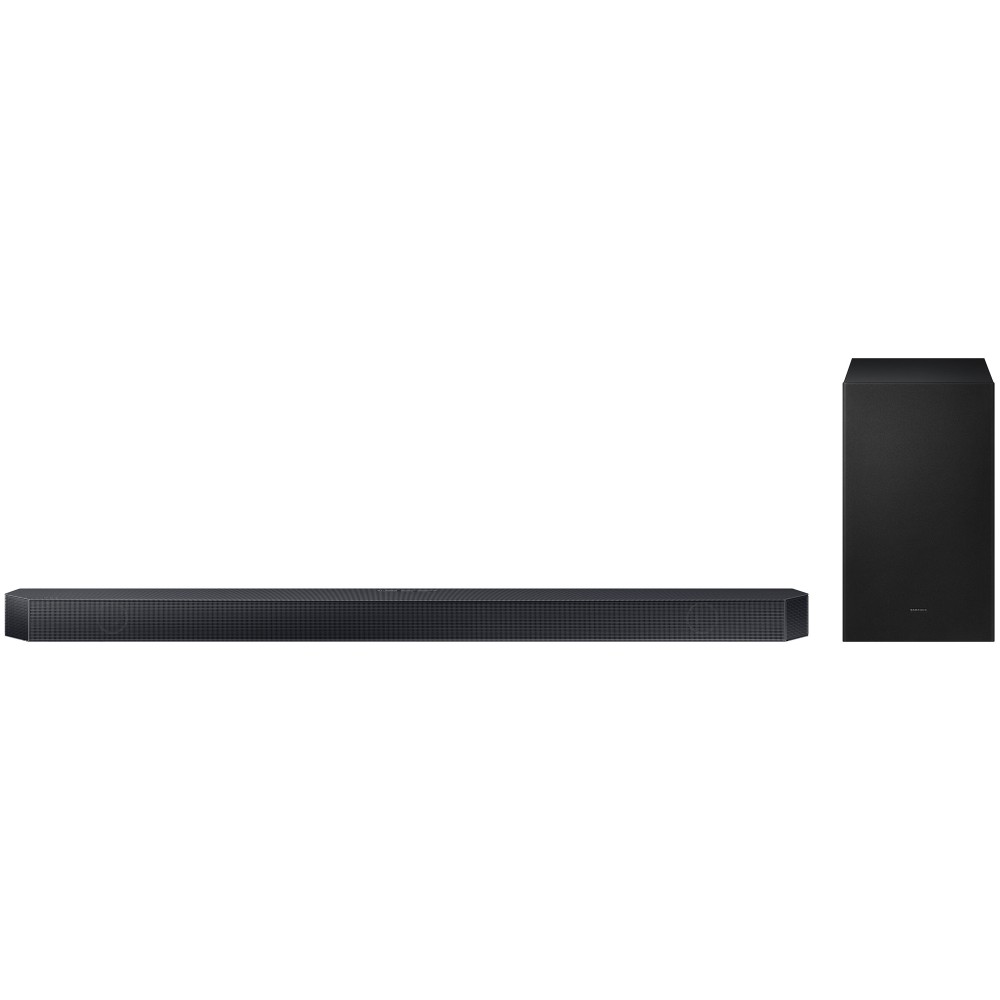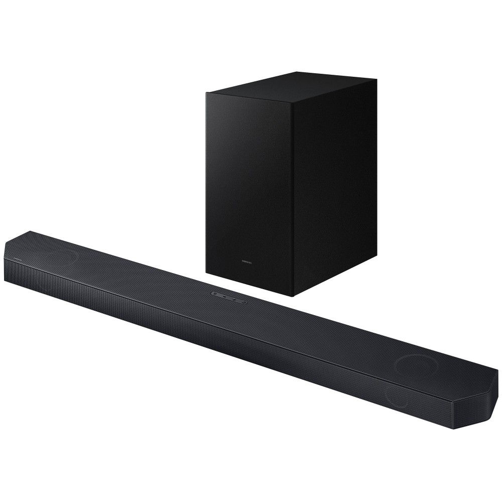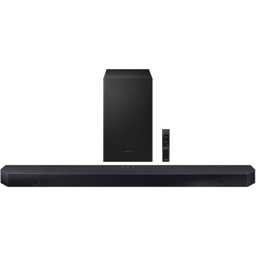 ساندبار 320 وات سامسونگ HW-Q700C به طور کلی از 9 بلندگو برخوردار است که شامل بلندگوهای چپ، راست و وسط و همینطور بلندگوهای Up-Firing و یک عدد ساب ووفر می باشد که واقعا عالی است. به عبارت دقیق تر این ساندبار دارای 3 بلندگوی توییتر (Tweeter) 10 واتی با کانال اختصاصی به عنوان کانال صدای وسط برای پخش دیالوگ های واضح تر در قسمت جلوی ساندبار می باشد. علاوه بر آن دارای 3 بلندگوی 30 واتی نیز در قسمت جلوی ساندبار است که متاسفانه سامسونگ نوع بلندگوهای آن را مشخص نکرده است اما حدس ما این است که از نوع ووفر (Woofer) باشند. متاسفانه سامسونگ توضیح دقیقی در مورد این بلندگوها اعلام نکرده است اما طبق بررسی ما دو عدد از این بلندگوها صدای چپ و راست را تولید کرده و بلندگوی سوم صدای وسط را تقویت می کند. سامسونگ برای این ساندبار سنگ تمام گذاشته و علاوه بر بلندگوهای گفته شده، 2 بلندگوی Up-Firing نیز در قسمت بالای ساندبار تعبیه نموده است که هر کدام 20 وات توان خروجی صدا دارند. ساندباری که ساب ووفر نداشته باشد، هیچ هیجانی ایجاد نمی کند! بله این ساندبار دارای یک ساب ووفر (Subwoofer) مجزای بی سیم نیز می باشد که 160 وات توان خروجی صدا را در اختیار شما قرار می دهد و باعث ارائه صدای هیجان انگیزی می شود. به طور کلی این ساندبار با توجه به بلندگوهایی که دارد، قدرت خروجی صدا 320 وات را در اختیار شما قرار می دهد که برای تماشای فیلم و سریال و گیمینگ کاملا مناسب است و در این رنج قیمت یکی از بهترین انتخاب ها می باشد. اگر این میزان از صدا برای شما کافی نیست و به صدای با کیفیت تر، هیجان انگیزتر و فراگیرتری احتیاج دارید، جای نگرانی وجود ندارد چرا که این ساندبار دارای قابلیت Wireless Rear Surround Speaker Ready می باشد؛ شما می توانید بلندگوی بی سیم سامسونگ مدل SWA-9500S را به صورت مجزا خریداری کرده و به آن متصل نمایید تا صدای فراگیرتر و سه بعدی تری را تجربه نموده و از آن لذت بیشتری ببرید. ساب ووفر این ساندبار مدل PS-WC75B می باشد که به صورت بی سیم و از طریق بلوتوث به ساندبار متصل می شود و شما می توانید با توجه به نیاز خود آن را در اطراف تلویزیون و ساندبار و با فاصله مشخصی از آنها قرار دهید. این ساندبار 3.1.2 کاناله است و صدای فراگیر واقعی را در اختیار شما قرار می دهد. بلندگوهای Up-Firing تعبیه شده در قسمت بالای ساندبار طوری طراحی شده اند که صداها را بالای سر شما پخش می کنند و حس غوطه وری را هنگام تماشای صحنه های سینمایی تجربه کنید و از آن لذت ببرید. این موضوع باعث می شود تا برای تلویزیون های پایین رده و میان رده ای که صدای فراگیر واقعی و سه بعدی ندارند، مکمل عالی باشد و تجربه صوتی غنی و هیجان انگیزی را در اختیار شما قرار دهد. البته شما می توانید از این ساندبار در کنار تلویزیون های بالا رده نیز استفاده کنید و محدودیتی از این بابت وجود ندارد اما برای این تلویزیون ها بهتر است به سراغ ساندبارهای حرفه ای تر بازار بروید. ساندبار 3.1.2 کاناله سامسونگ HW-Q700C با استفاده از مجموعه ای از تکنولوژی های صوتی پیشرفته از جمله تکنولوژی Dolby Digital، Dolby Digital Plus و Dolby Audio کیفیت صداها را بهبود می بخشد. علاوه بر آن سامسونگ این ساندبار را به تکنولوژی Dolby Atmos، DTS-HD، DTS:X، Dolby TrueHD، DTS-HD Master Audio، DTS HD High Resolution Audio و همینطور Dolby MAT نیز مجهز کرده است تا صدای فراگیر واقعی را در اختیار شما قرار دهد. تکنولوژی Dolby MAT در این ساندبار به شما کمک می کند تا در صورتی که ساندبار را از طریق کابل HDMI (پورت HDMI که eARC داشته باشد) به تلویزیون متصل کرده اید، صدای Dolby Atmos را با کمترین افت کیفیت در اختیار شما قرار دهد و پخش کند. علاوه بر آن این ساندبار درست مانند مدل سال گذشته خود مجهز به تکنولوژی Wireless Dolby Atmos نیز می باشد و شما می توانید صدای Dolby Atmos را با کیفیت بالا اما به صورت بی سیم و از طریق Wi-Fi روی پخش کنید؛ لازم به ذکر است که تلویزیون شما نیز باید تکنولوژی Wireless Dolby Atmos داشته باشید تا بتواند صدای Dolby Atmos را به صورت بی سیم روی ساندبار منتقل و پخش کند. امسال سامسونگ برای اولین بار از