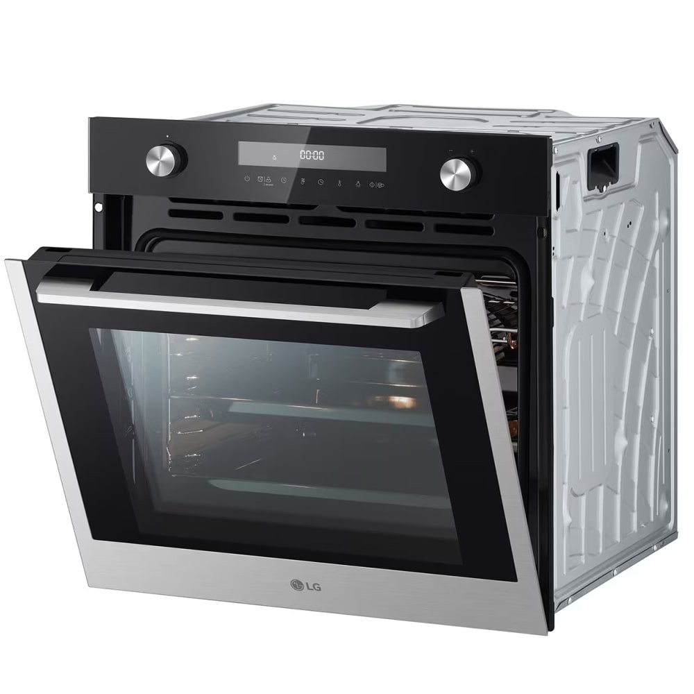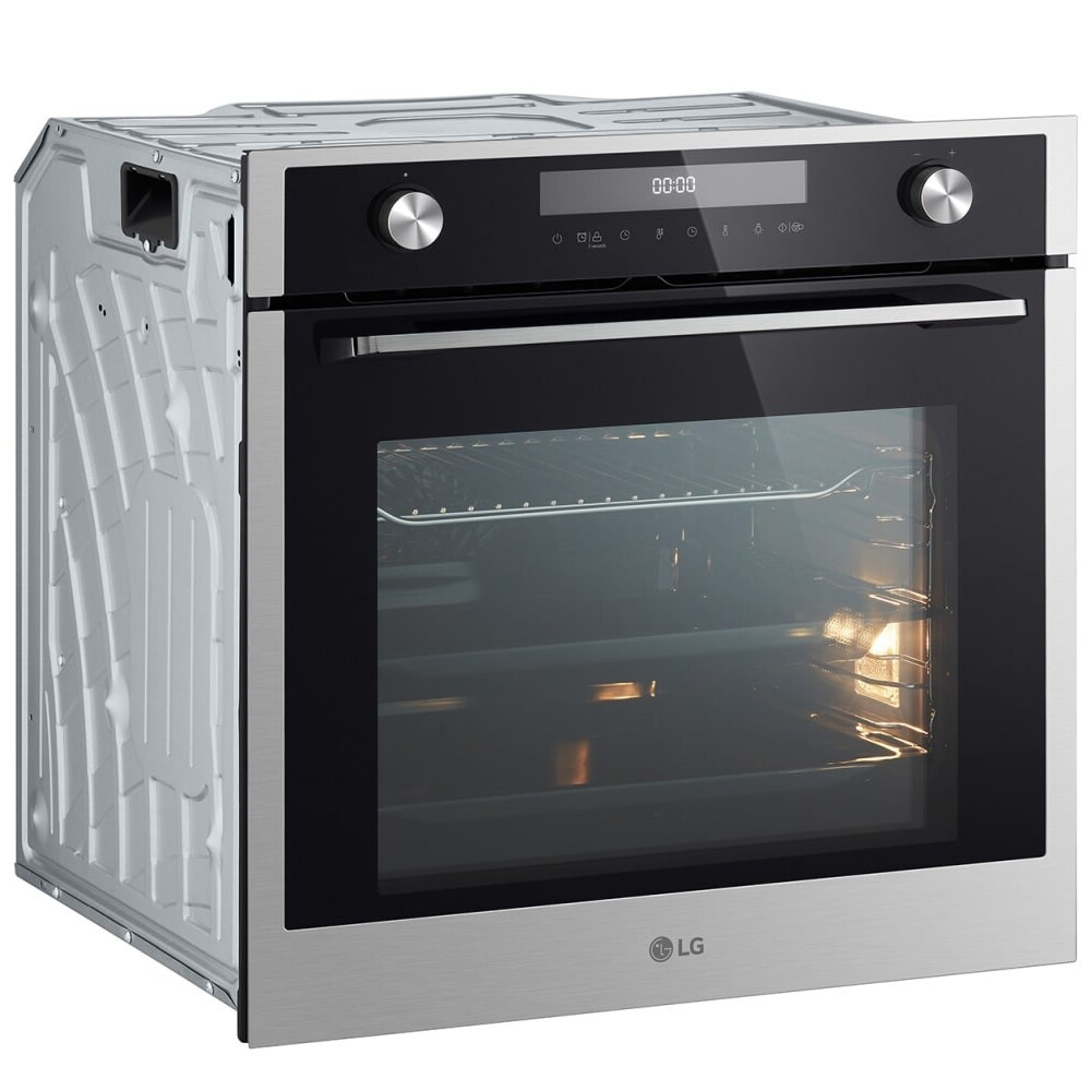 روکش مشکی و نقرهای براق این فر، جلوهای از ظرافت را به دکوراسیون آشپزخانه شما میبخشد. طراحی مدرن و مینیمالیستی آن به طور یکپارچه با کابینتهای آشپزخانه شما ادغام میشود و ظاهری یکپارچه و پیچیده ایجاد میکند. بگذارید این فر به نقطه کانونی آشپزخانه شما تبدیل شود! اما فقط ظاهر بیرونی آن چشمگیر نیست، فر برقی توکار ال جی مملو از ویژگیهایی است که آشپزی را بسیار آسان میکند. همچنین صفحه نمایش LED، دید واضحی را برای نظارت بر زمان و تنظیمات پخت فراهم میکند. این فر چندمنظوره گزینههای پخت متنوعی از جمله پخت در فر، گریل کردن، کباب کردن و کانوکشن را ارائه میدهد و به شما این امکان را میدهد که تکنیکهای مختلف آشپزی را آزمایش کنید و هر بار به نتایج عالی برسید. چه در حال پخت کیکهای پفدار، کبابهای آبدار یا پیتزاهای ترد باشید، این فر تضمین میکند که هر گوشه از غذای شما به نحوی عالی پخته شود. پوستههای طلایی، گوشتهای آبدار و کیکهای مرطوبی را دریافت کنید که حتی سختپسندترین ذائقهها را تحت تأثیر قرار میدهد. آشپزخانه خود را ارتقا دهید و از هنر آشپزی با فر برقی توکار ال جی لذت ببرید. از وعدههای غذایی روزمره گرفته تا ضیافتهای مجلل، این فر نتایج استثنایی را با سبک و سهولت ارائه میدهد. از امکانات تعالی آشپزی استقبال کنید و با فر برقی توکار ال جی آشپزخانه خود را به شگفتی تبدیل کنید. ضمن اینکه این فر مجهز به ریلهای تلسکوپی است که جا به جایی آسان سینیهای داغ را تضمین میکند این در حالی است که فناوری پخت یکنواخت آن نتایج کاملا بینقصی را ارائه میدهد. یک توری گریل و دو سینی همراه فر توکار 7225S2 وجود دارد، سینی Roasting pan مخصوص برای کباب کردن و پخت گوشت و مرغ میباشد و سینی عمیقتر Deep baking sheet برای پخت غذاهای مایعتر و کیکهای اسفنجی و غیره مناسب است. دستگیره به صورت میلهای طراحی شده است که امکان باز کردن راحت درب را به سمت پایین برای شما فراهم خواهد کرد. در داخل دستگاه 5 طبقه یا شیار برای قرار دادن قفسهها وجود دارد. پنلهای داخلی فر از جنس Catalytic panels (پنلهای کاتالیتیک) میباشند. یعنی دیوارههای داخلی فر دارای پوشش مخصوص هستند که در دمای بالا چربیها را میسوزوند و تمیز نگه داشتن فر رو راحتتر میکند. یک لامپ از نوع هالوژن هم برای روشن کردن داخل فر وجود دارد.