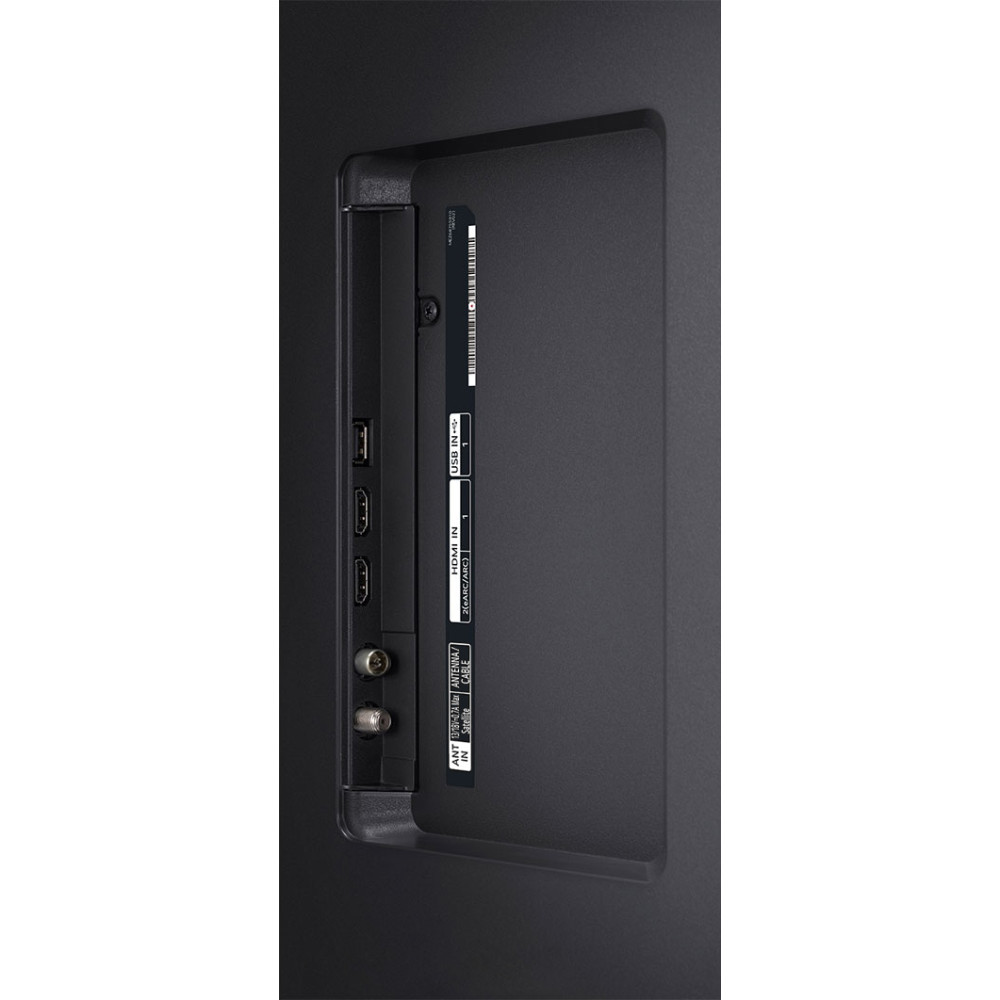 ضخامت کلی این تلویزیون 5.75 سانتی متر است و شما این امکان را دارید که با تهیه یک پایه دیواری یا براکت به صورت مجزا آن را به راحتی روی دیوار نصب کنید. در جعبه این تلویزیون 1 عدد کابل نگه دارنده برق و 2 عدد گیره مدیریت کابل وجود دارد که به کمک آن می توانید کابل ها را پشت تلویزیون مرتب و منظم کنید. کابل برق این تلویزیون از نوع Detachable یا جداشدنی می باشد و شما این امکان را دارید که آن را از تلویزیون جدا کنید.