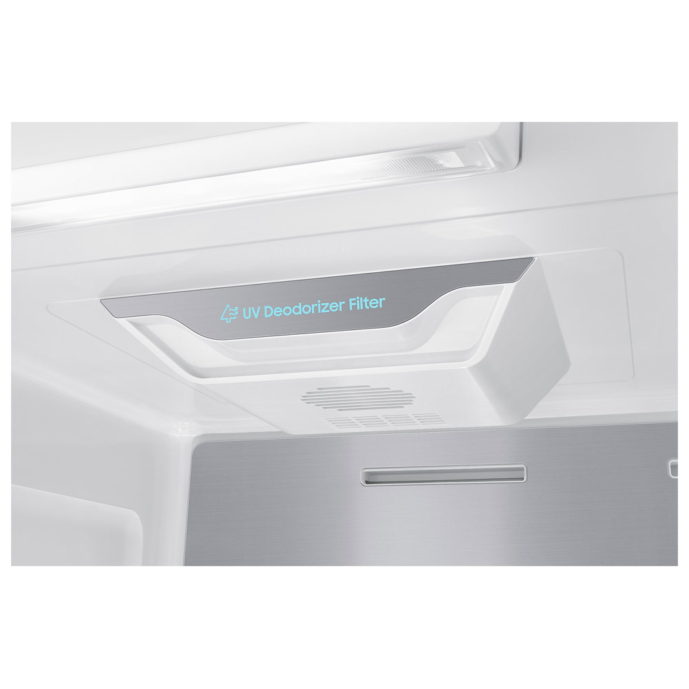 - طراحی شیک و یکپارچه (Built-in Look) جهت هماهنگی بیشتر با کابینت و دکوراسیون آشپزخانه پشتیبانی از اینترنت اشیاء (IoT) برای مدیریت و کنترل یخچال فریزر توسط دستگاههای هوشمند سازگار از طریق شبکه و اینترنت تضمین عملکرد و کارایی موتور با تکنولوژی Digital Inverter تا 20 سال توسط سامسونگ مناسب برای مناطق جغرافیایی با آب و هوای نیمه معتدل (Extended temperate) یا SN بوگیر یا Deodorizer جهت جلوگیری از پخش بوی مواد غذایی در یخچال پشتیبانی از برنامه SmartThings برای مدیریت و کنترل یخچال فریزر و سایر دستگاه ها از طریق موبایل هوشمند استفاده از گاز R600a برای ایجاد سرمایش و سازگاری با محیط زیست قابلیت Power Freeze برای انجماد سریع در فریزر سیستم یخ ساز اتوماتیک (Auto Ice Maker) دارای صفحه فلزی مخصوص (Metal Cooling) در قسمت درب یخچال برای ثابت نگهداشتن و حفظ سرما جنس بدنه استیل (Easy Clean Steel) برای نظافت آسان و جلوگیری از ماندگاری اثر انگشت محل قرار گیری پنل کنترلی در داخل یخچال قابلیت Door Alarm برای اطلاع دادن در صورت باز ماندن درب یخچال دارای کشوی مخصوص نگهداری میوه و سبزیجات سیستم تهویه هوای All Around Cooling برای توزیع هوای سرد یکنواخت در کل یخچال و فریزر از طریق دریچه های هوای متعدد سیستم خنک کننده یکپارچه (Mono Cooling) برای چرخش هوا در یخچال و فریزر قابلیت درب در درب (Food Showcase) برای دسترسی به برخی مواد غذایی بدون باز کردن درب اصلی یخچال و جلوگیری از هدر رفت سرما سیستم یخ ریز با قابلیت تولید یخ حبه ای (مکعبی) و یخ خرد قابلیت Power Cool برای سرمایش سریع در یخچال دستگیره مخفی (Recess Handle) تکنولوژی SpaceMax جهت افزایش گنجایش داخلی نسبت به یخچال های قدیمی تر با همین ابعاد قابلیت Child Lock (Lock) برای قفل کردن پنل کنترلی یخچال تکنولوژی Anti-Bacterial Protector برای از بین بردن باکتری ها و بوی بد مواد غذایی و تصفیه هوای داخلی یخچال به کمک فیلتر کربن فعال طبقات یخچال و فریزر از جنس شیشه حرارت دیده سیستم بدون برفک (No Frost) قابلیت Dispenser Lock برای قفل کردن قسمت آب ریز