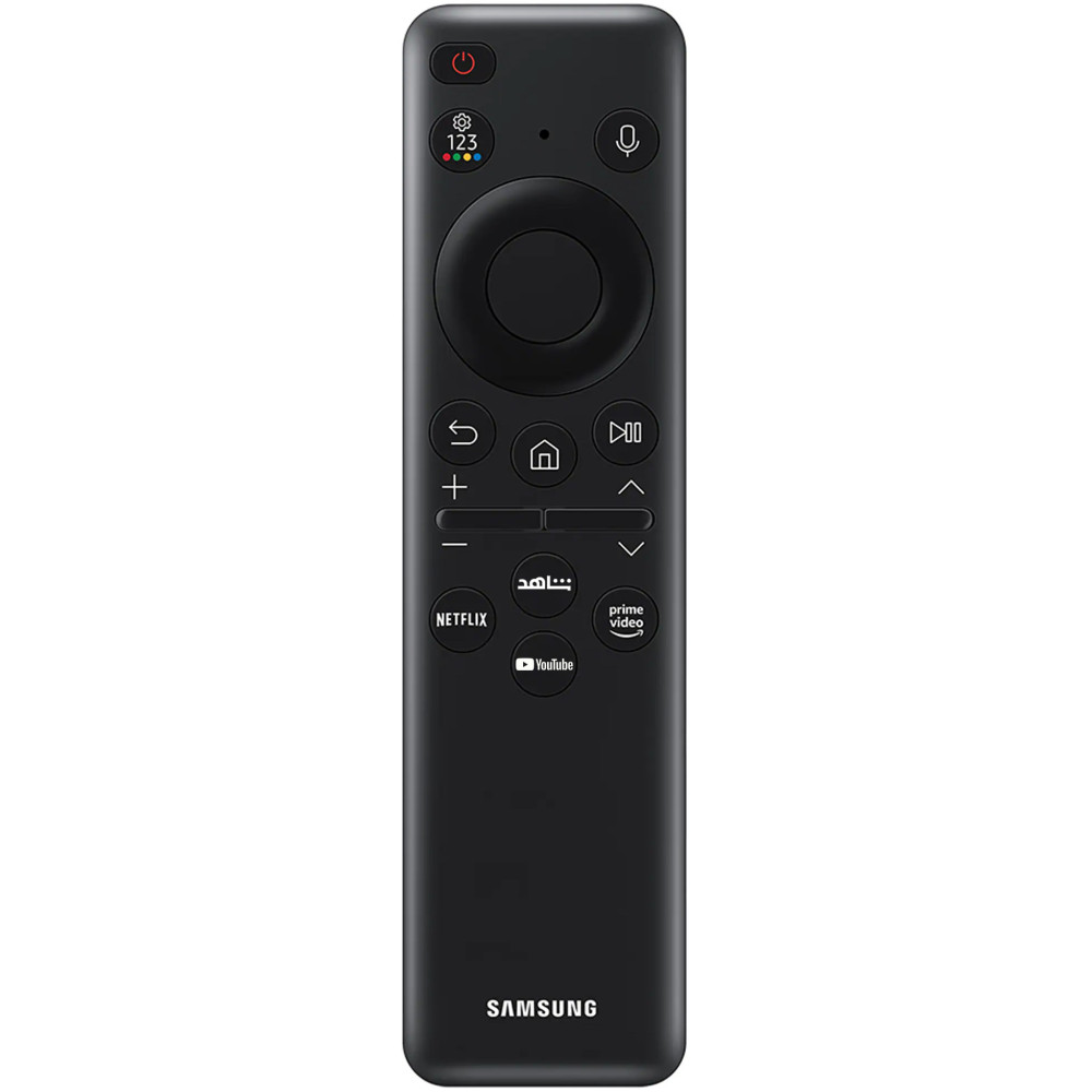 برند کرهای سامسونگ امسال برای اولین بار از هوش مصنوعی سامسونگ ویژن (Samsung Vision AI) رونمایی کرده و در این تلویزیون استفاده نموده است که به شما اجازه میدهد تا به برخی امکانات، قابلیتها و تکنولوژیهای هوشمند جدید دسترسی داشته باشید که در مورد آنها توضیح خواهیم داد. در مورد ریموت کنترل این تلویزیون حرف و حدیثهای زیادی وجود دارد و در مورد آن یک خبر خوب و یک خبر بد داریم که در ادامه در مورد آنها توضیح خواهیم داد. خبر خوب این است که سامسونگ امسال ریموت کنترل هوشمند، شارژی و بلوتوثی جدیدی با مدل TM2560E تولید کرده است؛ طراحی، امکانات و روش شارژ این ریموت کنترل دقیقا مانند ریموت کنترلهای هوشمند تلویزیونهای سال گذشته سامسونگ میباشد اما با این تفاوت که به دکمه جدیدی به نام دکمه AI مجهز شده است. دکمه AI مذکور درست بین دکمه میکروفون و دکمه تنظیمات قرار گرفته است و سامسونگ تصمیم گرفته تا سوراخ میکروفون و چراغ LED ریموت کنترل را کمی بالاتر تعبیه کند. دکمه AI جدید، دسترسی شما به برخی امکانات هوشمند در این تلویزیون را راحتتر میکند. برای مثال این دکمه یک قابلیت جدید به نام قابلیت Click To Search را در اختیار شما قرار میدهد که برای اولین بار است که در تلویزیونهای سامسونگ شاهد آن هستیم. قابلیت Click To Search خود شامل 2 قابلیت جدید دیگر به نام قابلیت Watch Next و Who's On میباشد که برای دوستداران سینما بسیار جذاب و کاربردی است. قابلیت Watch Next مذکور با استفاده از هوش مصنوعی، نام فیلم، امتیاز فیلم، روایت و داستان کوتاه فیلم در حال تماشا و همینطور برخی اطلاعات دیگر را از پایگاه دادههای فیلم و سریالهای سینمایی مانند IMDb در اختیار شما قرار میدهد. علاوهبر آن، با توجه به محتوای در حال پخش، محتواهای دیگری را با موضوعات مشابه به شما پیشنهاد میکند. قابلیت Who's On مذکور نیز با استفاده از هوش مصنوعی، اطلاعات مرتبط با کاراکترها و بازیگرهای محتوای در حال پخش و همینطور لیستی از دیگر آثار سینمایی و تلویزیونی آنها را به شما نمایش می دهد که بسیار کاربردی و جذاب است. توجه داشته باشید که قابلیتهای گفته شده تنها درصورتیکه شما در حال تماشای شبکههای داخلی، خارجی و همچنین شبکههای پخش زنده برنامه Samsung TV Plus باشید، کار میکنند. علاوهبر آن شبکههایی که در حال تماشای آنها هستید، باید از متادیتای مورد نیاز برای ارائه این اطلاعات، پشتیبانی کنند در غیر این صورت باز هم این قابلیتها کار نخواهند کرد. خبر بد این است که ریموت کنترل TM2560E که امسال سامسونگ تولید نموده است، داخل جعبه این تلویزیون با مونتاژهایی که برای منطقه ما تولید شده است، وجود ندارد! در واقع سامسونگ در اقدامی عجیب، همچنان ریموت کنترل هوشمند، شارژی و بلوتوثی TM2360E که در تلویزیونهای سامسونگ سال گذشته وجود داشت را برای منطقه ما در نظر گرفته است؛ بنابراین روی ریموت کنترلی که داخل جعبه این تلویزیون است، دکمه AI وجود ندارد. ناگفته نماند، اگرچه ریموت کنترلی که برای این تلویزیون در نظر گرفته شده، دکمه AI ندارد اما جای نگرانی نیست چون به جای آن شما میتوانید با فشردن و نگه داشتن دکمه Home روی آن، از قابلیت Click To Search که پیشتر خدمت شما عرض کردیم، استفاده کنید و دقیقا همان کارایی را دارد. ریموت کنترل این تلویزیون همانند گذشته مجهز به باتری داخلی بوده و شارژی است و نیازی به تعویض باتری ندارد. طراحی و ابعاد این ریموت کنترل نیز همچنان جمعوجور و کوچک است و بسیار خوشدست نیز میباشد. پشت این ریموت کنترل یک پنل خورشیدی (SolarCell) تعبیه شده است و شما میتوانید زمانی که از ریموت کنترل استفادهای ندارید، آن را برگردانید تا به کمک نور محیط، شارژ شود. علاوهبر آن، ریموت کنترل مذکور دارای یک پورت USB-C است و شما بهراحتی میتوانید آن را از طریق کابل به تلویزیون متصل کرده و از این طریق نیز شارژ کنید. ریموت کنترل این محصول دارای میکروفون داخلی است و شما میتوانید با فشردن دکمه مخصوص به آن، از دستورات و جستوجوی صوتی بهرهمند شوید. طبق تستهایی که ما انجام دا