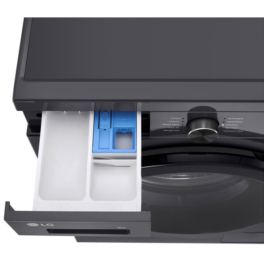 محصول پیشروی شما مجهز به برنامه Download Cycle برای دانلود برنامه شستوشوی جدید میباشد و شما میتوانید از طریق برنامه LG ThinQ روی گوشی هوشمند اندرویدی یا iOS خود برنامه شستوشوی جدید دانلود نمایید. لباسشویی مورد بررسی ما در این صفحه تکنولوژی بخارشوی (Steam) ندارد. شما می توانید برای شستوشوی بهداشتی لباس ها از برنامه Allergy Care استفاده کنید تا لباسها ضد عفونی شده و تا 99.9% ذرات آلرژیزا و باکتریها از الیاف پارچه حذف شوند. از برنامههای کاربردی این ماشین لباسشویی میتوان به برنامه شستوشوی دستی یا Hand/Wool اشاره کرد که لباسها را با فشاری در حد فشار دست شستوشو مینماید. برای شستوشوی سریع لباسهای روزمره بهتر است برنامه Quick 30 را فعال کرده تا در بازه زمانی 30 دقیقه شستوشو لباسهای شما انجام شود. این محصول دارای برنامه مخصوص تمیز کردن دیگ نیز میباشد که طبق گفته ال جی بهتر است آن را ماهی یکبار فعال نمایید تا جرمهای باقیمانده در روزنههای دیگ شستوشو از بین برود. درصورتیکه بوی نامطبوعی از دیگ به مشام رسید بهتر است به مدت 3 هفته، هفتهای یکبار برنامه Tub Clean را اجرا نمایید تا بوی نامطبوع داخل دیگ از بین برود. اگر برای مدتی فراموش کردید برنامه تمیز کردن دیگ را اجرا کنید، خود ماشین لباسشویی اخطاری را روی پنل نمایان میکند تا شما را از زمان فرا رسیدن تمیز کردن دیگ آگاه سازد.