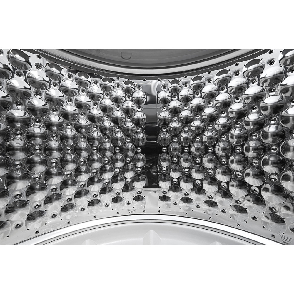 طبق گفته ال جی دیگ شستوشوی این ماشین لباسشویی از جنس نیمه فولاد ضدزنگ (Semi Stainless Steel Drum) میباشد و نیازی نیست نگران زنگ زدن یا رسوب آن باشید. شکل داخل دیگ شستوشو نیز از طرح برجسته Embossing برخوردار میباشد که با ضربه به لباسها به شستوشوی هر چه بهتر آنها کمک میکند. دیگ شستوشوی این محصول مجهز به 1 عدد فیلتر پرزگیر (Lint Filter) میباشد که پرز اضافه لباسها را جمع آوری میکند. ناگفته نماند که بنا بر گفته ال جی پیشنهاد میشود این فیلتر پرزگیر را بعد از 2 الی 3 برنامه شستوشو از دیگ خارج کرده و تمیز نمایید.