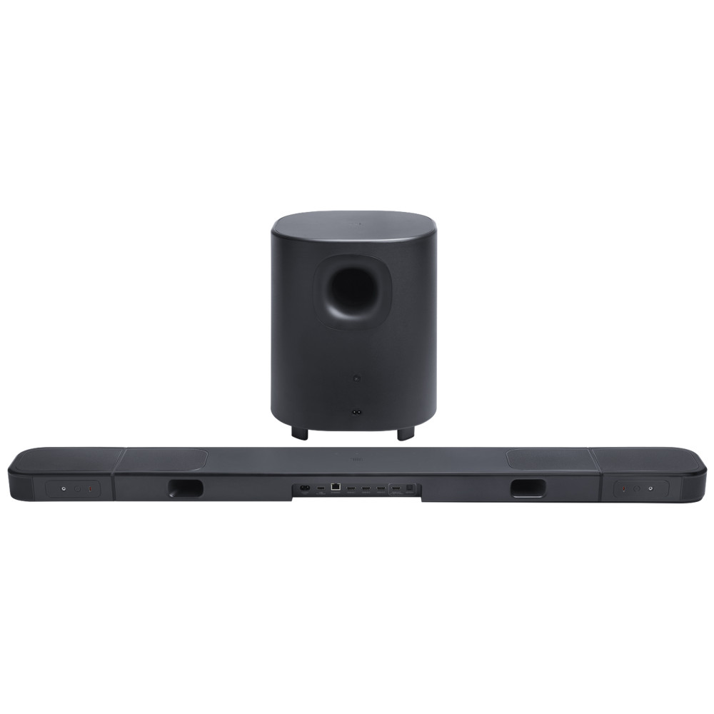 - پشتیبانی از برنامه SmartThings برای مدیریت و کنترل لوازم خانگی هوشمند از طریق موبایل هوشمند پشتیبانی از دستیار صوتی گوگل (Google Assistant) (ممکن است برای تمام مناطق جغرافیایی در دسترس نباشد) تکنولوژی Dolby Atmos برای ارائه صدای فراگیر واقعی و سینمایی قابلیت Night Listening برای شنیدن صدا تنها از طریق بلندگوهای Surround و قطع کردن صدای ساب ووفر و ساندبار و جلوگیری از ایجاد مزاحمت برای دیگران (فقط از طریق نرم افزار مخصوص موبایل) دارای 2 بلندگوی آپفایرینگ فول رنج (Up-Firing Full-Range) 70 میلیمتری در قسمت بالای ساندبار پشتیبانی از بیتریت (Bitrate) صدا بین 80kbps تا 320kbps قابلیت Multi-Room Playback برای پخش آهنگ روی چندین ساندبار در یک خانه از طریق موبایل و دستگاههای هوشمند با سیستم عامل اندروید و iOS دارای چراغ نشانگر ال ای دی (Status indicator) پشت ساب ووفر برای نمایش وضعیت اتصال ساب ووفر به ساندبار دارای 4 کاور پلاستیکی (Side Caps) برای پوشاندن لبههای ساندبار و بلندگوهای Surround آن قابلیت Networked Standby برای رفتن ساندبار به حالت استندبای (آماده به کار) در صورت عدم استفاده از Wi-Fi و بلوتوث تا 10 دقیقه قابلیت Moment برای دسترسی به لیست آهنگهای مورد علاقه و تنظیمات شخصیسازی شده مربوط به آن از طریق برنامه JBL One پشتیبانی از اینترنت اشیاء (IoT) برای مدیریت و کنترل ساندبار توسط دستگاههای هوشمند سازگار از طریق شبکه و اینترنت قابلیت HDMI-CEC برای کنترل ساندبار از طریق ریموت کنترل تلویزیون (در صورت اتصال ساندبار به تلویزیون از طریق کابل HDMI) دارای حفره خروجی هوا در قسمت پشت ساب ووفر برای تقویت صدای باس قابلیت Auto Standby برای رفتن ساندبار به حالت استندبای (آماده به کار) در صورت عدم استفاده از ساندبار تا 10 دقیقه پشتیبانی از AirPlay 2 محصولات شرکت اپل (ممکن است در برخی مناطق جغرافیایی در دسترس نباشد) دارای 1 پورت USB type A (تنها برای آپدیت ساندبار استفاده می شود.) دارای تاییدیه FSC (Forest Stewardship Council) برای استفاده بهینه از خمیر چوب در تولید جعبه ساندبار به منظور حفاظت از منابع طبیعی و کاهش اثرات محیط زیستی تکنولوژی Dolby Vision برای پخش محتوای HDR قابلیت Broadcasting (Audio Broadcasting) برای پخش صدا از بلندگوهای Surround به صورت Mono یا Stereo همزمان و یکسان با ساندبار پشتیبانی از فرکانس وایفای 2.4 از 2412MHz تا 2472MHz تکنولوژی Eclipsa Audio برای ارائه صدای فراگیر، سه بعدی و سینمایی بسته به نوع بلندگوهای ساندبار دارای 1 بلندگوی ساب ووفر (Subwoofer) 260 میلیمتری با توان 300 وات دارای 1 بلندگوی ریسترک (Racetrack) 44x90 میلیمتری با توان 40 وات و 1 بلندگوی آپفایرینگ فول رنج (Up-Firing Full-Range) 70 میلیمتری با توان 40 وات در هر دو بلندگوی Surround پشتیبانی از فرکانس صوتی از 33Hz تا 20KHz قابلیت Switch On برای خروج از حالت آماده به کار (Standby) ساندبار با فشردن دکمه Power روی ریموت کنترل یا هر دکمهای روی ساندبار دارای بلندگوهای توییتر (Wide Range Tweeter) با کانال صوتی اختصاصی برای ارائه صدای با کیفیت دارای کروم کست داخلی (Chromecast Built-in (Google Cast)) برای اتصال دستگاه های دیگر به ساندبار جهت پخش و استریم محتوای صوتی پشتیبانی از پروفایل بلوتوث A2DP 1.3 دارای بلندگوی ساب ووفر (Subwoofer) بی سیم (Wireless) قابلیت Audio Sync برای تنظیم و هماهنگ سازی صدا با تصویر تکنولوژی Dolby MAT برای انتقال و پخش صدای Dolby Atmos روی ساندبار از طریق HDMI با حداقل افت کیفیت دارای چراغ نشانگر ال ای دی (Status indicator) بالای ساندبار برای نمایش وضعیت دستگاه (وضعیت روشن شدن، وضعیت آپدیت، وضعیت ریست فکتوری، وضعیت Wi-Fi) تکنولوژی (Easy Sound Calibration) Calibration برای تنظیم و کالیبره کردن خودکار صدا با توجه به شرایط محیط پشتیبانی از برنامه JBL One مخصوص موبایلهای هوشمند اندروید و iOS برای کنترل ساندبار پشتیبانی از HDCP 2.3 روی هر 4 پورت HDMI قابلیت Equalizer (Equaliser) برای تنظیم و شخصیسازی فرکانسهای صدا تکنولوژی PureVoice 2.0 برای تقویت صدای دیالوگ ها با توجه به نویز و سر و صدای محیط تکنولوژی MultiBeam 3.0 برای تولید حجم صدای زیاد و در بر گرفتن تمام محیط و ارائه کیفیت صدای سینمایی و هیجان انگیز پشتیبانی از فرکانس بل