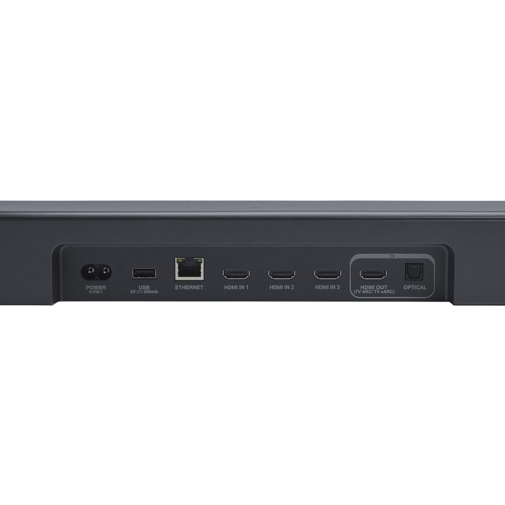 این ساندبار مجهز به قابلیت 4K HDR Pass-Through است و به کمک آن توانایی انتقال سیگنال ویدئویی 4K@120Hz و HDR با فرمت HDR10+ و Dolby Vision را به دستگاه دیگری مانند تلویزیون دارد و این فوقالعاده است. برای مثال اگر گیمر هستید و کنسول بازی نسل نهم (PS5، Xbox Series X، Xbox Series S و PS5 Pro) دارید و میخواهید در کنار تلویزیون گیمینگ خود از این ساندبار استفاده کنید، میتوانید کنسول بازی خود را به یکی از پورتهای ورودی HDMI 2.1 این ساندبار متصل کرده تا صدا از این طریق روی ساندبار پخش شود و سپس ساندبار را از طریق پورت خروجی HDMI 2.1 به تلویزیون متصل نمایید تا تصویر کنسول بازی به تلویزیون انتقال داده شده و روی تلویزیون پخش شود. همچنین در مثال دیگری فرض کنید که یک Blu-ray Player دارید و میخواهید آن را به تلویزیون متصل کرده و از طرف دیگر میخواهید تلویزیون را نیز به ساندبار متصل کنید. در این حالت میتوانید پورت خروجی HDMI دستگاه Blu-ray Player خود را به پورت ورودی HDMI ساندبار متصل کرده و سپس پورت خروجی HDMI ساندبار را به پورت ورودی HDMI تلویزیون متصل کنید؛ بهاینترتیب سیگنال ویدئویی پخش شده توسط Blu-ray Player از طریق ساندبار عبور میکند و روی تلویزیون پخش میشود اما سیگنال صدا از Blu-ray Player روی خود ساندبار پخش شده و هماهنگی صدا و تصویر نیز حفظ خواهد شد. البته این تنها روش اتصال کنسول بازی یا Blu-ray Player به ساندبار و تلویزیون نیست و شما میتوانید پورت خروجی HDMI کنسول بازی نسل نهم یا Blu-ray Player خود را به پورت ورودی HDMI تلویزیون متصل کرده و سپس پورت ورودی HDMI تلویزیون که از eARC پشتیبانی میکند را به پورت خروجی HDMI ساندبار متصل نمایید. ناگفته نماند که خود جی بی ال نیز این حالت را برای اتصال دستگاهها پیشنهاد داده است و ادعا کرده که در این حالت بهترین کیفیت صدای Dolby Atmos و DTS:X را تجربه خواهید کرد.