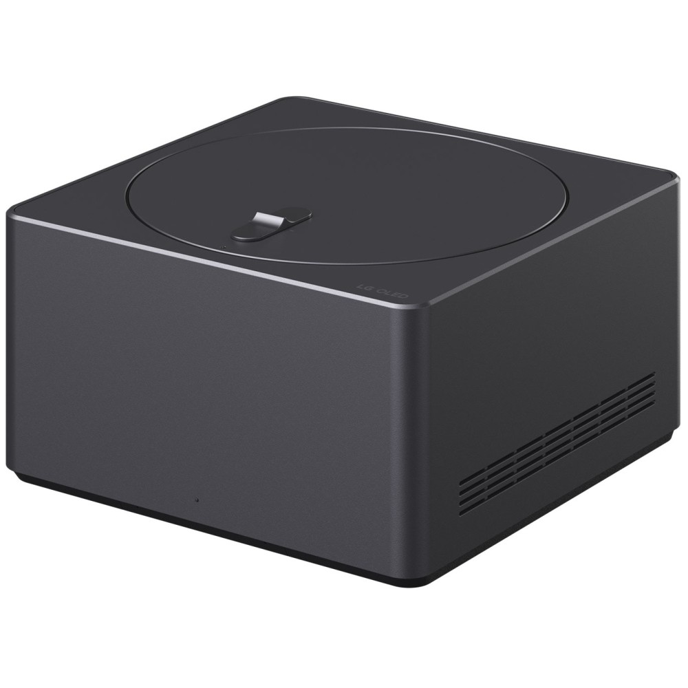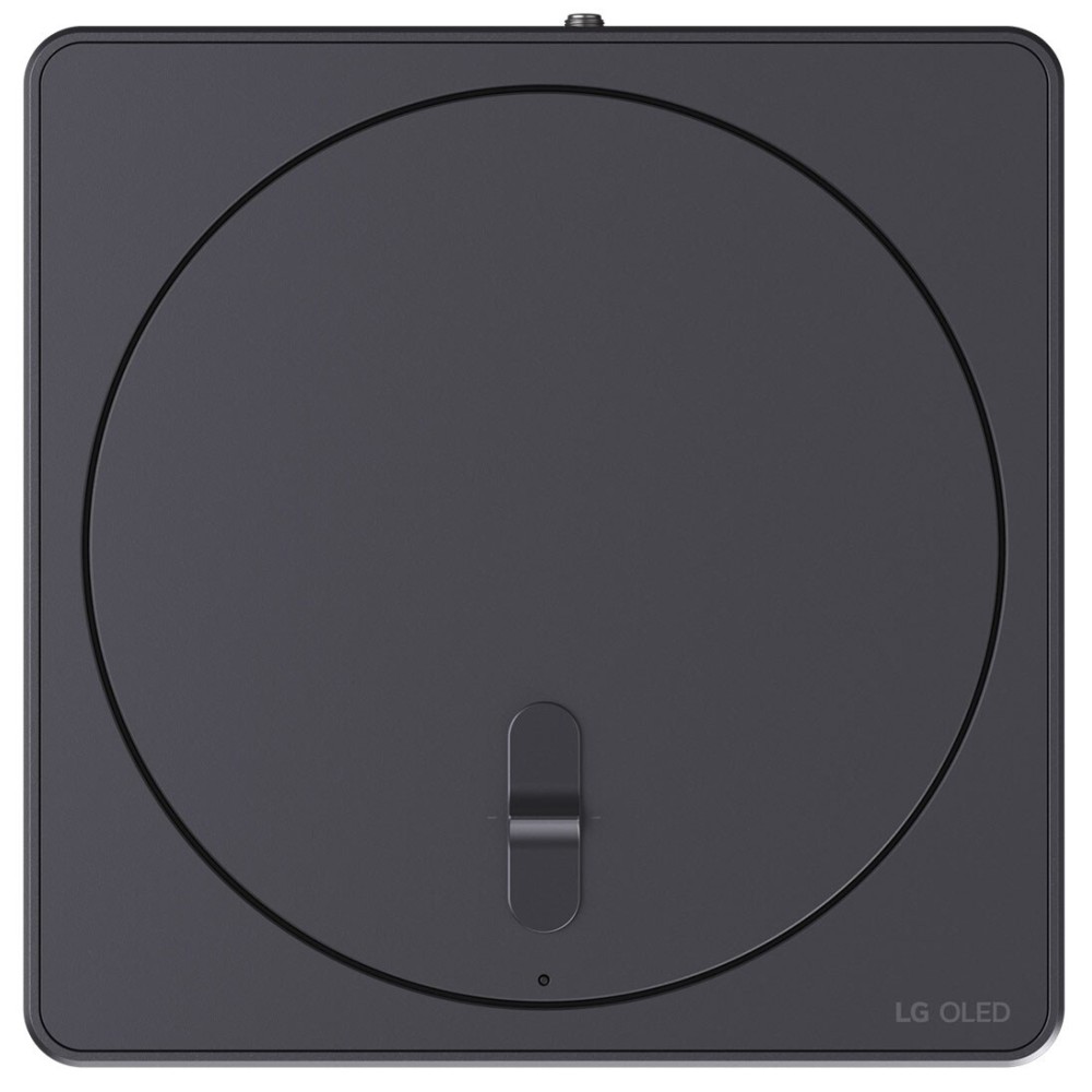 پورتهای ورودی و خروجی این تلویزیون روی دستگاهی به نام زیرو کانکت باکس (Zero Connect Box) قرار گرفتهاند. در واقع چیزی که این تلویزیون را از اکثر تلویزیونهای ال جی متمایز میکند، دستگاه Zero Connect Box آن میباشد. این دستگاه مشابه دستگاه One Connect Box سامسونگ است و همانطور که پیشتر نیز به آن اشاره کردیم، تمام پورتهای ورودی و خروجی تلویزیون (به جز کابل برق) روی آن تعبیه شده است. نکته جالب در مورد دستگاه Zero Connect این است که بهصورت بیسیم (از طریق Wi-Fi) به تلویزیون متصل میشود و میتواند تمامی دادهها و سیگنالهای صوتی و تصویری را از طریق باند 60 گیگاهرتز و با بالاترین کیفیت ممکن به تلویزیون منتقل نماید. ال جی برای اینکه خیال کاربران را از این جهت راحت کند، برای این تلویزیون موفق به دریافت تاییدیه ISO/IEC 29170-2 شده است و این به آن معنا است که دستگاه Zero Connect Box می تواند سیگنال و کیفیت تصویر 4K 144Hz را بدون افت کیفیت تصویر و بهصورت بیسیم به تلویزیون منتقل نماید و این فوقالعاده است. همانطور که اشاره شد شما باید تمام دستگاههای مورد نظر خود را به Zero Connect Box متصل کنید چرا که هیچ پورتی روی خود تلویزیون وجود ندارد؛ این موضوع باعث میشود هیچ کابل اضافهای اطراف تلویزیون دیده نشود و دیگر نیازی به مرتب کردن کابلها در پشت تلویزیون نداشته باشید. تلویزیون پیش روی شما به دستگاه زیرو کانکت باکس مدل WM25GA مجهز شده است. طبق بررسیهای ما این دستگاه ابعادی برابر با 23x23x12.17 سانتیمتر دارد و وزن آن نیز حدود 2.4 کیلوگرم است که نسبت به مدل سال گذشته آن از نظر ابعاد و وزن یکسان میباشد. این دستگاه به شکل یک جعبه مکعب مستطیل مشکی رنگ میباشد که طراحی مینیمال و زیبایی دارد. در قسمت بالای زیرو کانکت باکس یک صفحه گردان دایرهای شکل وجود دارد که به کمک آن میتوانید زاویه سیگنال ارسالی به تلویزیون (به سمت چپ و راست) را تنظیم کنید و آن را بهصورت ساعتگرد و پادساعتگرد بچرخانید. علاوهبر آن یک کلید نیز در این قسمت تعبیه شده است که با جلو و عقب بردن آن میتوانید زاویه سیگنال ارسالی به تلویزیون را به سمت بالا و پایین تنظیم نمایید. در این قسمت یک نشانگر LED نیز قرار دارد که قدرت و دقت سیگنال ارسالی به تلویزیون را نشان میدهد تا با توجه به آن دستگاه مذکور را در جای مناسبی قرار دهید. درصورتیکه این نشانگر LED به رنگ آبی باشد، یعنی سیگنال قوی و عالی است؛ رنگ سبز به معنای سیگنال خوب، زرد نشاندهنده سیگنال ضعیف و رنگ قرمز به معنای قطع شدن سیگنال میباشد. همینطور نشانگر LED دیگری نیز در جلوی زیرو کانکت باکس قرار دارد که خاموش و روشن بودن دستگاه را نشان میدهد. همانطور که پیشتر نیز به آن اشاره کردیم دستگاه Zero Connect Box این تلویزیون دارای میکروفون داخلی و دکمه مخصوص برای خاموش و روشن کردن این میکروفون نیز میباشد. ال جی در داخل جعبه این تلویزیون یک بست کمربندی قرار داده است که برای مدیریت کابلهای متصل به Zero Connect Box، کاربردی است و شما میتوانید کابلهای متصل به آن را مرتب و منظم نمایید.