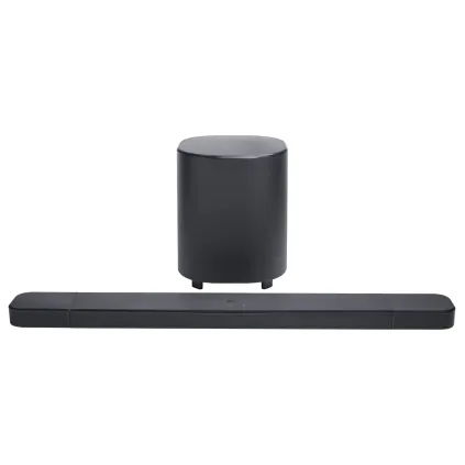 - دارای 1 بلندگوی ریسترک (Racetrack) 44x90 میلیمتری با توان 40 وات در هر دو بلندگوی Surround قابلیت Spotify Connect برای اتصال به سرویس پخش موسیقی آنلاین اسپاتیفای تکنولوژی Dolby Digital Plus برای بهبود کیفیت صدا پشتیبانی از پروفایل بلوتوث A2DP 1.3 قابلیت Night Listening برای شنیدن صدا تنها از طریق بلندگوهای Surround و قطع کردن صدای ساب ووفر و ساندبار و جلوگیری از ایجاد مزاحمت برای دیگران (فقط از طریق نرم افزار مخصوص موبایل) قابلیت Broadcasting (Audio Broadcasting) برای پخش صدا از بلندگوهای Surround به صورت Mono یا Stereo همزمان و یکسان با ساندبار قابلیت Moment برای دسترسی به لیست آهنگهای مورد علاقه و تنظیمات شخصیسازی شده مربوط به آن از طریق برنامه JBL One تکنولوژی Dolby MAT برای انتقال و پخش صدای Dolby Atmos روی ساندبار از طریق HDMI با حداقل افت کیفیت دارای چراغ نشانگر ال ای دی (Status indicator) پشت ساب ووفر برای نمایش وضعیت اتصال ساب ووفر به ساندبار دارای 4 کاور پلاستیکی (Side Caps) برای پوشاندن لبههای ساندبار و بلندگوهای Surround آن پشتیبانی از فرکانس بلوتوث از 2400MHz تا 2483.5MHz تکنولوژی Eclipsa Audio برای ارائه صدای فراگیر، سه بعدی و سینمایی بسته به نوع بلندگوهای ساندبار قابلیت HDMI-CEC برای کنترل ساندبار از طریق ریموت کنترل تلویزیون (در صورت اتصال ساندبار به تلویزیون از طریق کابل HDMI) انحراف فرکانس صدا یا Total Harmonic Distortion (THD) به میزان 1% قابلیت Switch On برای خروج از حالت آماده به کار (Standby) ساندبار با فشردن دکمه Power روی ریموت کنترل یا هر دکمهای روی ساندبار پشتیبانی از فرکانس صوتی از 35Hz تا 20KHz تکنولوژی Dolby Digital برای بهبود کیفیت صدا پشتیبانی از HDCP 2.3 روی هر 2 پورت HDMI دارای تاییدیه FSC (Forest Stewardship Council) برای استفاده بهینه از خمیر چوب در تولید جعبه ساندبار به منظور حفاظت از منابع طبیعی و کاهش اثرات محیط زیستی تکنولوژی Dolby Vision برای پخش محتوای HDR پشتیبانی از برنامه JBL One مخصوص موبایلهای هوشمند اندروید و iOS برای کنترل ساندبار پشتیبانی از دستیار صوتی گوگل (Google Assistant) (ممکن است برای تمام مناطق جغرافیایی در دسترس نباشد) پشتیبانی از پروفایل بلوتوث AVRCP 1.5 دارای 1 بلندگوی ساب ووفر (Subwoofer) 260 میلیمتری با توان 300 وات تکنولوژی MultiBeam 3.0 برای تولید حجم صدای زیاد و در بر گرفتن تمام محیط و ارائه کیفیت صدای سینمایی و هیجان انگیز پشتیبانی از فرکانس وایفای 5 از 5.15GHz تا 5.35GHz پشتیبانی از اینترنت اشیاء (IoT) برای مدیریت و کنترل ساندبار توسط دستگاههای هوشمند سازگار از طریق شبکه و اینترنت پشتیبانی از برنامه SmartThings برای مدیریت و کنترل لوازم خانگی هوشمند از طریق موبایل هوشمند پشتیبانی از برنامه Google Home برای مدیریت و کنترل ساندبار از طریق موبایل هوشمند دارای بلندگوی ساب ووفر (Subwoofer) بی سیم (Wireless) دارای حفره خروجی هوا در قسمت پشت ساب ووفر برای تقویت صدای باس تکنولوژی HDR10+ برای پخش محتوای HDR دارای چراغ نشانگر ال ای دی (Status indicator) بالای ساندبار برای نمایش وضعیت دستگاه (وضعیت روشن شدن، وضعیت آپدیت، وضعیت ریست فکتوری، وضعیت Wi-Fi) تکنولوژی (Easy Sound Calibration) Calibration برای تنظیم و کالیبره کردن خودکار صدا با توجه به شرایط محیط پشتیبانی از بیتریت (Bitrate) صدا بین 80kbps تا 320kbps دارای 1 پورت USB type A (تنها برای آپدیت ساندبار استفاده می شود.) دارای وای فای دو بانده (Dual-Band WiFi) با پشتیبانی از فرکانس 2.4 و 5 گیگاهرتز تکنولوژی PureVoice 2.0 برای تقویت صدای دیالوگ ها با توجه به نویز و سر و صدای محیط تکنولوژی SmartDetails برای ارائه و بهبود جزئیات صدا دقیقا مانند محتوای اورجینال و اصلی و همینطور اصلاح نوسانات صدا قابلیت Auto Wakeup برای روشن شدن ساندبار بهصورت اتوماتیک و همزمان با روشن کردن دستگاههای متصل به آن دارای بلندگوهای Surround با باتری لیتیوم یونی (Lithium-ion) 3283 میلیآمپر و 3.635 ولت پشتیبانی از AirPlay 2 محصولات شرکت اپل (ممکن است در برخی مناطق جغرافیایی در دسترس نباشد) قابلیت Equalizer (Equaliser) برای تنظیم و شخصیسازی فرکانسهای صدا دارای بلندگوهای توییتر (Wide Range Tweeter) با کانال صوتی اختصاصی برای ارائه صدای با کیفیت