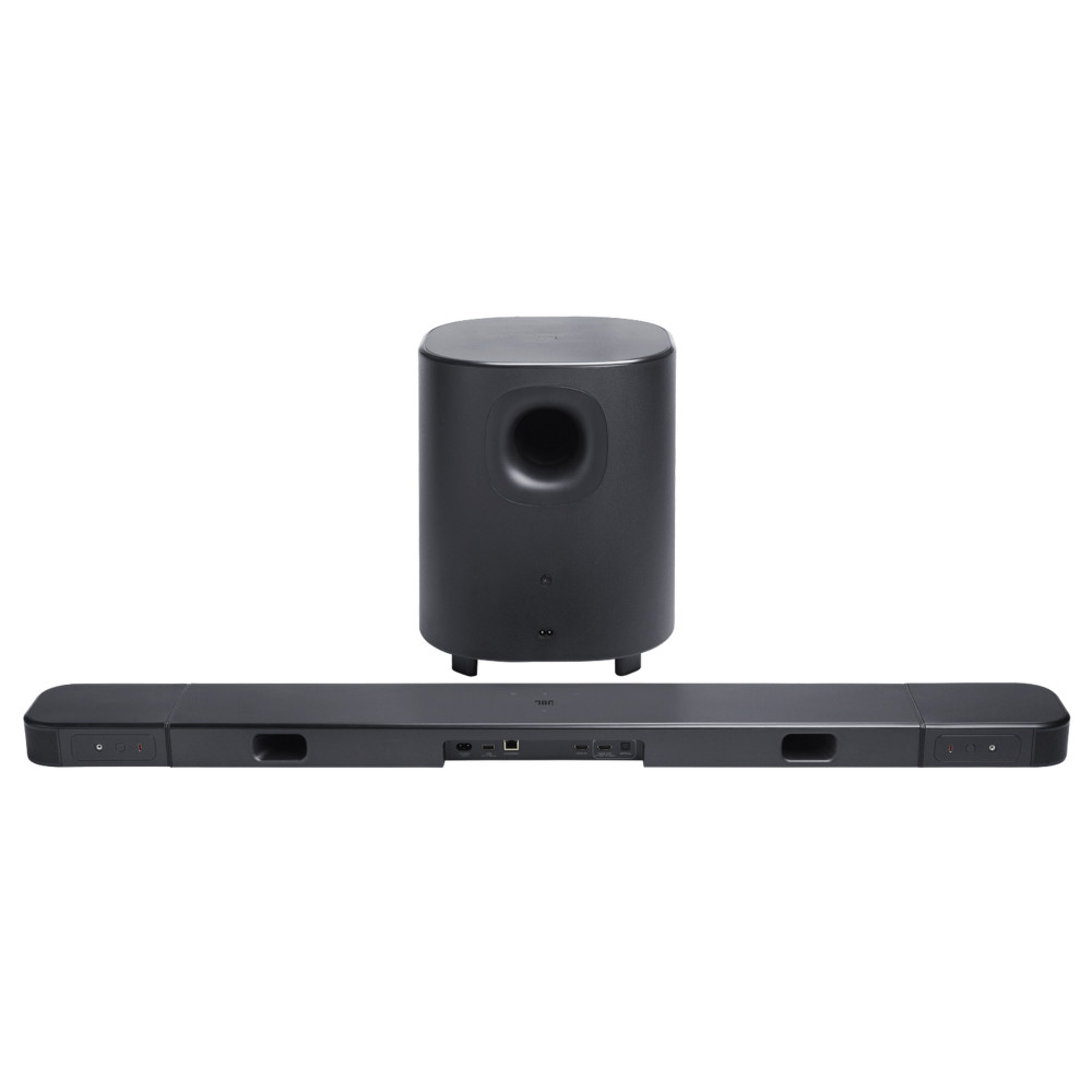 این ساندبار به مجموعهای از تکنولوژیهای صوتی از جمله Dolby Digital و Dolby Digital Plus مجهز شده است که کیفیت صدای بهتری را در اختیار شما قرار میدهند. همچنین این ساندبار دارای تکنولوژی Dolby Atmos میباشد؛ البته همانطور که میدانید این ساندبار بلندگوهای Up-Firing ندارد و فاقد تکنولوژی True Dolby Atmos میباشد اما با توجه به بلندگوهایی که دارد صدای سهبعدی و فراگیری را در اختیار شما قرار میدهد. این محصول دارای تکنولوژی Dolby MAT نیز میباشد و به شما این امکان را میدهد تا درصورتیکه ساندبار را از طریق پورت HDMI و کانال برگشتی صدا (eARC) به تلویزیون متصل نمایید، صدای Dolby Atmos مجازی را با کیفیت عالی بشنوید. طبق بررسیهایی که ما انجام دادهایم، این ساندبار در ابتدای عرضه به بازار و بهصورت پیشفرض از تکنولوژی DTS و زیرمجموعههای آن برخوردار نیست اما به گفته جی بی ال این تکنولوژی با آپدیتهای بعدی به این ساندبار اضافه خواهد شد؛ در نتیجه اگر این ساندبار را آپدیت کنید، تکنولوژی صوتیهای DTS، DTS:X، DTS-HD Master Audio و همچنین DTS 96/24 و DTS ES نیز به آن اضافه خواهند شد و صدای فراگیر سینمایی و خارقالعادهای را به شما ارائه خواهند داد.