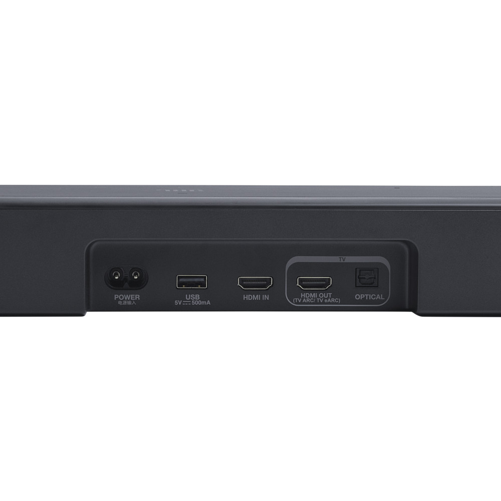 محصول پیش روی شما مجهز به یک پورت USB از نوع USB-A میباشد؛ نکتهای که لازم است در مورد پورت USB این ساندبار ذکر کنیم، این است که به گفته شرکت جی بی ال، این پورت تنها در برخی مناطق از قابلیت پخش آهنگ و فایل صوتی برخوردار است و متاسفانه در دیگر مناطق جغرافیایی چنین قابلیتی ندارد! این موضوع مربوط به سیاستهای شرکت JBL میباشد و کاری نیز نمیتوان کرد. یکی از کاربردهای این پورت، آپدیت ساندبار میباشد؛ شما میتوانید فایل آپدیت را از طریق کامپیوتر خود دانلود کرده و آن را روی حافظه فلش منتقل کنید و سپس حافظه فلش را به این پورت USB متصل کرده و ساندبار را بهروزرسانی نمایید.