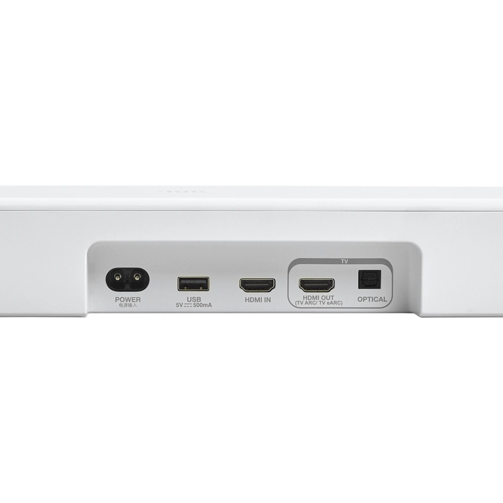 محصول پیش روی شما مجهز به یک پورت USB از نوع USB-A میباشد؛ نکتهای که لازم است در مورد پورت USB این ساندبار ذکر کنیم آن است که طبق گفته شرکت JBL، این پورت تنها در برخی مناطق از قابلیت پخش آهنگ و فایل صوتی برخوردار است و متاسفانه در دیگر مناطق جغرافیایی چنین قابلیتی ندارد! این موضوع مربوط به سیاستهای شرکت JBL میباشد و کاری نیز نمیتوان کرد. یکی از کاربردهای این پورت، آپدیت ساندبار میباشد؛ شما میتوانید فایل آپدیت را از طریق کامپیوتر خود دانلود کرده و آن را روی حافظه فلش منتقل کنید و سپس حافظه فلش را به این پورت USB متصل کرده و ساندبار را بهروزرسانی نمایید.