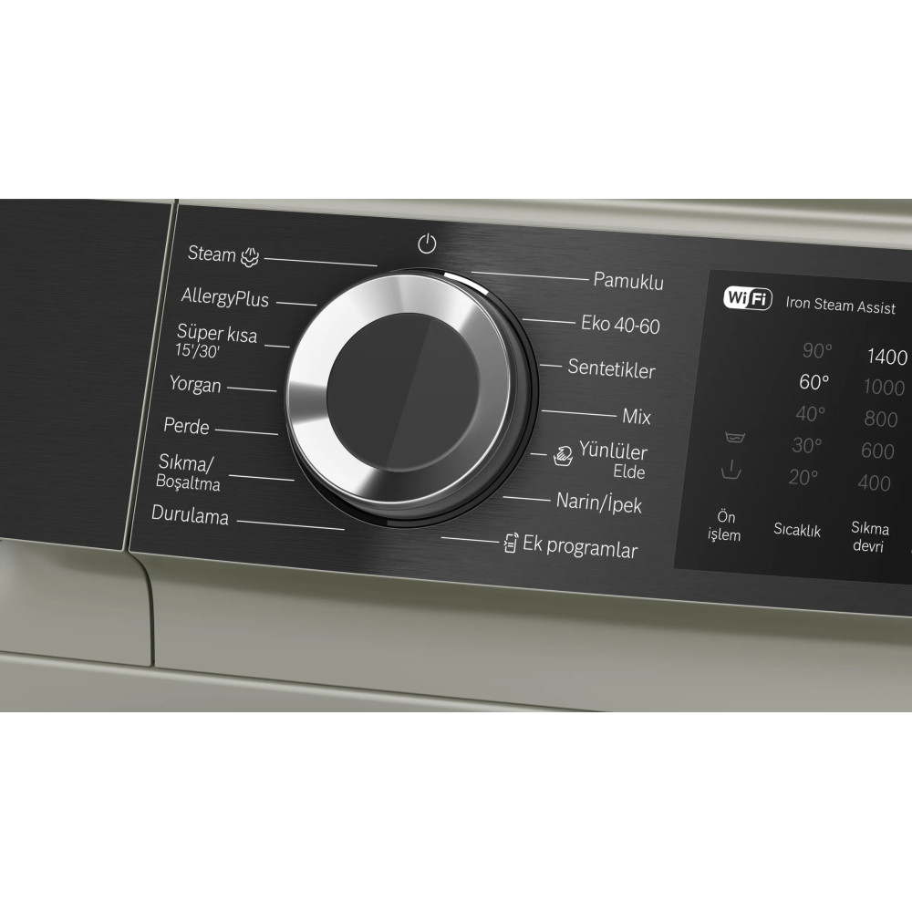 ماشین لباسشویی فوق مجهز به برنامه App برای دانلود برنامه شستوشوی جدید است و شما میتوانید با نصب برنامه Home Connect روی گوشی هوشمند اندرویدی یا iOS خود، بیش از 20 برنامه شستوشوی جدید دانلود نمایید. این محصول مجهز به تکنولوژی بخارشوی (Steam) است. شما میتوانید برای شستوشوی بهداشتی و بخارشوی کردن لباسهای خود از برنامه Steam استفاده نمایید تا لباسهای شما ضدعفونی شده و ذرات آلرژیزا و باکتریهای موجود در الیاف آنها از بین بروند. اگر بخواهید لباسهای شما در کوتاهترین زمان ممکن شسته شوند، برنامه 'Super 15'/30 را اجرا نمایید تا انواع لباسها در بازه زمانی کوتاه شسته شوند. درصورتیکه بخواهید لباسهای شما تنها آبکشی شوند، باید برنامه Rinse را اجرا نمایید. ماشین لباسشویی مذکور دارای برنامه Spin/Drain میباشد و شما میتوانید لباسهای خیس را داخل دیگ شستوشو انداخته و این برنامه را اجرا کنید تا آب اضافی آنها گرفته شده و آب از دیگ شستوشو تخلیه شود. برای شستوشوی بهداشتی انواع لباسها و از بین بردن باکتریها و ذرات آلرژیزا از الیاف پارچه، شما باید برنامه AllergyPlus را اجرا نمایید. برای شستوشوی انواع پرده برنامه Curtains در این محصول وجود دارد و شما میتوانید آن را اجرا کنید. در تصاویر قیدشده در گالری تصویر این صفحه، شاهد برنامه Synthetics هستیم که به زبان ترکی نوشته شده است اما در محصول واقعی موجود در بازار، این برنامه شستوشو وجود ندارد و به جای آن برنامه Easy Care به زبان انگلیسی درج شده است. برای شستوشوی لباسهایی با الیاف مصنوعی مانند پلیاستر، آکلیریک و مشابه این موارد پیشنهاد میکنیم برنامه Easy Care را اجرا نمایید تا شستوشوی آنها به بهترین شکل انجام شود. ما در این قسمت مهمترین برنامههای شستوشوی این ماشین لباسشویی را خدمت شما توضیح دادیم، برای مشاهده تمام برنامههای شستوشو و کاربرد هرکدام از آنها، بهتر است به جدول مشخصات فنی محصول رجوع کنید.