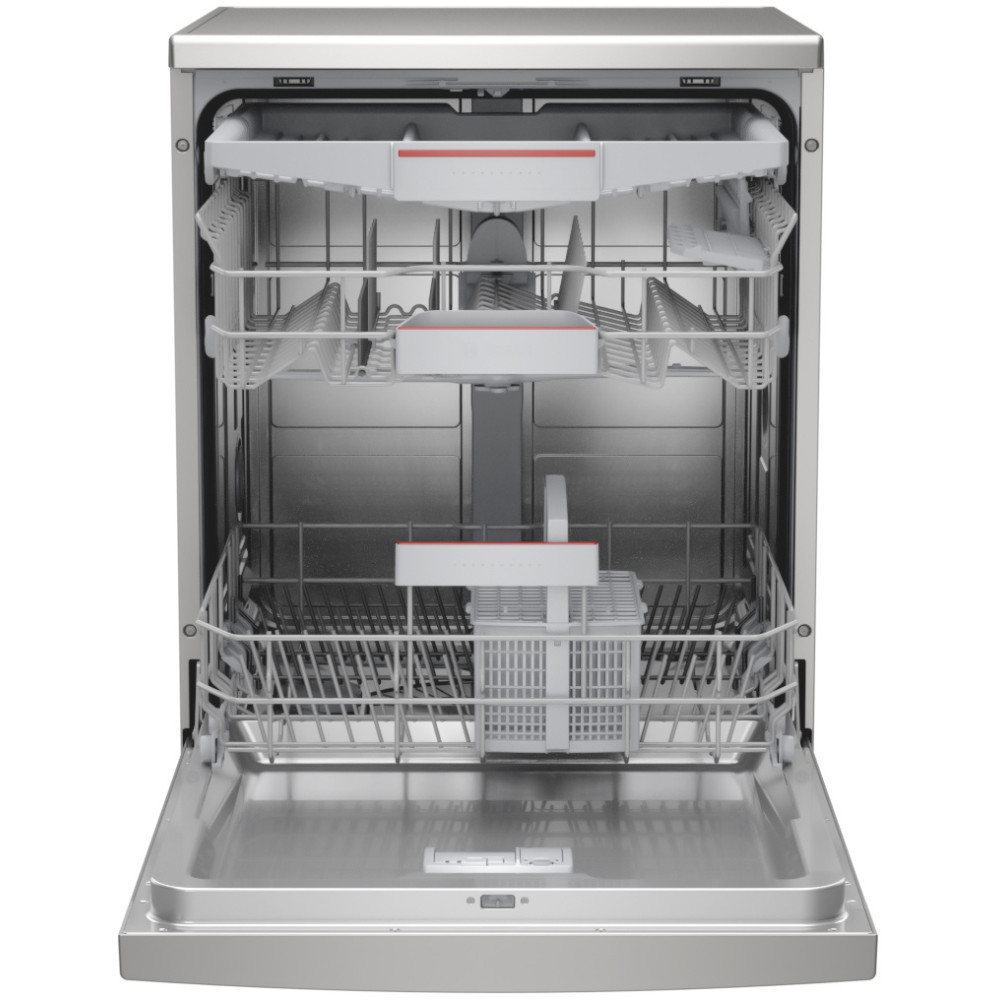 - مجهز به قابلیت Delay Start برای شروع شستشو با تاخیر دارای سیستم تمیز کردن خودکار با فیلتر 3 مرحله ای (Self-cleaning Filter System) دارای قیف (Funnel) برای پر کردن مخزن نمک ماشین ظرفشویی قابلیت Remote Monitoring برای مشاهده برنامه شستوشوی در حال اجرا، زمان باقیمانده برنامه شستوشو و... از طریق برنامه Home Connect دارای نشانگر پر کردن مجدد جلادهنده (Rinse Aid Refill Indicator) پشتیبانی از برنامه Home Connect برای کنترل و مدیریت ماشین ظرفشویی از طریق موبایل قابلیت Childproof Lock (Button Lock) برای قفل کردن پنل کنترلی ماشین ظرفشویی دارای کابل برق به طول 175 سانتیمتر دارای شاخکهای تاشو (Folding Prongs) دارای طبقه یا سبد Vario Drawer یا Cutlery Drawer برای شستوشوی ظروف کوچک آشپزخانه دارای Wi-Fi برای اتصال به شبکه و اینترنت قابلیت برداشتن قسمت بالایی ماشین ظرفشویی (Removable Top (Removable Top Cover)) تکنولوژی Detergent Automation برای صرفه جویی و تنظیم خودکار میزان استفاده از مواد شوینده تکنولوژی Detergent Detection برای صرفه جویی و تنظیم خودکار میزان استفاده از مواد شوینده سیستم Anti-Slip Protection برای جلوگیری از سر خوردن ظروف در سبد طبقه دوم هنگام شستوشو سیستم Water Softening (Water Softner) برای تنظیم میزان سختی آب دارای سنسور تشخیص میزان کثیفی آب و ظروف (AquaSensor) دارای طبقات یا سبد های قابل تنظیم با سیستم VarioFlex قابلیت Control برای کنترل ماشین ظرفشویی از طریق برنامه Home Connect دارای چرخهای کم اصطکاک در طبقه یا سبد پایینی (Low Friction Wheels) دارای موتور BLDC بدون برس با طول عمر بالا، صرفه جویی در مصرف انرژی و کاهش سطح سر و صدا دارای موتور EcoSilence Drive با صدای کم، راندمان و طول عمر بالا و صرفه جویی در مصرف انرژی تکنولوژی Precise Glass Protection برای تنظیم خودکار سختی آب و جلوگیری از آسیب رسیدن به ظروف شیشه ای و ظریف سیستم RackMatic 3-stage برای تنظیم ارتفاع طبقه یا سبد در 3 سطح دارای لوله ورودی آب به طول 150 سانتی متر دارای 2 بازوی آبپاش چرخشی (Upper Spray Arm و Lower Spray Arm) سیستم AquaStop برای جلوگیری از نشت آب با گارانتی مادام العمر توسط بوش دارای لوله تخلیه آب به طول 190 سانتی متر محفظه داخلی ماشین ظرفشویی از جنس فولاد ضد زنگ (Stainless Steel) دارای Rack Stopper برای جلوگیری از خارج شدن سبد پایینی از ریل خود حتی در صورت اعمال فشار دارای قفسههای تاشو (Etagere) تمیزکاری کامل برای ظروف بسیار کثیف در طبقه یا سبد بالایی (Extra Clean Zone) سیستم DosageAssist برای ارائه شستشوی بهتر با پخش یکنواخت مواد شوینده در داخل ماشین ظرفشویی پشتیبانی از اینترنت اشیا (IoT) برای مدیریت و کنترل ماشین ظرفشویی از راه دور قابلیت Easy Start (Program Assistant) برای پیشنهاد برنامه شستوشوی مناسب با نوع ظروف شما از طریق سوالات مطرح شده از طریق برنامه Home Connect دارای نشانگر پر کردن مجدد نمک (Special Salt Refill Indicator) دارای مبدل حرارتی (Heat Exchanger) برای خشک کردن ظروف دارای سبد کوچک Vario Basket یا Cutlery Basket مخصوص کارد، قاشق و چنگال دارای 1 نوار نویزگیر (Noise Strip) با قابلیت نصب برای کاهش انتقال لرزش و صدای ماشین ظرفشویی سیستم سهگانه جلوگیری از نشت آب (Triple Water Protection) دارای طبقه یا سبد بالا VarioDrawer یا Cutlery Drawer از نوع 3rd Rack 1.0 طراحی کاملا مینیمال برای هماهنگی هر چه بهتر با آشپزخانه شما