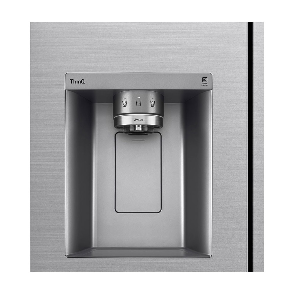 این یخچال فریزر دارای تکنولوژی UVnano میباشد که وظیفه دارد تا دهانه آبریز و آبی که از آن عبور میکند را بهصورت خودکار ضدعفونی کند. این تکنولوژی با استفاده از نور فرابنفش یا همان UV عمل میکند و به گفته ال جی توانایی نابودی باکتریها تا 99.99% را دارد. محصول مورد بررسی ما در این صفحه دارای قابلیت Self Care (عنایة ذاتیة) میباشد و برای شما این امکان را فراهم میکند تا بهصورت دستی تکنولوژی UVnano را فعال کنید. برای استفاده از این قابلیت لازم است دکمه Freezer (مجمدة) را روی پنل کنترلی داخل یخچال را فشرده و برای 3 ثانیه نگه دارید. لازم به ذکر است که این محصول بهصورت خودکار هر یک ساعت به مدت 10 دقیقه تکنولوژی UVnano را فعال میکند تا دهانه آبریز همواره تمیز و بهداشتی باشد.