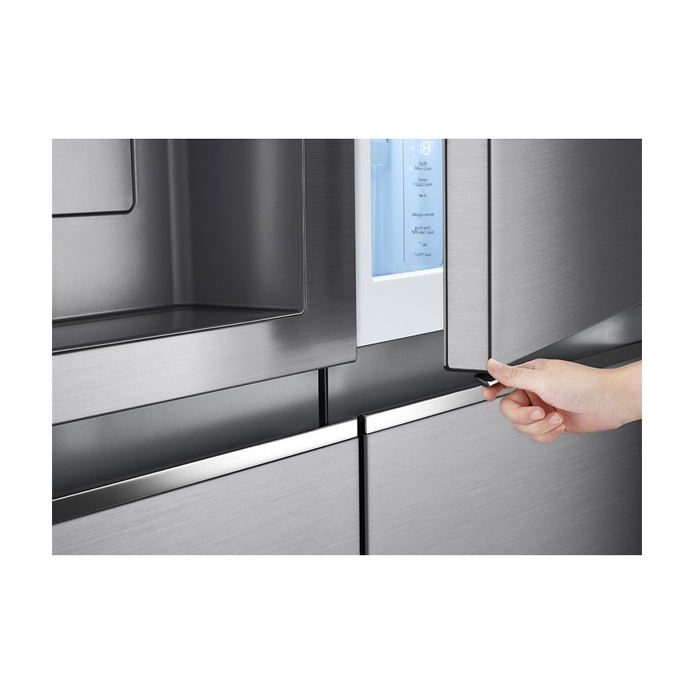 همانطور که پیش از این نیز اشاره کردیم، یخچال فریزر پیش روی شما از قابلیت درب در درب برخوردار است و شما این امکان را دارید که به وسیله اهرم کوچکی که در قسمت دستگیره درب بخش یخچال قرار دارد، بهراحتی و بدون نیاز به باز کردن درب اصلی یخچال، به بخشی از محتویات داخل بخش یخچال دسترسی داشته باشید. قابلیت مذکور باعث میشود تا دسترسی راحتی به مواد غذایی پراستفاده داشته باشید و در عین حال از اتلاف انرژی و هوای سرد داخل یخچال، جلوگیری نمایید. ازآنجاکه این یخچال فریزر دارای 2 درب اصلی و یک Door-in-Door است؛ برخی فروشندگان در بازار این یخچال فریزر را بهاصطلاح بهعنوان یخچال فریزر سه درب ال جی GCJ-287TVL نیز معرفی میکنند. متاسفانه این یخچال فریزر قابلیت InstaView ندارد.