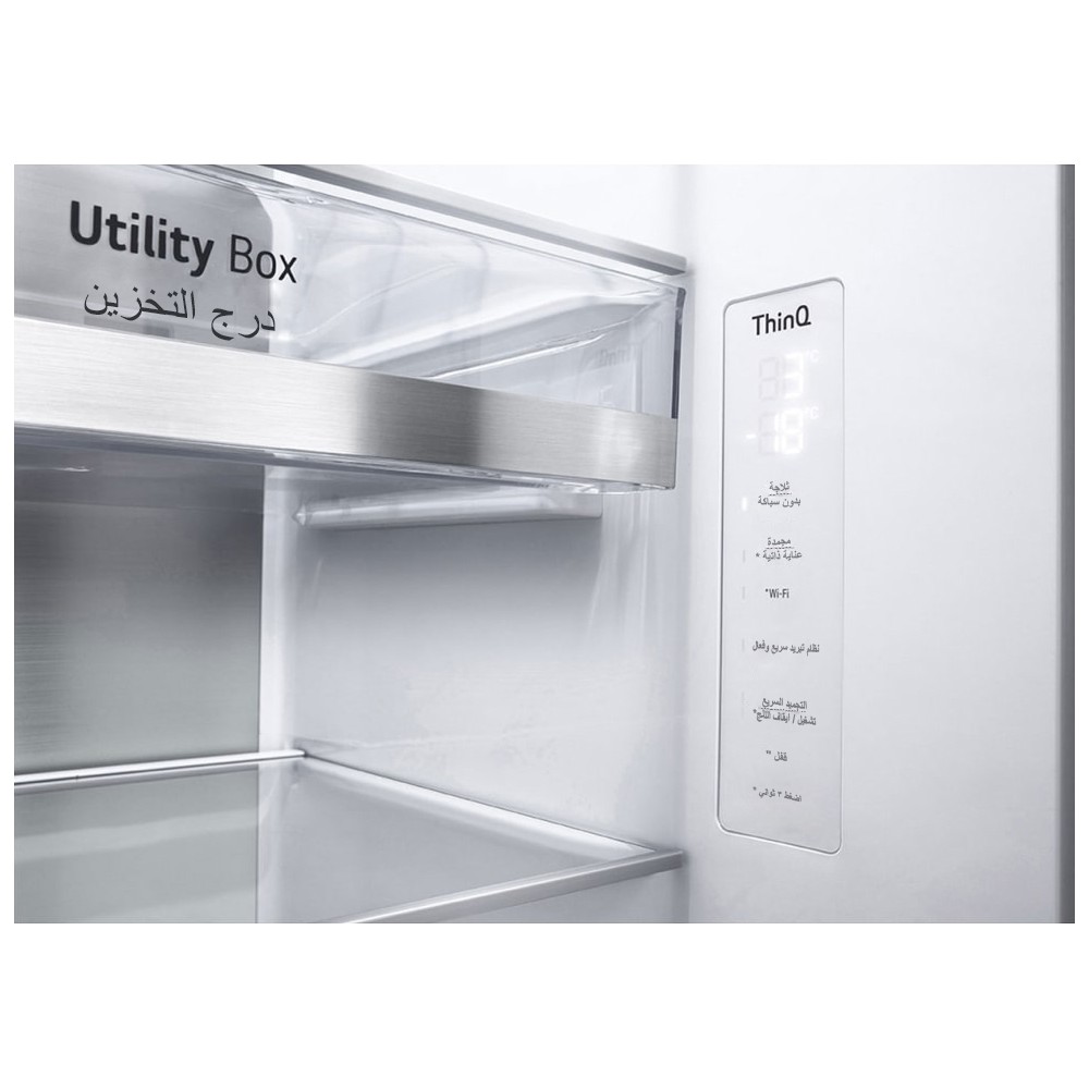 - تکنولوژی +Hygiene FRESH با فیلتر 5 لایه برای از بین بردن باکتری ها تا 99.999% و بوی بد مواد غذایی و تصفیه هوای داخلی یخچال مخزن آب با حداکثر ظرفیت 4 لیتر تضمین عملکرد و کارایی موتور Smart Inverter Compressor تا 10 سال توسط ال جی تکنولوژی UVnano برای از بین بردن باکتریهای دهانه آبریز تا 99.99% با استفاده از نور فرابنفش پشتیبانی از اسپیکر هوشمند Amazon Echo برای مدیریت و کنترل یخچال (ممکن است برای تمام مناطق جغرافیایی در دسترس نباشد) بوگیر یا Deodorizer جهت جلوگیری از پخش بوی مواد غذایی در یخچال سیستم تهویه هوای Multi Air Flow برای توزیع هوای سرد یکنواخت در کل یخچال و فریزر از طریق دریچه های هوای متعدد قابلیت Child Lock (Lock) برای قفل کردن پنل کنترلی یخچال دستگیره مخفی (Pocket Handle) دارای موتور BLDC بدون برس با طول عمر بالا، صرفه جویی در مصرف انرژی و کاهش سطح سر و صدا سیستم یخ ریز با قابلیت تولید یخ حبه ای (مکعبی) و یخ خرد محل قرارگیری پنل کنترلی در داخل یخچال سیستم عیب یاب هوشمند (Smart Diagnosis) برای عیب یابی راحت تر طراحی صاف و شیک (UltraSleek Door) جهت هماهنگی بیشتر با کابینت و دکوراسیون آشپزخانه طراحی فلزی لبه طبقات و کشوها (Metallic Decoration) برای حفظ سرمای یخچال فریزر و زیبایی بیشتر کشوی Utility Box مناسب نگهداری از لبنیات و مواد غذایی عایق گاز سیکلوپنتان (Cyclopentane) تکنولوژی Bio Shield (Gasket) و لاستیک ضد باکتری دور درب جهت افزایش عمر یخچال قفسه فلزی Bottle Rack مخصوص نگهداری بطری ها در داخل یخچال دارای فیلتر هوا و بوگیر (Air Filter) جهت از بین بردن بوی مواد غذایی در یخچال قابلیت درب در درب (Door-in-Door) برای دسترسی به برخی مواد غذایی بدون باز کردن درب اصلی یخچال و جلوگیری از هدر رفت سرما طبقات یخچال و فریزر از جنس شیشه حرارت دیده قابلیت Express Freeze برای انجماد سریع در فریزر و یخ ساز قابلیت Express Cool برای سرمایش سریع در یخچال پشتیبانی از اسپیکر هوشمند Google Home برای مدیریت و کنترل یخچال (ممکن است برای تمام مناطق جغرافیایی در دسترس نباشد) قابلیت Ice On/Off برای خاموش و روشن کردن یخ ساز اتوماتیک یخچال فریزر مناسب برای مناطق جغرافیایی با آب و هوای گرمسیری (Tropical) یا T کشوی Fresh Zone مخصوص نگهداری میوه و سبزیجات پشتیبانی از اینترنت اشیاء (IoT) برای مدیریت و کنترل یخچال فریزر توسط دستگاههای هوشمند سازگار از طریق شبکه و اینترنت کشوی Fresh Balancer مخصوص نگهداری میوه و سبزیجات پشتیبانی از برنامه LG ThinQ برای کنترل و مدیریت یخچال فریزر از طریق موبایل (مخصوص موبایل های اندرویدی و iOS) قابلیت Fresh Balancer برای تنظیم رطوبت در کشوی مخصوص سبزی و میوه جهت افزایش ماندگاری آنها تکنولوژی LINEAR Cooling (LinearCooling) جهت حفظ و کنترل دقیق دما در داخل یخچال و فریزر با نوسان 0.5 درجه سانتیگراد قابلیت Door Alarm برای اطلاع دادن در صورت باز ماندن درب یخچال قابلیت Self Care برای فعال کردن دستی نور UV و پاکسازی دهانه آبریز دارای تاییدیه UVnano از TUV Rheinland برای از بین بردن باکتریهای دهانه آبریز تا 99.99% با استفاده از نور فرابنفش سیستم یخ ساز اتوماتیک با طراحی باریک برای اشغال فضای کمتر (SpacePlus Ice System) سیستم بدون برفک (No Frost) دارای صفحه فلزی مخصوص (Metal Fresh) در قسمت داخلی یخچال برای ثابت نگهداشتن و حفظ سرما تکنولوژی +Door Cooling برای سرمایش سریع تر مواد غذایی موجود در درب یخچال و فریزر استفاده از گاز R600a برای ایجاد سرمایش و سازگاری با محیط زیست