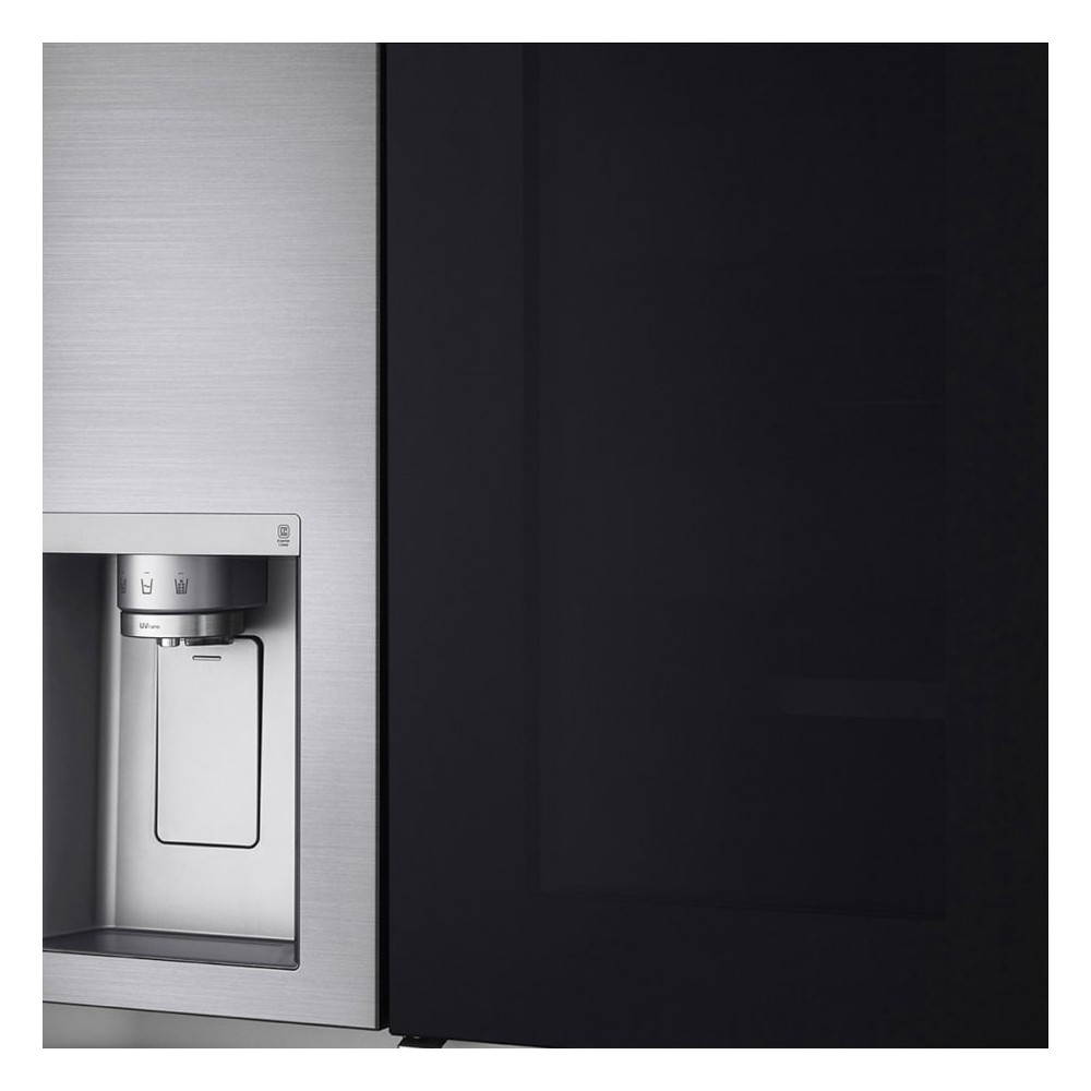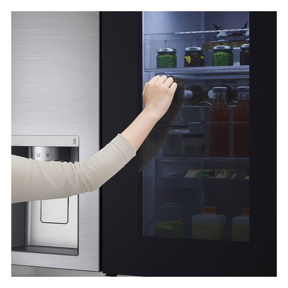 لازم است بدانید که چون این یخچال 2 درب اصلی و یک قابلیت دور این دور (Door-in-Door) دارد، ممکن است در بازار آن را بهعنوان یخچال فریزر 3 درب ال جی GR-X267MSHS نیز معرفی کنند. همانطور که پیشتر عرض کردیم، این یخچال فریزر قابلیت اینستاویو (InstaView) دارد؛ قابلیت مذکور در واقع یک شیشه شفاف است که با 2 بار ضربه زدن روی آن، لامپهای داخل یخچال روشن میشوند و شما میتوانید بدون نیاز به باز کردن درب یخچال فریزر، بخشی از محتویات داخل یخچال را مشاهده نمایید. در حالت عادی اینستاویو کاملا مشکی است و تنها با دوبار ضربه زدن روی آن (Knock Knock) میتوانید داخل یخچال را مشاهده نمایید. از طرف دیگر ظاهر مشکی این بخش از یخچال فریزر باعث شده تا بسیار شیک و جذاب به نظر برسد و زیبایی دکور آشپزخانه شما را دوچندان کند.