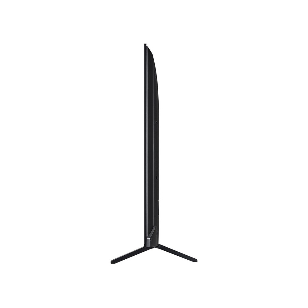 این تلویزیون از حاشیهها و قاب اطراف صفحهنمایش نسبتا باریکی برخوردار است؛ این موضوع باعث میشود تا شما هنگام تماشای تلویزیون، تمرکز بیشتری روی محتوای در حال پخش داشته باشید و از تماشای آن لذت بیشتری ببرید. طبق بررسیهای ما، قاب اطراف صفحهنمایش این تلویزیون از جنس فلز میباشد و این قاب تا پشت تلویزیون بهصورت یکپارچه ادامه پیدا کرده است. پایه رومیزی این تلویزیون همانند مدل مشابه سال گذشته آن بهصورت دو طرفه و دوشاخه و به رنگ مشکی طراحی شده است که به کمک پیچهایی که در جعبه تلویزیون قرار دارند، در قسمت میانی تلویزیون نصب میشوند. لازم است خدمت شما عرض کنیم که این پایه تنها در یک حالت قابل نصب میباشد. درصورتیکه پایه رومیزی این تلویزیون را به آن متصل کنید ارتفاع تلویزیون از سطح میز حدودا 6.7 سانتیمتر خواهد بود؛ بنابراین شما میتوانید بهراحتی اکثر ساندبارهای موجود در بازار را جلوی تلویزیون روی میز قرار دهید. متاسفانه در حال حاضر ما از جنس پایه این تلویزیون اطلاعات دقیق و کاملی نداریم؛ در آینده پس از تست این موضوع، این بخش را بهروزرسانی خواهیم کرد.