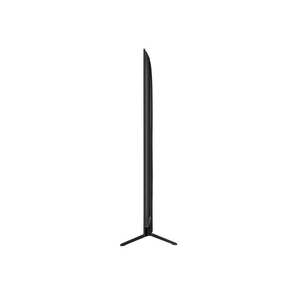 حاشیهها و قاب اطراف صفحهنمایش این تلویزیون نسبتا باریک طراحی شدهاند و این موضوع باعث میشود تا تمرکز بیشتری روی محتوای در حال پخش داشته باشید و لذت بیشتری از تماشای تلویزیون ببرید. طبق بررسیهای ما، قاب اطراف صفحهنمایش این تلویزیون از جنس فلز است و این قاب تا پشت تلویزیون بهصورت یکپارچه ادامه یافته است. پایه رومیزی این تلویزیون از نوع دو طرف و دوشاخه است و به کمک پیچهای موجود در جعبه، بهراحتی به دو طرف تلویزیون نصب میشوند. طبق بررسیهایی که ما انجام دادیم، پایههای رومیزی این تلویزیون از جنس فلز اما بسیار سبک هستند. متاسفانه طراحی این پایهها به این صورت است که تنها در یک حالت به تلویزیون نصب میشوند. اگر این تلویزیون را روی پایه رومیزی آن قرار داده و نصب کنید، ارتفاع تلویزیون از سطح میز حدود 9.9 سانتیمتر خواهد بود و شما میتوانید تقریبا تمام ساندبارهای موجود در بازار را جلو یا زیر تلویزیون قرار داده و نصب کنید، بدون اینکه ساندبار جلوی دید شما از تلویزیون را بگیرد.