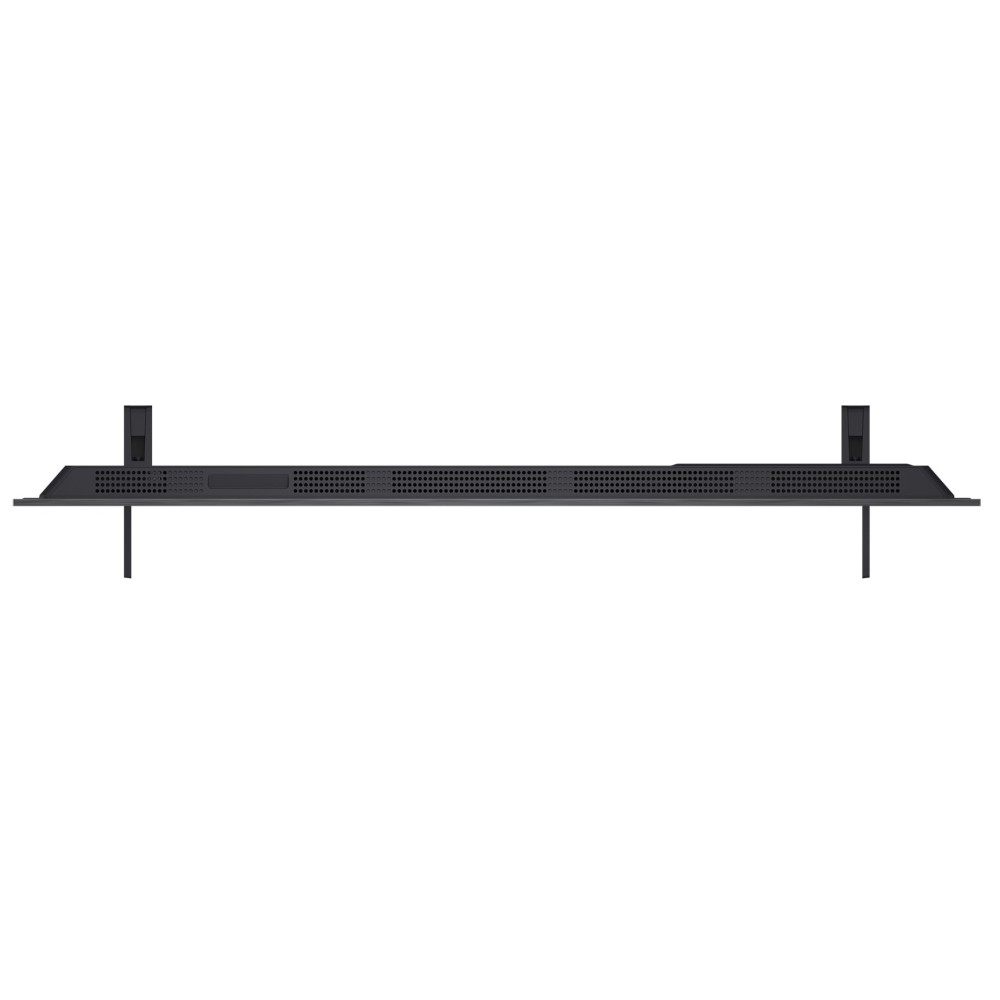 ال جی درست مانند مدل سال گذشته این محصول، از زبان طراحی Ultra Slim در آن استفاده نموده است و ما همچنان شاهد تلویزیونی با طراحی کاملا مینیمال و کم ضخامتی روبهرو هستیم که حاشیهها و قاب اطراف صفحهنمایش آن بسیار باریک است؛ بنابراین شما میتوانید روی محتوای در حال پخش تمرکز کنید و از تماشای تلویزیون لذت ببرید. قاب اطراف صفحهنمایش این تلویزیون از جنس آلومینیوم میباشد و همانطور که اشاره کردیم، ضخامت بسیار کمی دارد. ضخامت کلی این تلویزیون مانند مدل سال گذشته آن در قطورترین قسمت حدود 4.11 سانتیمتر است و از این نظر با سال گذشته تفاوتی ندارد. قسمت بالای این تلویزیون بسیار باریک طراحی شده است و حتی از اکثر موبایلهای موجود در بازار نیز باریکتر است اما قسمت پایینتر آن که محل قرار گرفتن پورتهای ورودی و خروجی و همچنین مادربورد آن است، ضخامت کمی بیشتری دارد. این تلویزیون برخلاف سایزهای بزرگتر خود دارای دو عدد پایه رومیزی به شکل خطی است که به کمک پیچهایی که در جعبه تلویزیون قرار دارد، به دو طرف آن نصب میشوند. متاسفانه این پایهها قابلیت تنظیم ارتفاع ندارند و تنها در یک حالت به تلویزیون قابل نصب هستند. هنگامی که این تلویزیون را روی پایه رومیزی آن قرار داده و نصب کنید، ارتفاع آن از سطح میز حدود 3.7 سانتیمتر خواهد بود و اگر قصد دارید ساندباری را جلوی تلویزیون قرار داده و نصب کنید، ممکن است جلوی دید شما به تلویزیون را بگیرد. پس از نصب این تلویزیون روی پایههای رومیزی آن، حدود 71.8 سانتیمتر فضا را روی میز اشغال خواهند کرد و پیشنهاد میکنیم که برای قرار دادن تلویزیون روی میز، میزی را انتخاب کنید که از هر طرف حدود 20 سانتیمتر فاصله بین لبه میز و پایه وجود داشته باشد. پشت پایه این تلویزیون محلی برای عبور کابلهای متصل به تلویزیون وجود دارد که میتوانید از این طریق کابلها را تا حد زیادی پشت پایهها مرتب و منظم کنید و توسط دو گیرهای که در جعبه محصول قرار دارد، کابلها را پشت پایهها ثابت نگه دارید. همچنین ال جی یک گیره مدیریت کابل نیز در جعبه این تلویزیون قرار داده است که میتوانید از آنها برای مدیریت بهتر کابلها در پشت تلویزیون استفاده کنید. در جعبه این محصول برخلاف سایزهای بزرگتر آن یک عدد کاور قرار دارد که میتوانید به کمک آن قسمت پورتهای ورودی و خروجی تلویزیون را بپوشانید و ظاهر شیکتر و مرتبتری به قسمت پشت تلویزیون ببخشید و کابلهای متصل به آن را مخفی کنید.