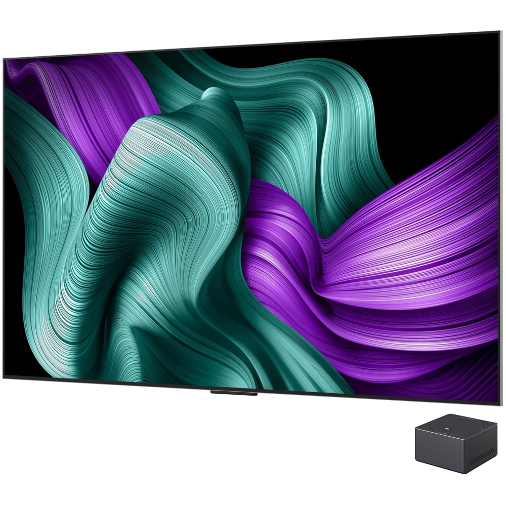 تلویزیون ال جی M5 در دسته تلویزیونهای بیسیم، لاکچری و لوکس قرار میگیرد. در واقع این تلویزیون با سایر تلویزیونهای ال جی متفاوت است و ما در ادامه بهطور مفصل به این تفاوتها خواهیم پرداخت و توضیحات مفصلی را به شما ارائه خواهیم داد. تلویزیون ال جی M5 بهترین تلویزیون گیمینگ بیسیم 2025 ال جی با صفحهنمایش اولد ایوو و کیفیت تصویر 4K@144Hz میباشد. این تلویزیون مدل جدیدتر و جایگزین بهنسبت بهتر تلویزیون ال جی M4 است که سال گذشته تولید و روانه بازار شده بود. تلویزیون پیش روی شما حتی از مدل سال گذشته خود نیز بهتر است و این پیشرفت چشمگیر را مدیون تکنولوژی Primary RGB Tandem است. لازم است این نکته را خدمت شما عرض کنیم که ال جی امسال به فکر افرادی که دنبال یک تلویزیون بیسیم و با هزینه کمتر هستند نیز بوده است؛ بدین ترتیب درصورتیکه به دنبال یک تلویزیون بیسیم با قیمت ارزانتر هستید، ما پیشنهاد میکنیم تلویزیون ال جی QNED9M را مورد بررسی قرار دهید؛ تلویزیون نام برده دارای صفحهنمایش جدید QNED Evo Edge MiniLED ال جی و کیفیت تصویر 4K میباشد و از دستگاه Zero Connect Box برخوردار است و ارزانترین تلویزیون بیسیم ال جی تا به امروز محسوب میشود. همانطور که پیشتر به آن اشاره کردیم، تلویزیون مورد بررسی ما در این صفحه، از کیفیت تصویر 4K HDR و صفحهنمایش اولد ایوو (OLED Evo) برخوردار است و با وجود تکنولوژی Primary RGB Tandem که عرض کردیم، تجربهای بینظیر از تماشای تلویزیون برای شما فراهم میکند؛ با ما همراه باشید تا شما را با بهترین تلویزیون بیسیم OLED ال جی در سال 2025 آشنا کنیم و پیشرفتها و پسرفتهای این تلویزیون نسبت به مدل سال گذشته آن را خدمت شما عرض کنیم.