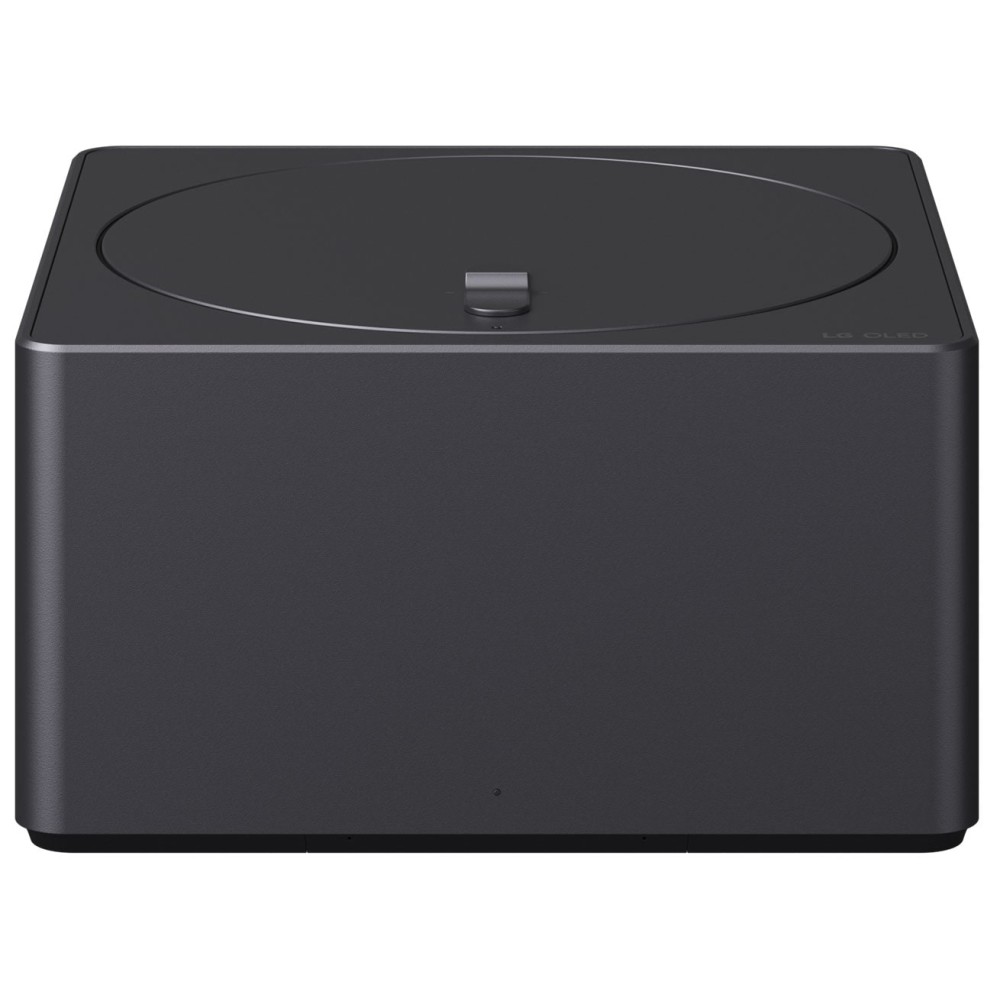 همانطور که پیشتر نیز به این موضوع اشاره کردیم، پورتهای ورودی خروجی این تلویزیون روی دستگاهی به نام زیرو کانکت باکس (Zero Connect Box) قرار گرفتهاند. در واقع ویژگی منحصر به فردی که این تلویزیون را با اکثر تلویزیونهای بازار متمایز میسازد، دستگاه Zero Connect Box آن است. این دستگاه مشابه دستگاه One Connect Box سامسونگ است اما با این تفاوت که بهصورت بیسیم طراحی شده و از طریق Wi-Fi به تلویزیون متصل میشود. دستگاه زیرو کانکت باکس مذکور، میتواند تمامی دادهها و سیگنالهای صوتی و تصویری را از طریق باند 60 گیگاهرتز و با بالاترین کیفیت ممکن به تلویزیون منتقل نماید. تلویزیون پیش روی شما حتی برای این موضوع تاییدیه ISO/IEC 29170-2 را نیز دریافت کرده که به معنای آن است دستگاه Zero Connect Box میتواند سیگنال و کیفیت تصویر 4K 144Hz را بدون افت کیفیت تصویر و بهصورت بیسیم به تلویزیون منتقل نماید و لازم نیست نگران این موضوع باشید. همانطور که اشاره کردیم، شما باید تمام دستگاههای مد نظر خود را به دستگاه Zero Connect Box متصل نمایید، چرا که هیچ پورتی روی خود تلویزیون تعبیه نشده است؛ این موضوع باعث میشود تا هیچ کابل اضافهای اطراف تلویزیون دیده نشود و در نتیجه دیگر نیازی به مرتب کردن کابلها در پشت تلویزیون ندارید. ال جی این محصول را به دستگاه زیرو کانکت باکس مدل WM25GA مجهز نموده است. طبق بررسیهای ما این دستگاه ابعادی برابر با 23x23x12.17 سانتیمتر دارد و وزن آن نیز حدود 2.4 کیلوگرم است که نسبت به مدل سال گذشته آن از نظر ابعاد و وزن یکسان میباشد. این دستگاه به شکل یک جعبه مکعب مستطیل مشکی رنگ میباشد که طراحی مینیمال، ساده و زیبایی دارد. در قسمت بالای زیرو کانکت باکس یک صفحه گردان دایرهای شکل وجود دارد که به کمک آن میتوانید زاویه سیگنال ارسالی به تلویزیون (به سمت چپ و راست) را تنظیم کنید و آن را بهصورت ساعتگرد و یا پادساعتگرد بچرخانید. علاوهبر آن یک کلید نیز در این قسمت تعبیه شده است که با جلو و عقب بردن آن میتوانید زاویه سیگنال ارسالی به تلویزیون را به سمت بالا و پایین تنظیم نمایید. در این قسمت یک نشانگر LED نیز قرار دارد که قدرت و دقت سیگنال ارسالی به تلویزیون را نشان میدهد تا با توجه به آن دستگاه مذکور را در جای مناسبی قرار دهید. درصورتیکه این نشانگر LED به رنگ آبی باشد، یعنی سیگنال قوی و عالی است؛ رنگ سبز به معنای سیگنال خوب، زرد نشاندهنده سیگنال ضعیف و رنگ قرمز به معنای قطع شدن سیگنال میباشد. همینطور نشانگر LED دیگری نیز در قسمت جلوی زیرو کانکت باکس قرار دارد که خاموش و روشن بودن دستگاه را نشان میدهد. طبق آنچه پیشتر ذکر کردیم، دستگاه Zero Connect Box این تلویزیون دارای میکروفون داخلی و دکمه مخصوص برای خاموش و روشن کردن این میکروفون نیز میباشد. ال جی در داخل جعبه این تلویزیون یک بست کمربندی قرار داده است که برای مدیریت کابلهای متصل به Zero Connect Box، کاربرد دارد و شما میتوانید کابلهای متصل به آن را منظم و مرتب کنید.