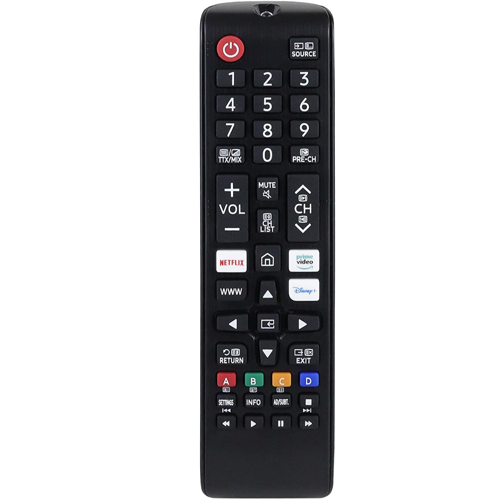 دکمه Source با این دکمه، یک نمای کلی از همه منابع متصل را باز میکنید. میتوانید به راحتی از تلویزیون زنده به منبع HMDI مانند کنسول بازی یا پخشکننده بلوری خود تغییر دهید. دکمه Home یا صفحه اصلی شما را به Smart Hub میبرد. این منوی اصلی تلویزیونهای هوشمند سامسونگ است که نمای کلی از عملکردها، برنامهها و تلویزیون زنده تلویزیون هوشمند را در اختیار شما قرار میدهد. Shortcuts to video services یا همان میانبرهای خدمات ویدیویی نظیر Netflix، Amazon Prime Video هم جزو دکمههای ریموت BN59 هستند که دسترسی سریع به سرویسهای پخش فیلم و سریال را امکانپذیر میکنند. با فشار دادن دکمه Return به صفحه، منو یا کانالی که قبلاً نگاه کردهاید باز میگردید. با دکمه Exit، منو را میبندید و به صفحه اصلی باز میگردید، جایی که بلافاصله تلویزیون زنده را تماشا میکنید. Colored buttons یا همان دکمههای رنگی در قسمت پایین ریموت کنترل عملکردهای مختلفی دارند که این عملکردها برای هر منو متفاوت است. اگر این دکمهها برای استفاده در دسترس باشند، روی صفحه نشان داده میشود. دکمههای توابع ویدیویی (⏸▶⏩⏪) که در بخش پایینی ریموت کنترل قرار دارند با استفاده از آنها میتوانید عملکردهای ویدیویی را اجرا کنید. اینها به شما امکان مکث، توقف، بازی، و عقب یا سریع به جلو را میدهند. اگر این عملکردها در دسترس باشند، روی صفحه نمایش داده میشود. همچنین با فشار دادن دکمه Settings به منوی تنظیمات میروید. برای مثال میتوانید تنظیمات صدا و تصویر را در این منو تنظیم کنید. وقتی دکمه Info را فشار میدهید، اطلاعات مربوط به کانال و برنامهای که در حال تماشای آن هستید روی صفحه ظاهر میشود. به این ترتیب، میتوانید به سرعت ببینید که کدام برنامه را تماشا میکنید و چه زمانی تمام میشود. دکمه NETFLIX دسترسی سریع به سرویس آنلاین را امکانپذیر میکند البته ممکن است برای تمام مناطق جغرافیایی در دسترس نباشد. دکمه Ch list فهرستی از کانالهای تلویزیونی را بالا میآورید، بنابراین میتوانید کانالها را در کمترین زمان تغییر دهید. ضمن اینکه وقتی دکمه Pre-ch را فشار میدهید، بلافاصله به کانالی که اخیرا تماشا کردهاید باز میگردید. دکمه Volume که دارای دو علامت “+” و “-” میباشد به شما این امکان را میدهد بتوانید صدای تلویزیون را افزایش یا کاهش دهید. دکمه Mute هم صدای تلویزیون را کامل قطع میکند. دکمه Channel هم دارای دو فلش به سمت بالا و پایین میباشد که با استفاده از آنها میتوانید کانال تلویزیون را تغییر دهید. با استفاده از دکمه AD/SUBT میانبرهای دسترسی نمایش داده میشوند. در قسمت بالای ریموت کنترل تعدادی دکمههای عددی قابل ملاحظه میباشد که از طریق آنها میتوانید به راحتی شبکههای مد نظر خود را انتخاب کرده و یا در جایی که نیاز است عددی وارد کنید از آنها استفاده کنید. همچنین میتوانید با استفاده از دکمه +Disney به سرویس پخش آنلاین دسترسی سریعی داشته باشید. با فشار دادن این دکمه به کتابخانه بزرگ والت دیزنی از جمله فیلمهای کوتاه، سریالها، مستندها و صدها محتوای بینظیر دیگر دسترسی خواهید داشت. این قابلیت محتواهای بیشمار و تجربه بینظیری را برای شما ارائه خواهد داد (ممکن است برای تمام مناطق جغرافیایی در دسترس نباشد).